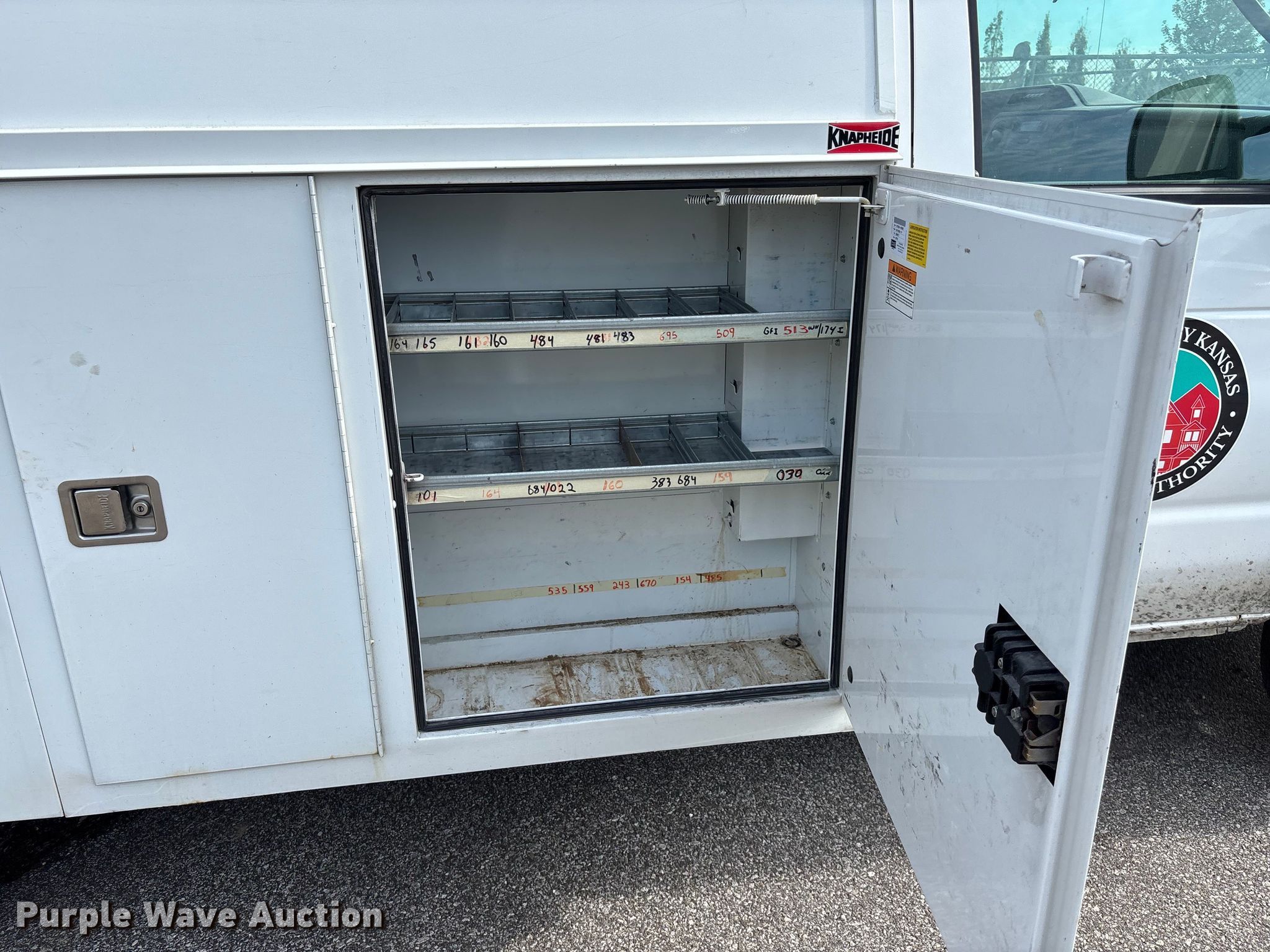 2013 Ford E350 Super Duty utility van. Miles: 148,283 on odometer, VIN: 1FDWE3FL3DDA88406. Engine Displacement: 5.4L V8 SOHC, Cylinders: 8, Fuel type: Gas. Transmission Automatic. Interior AC, Heat, Cruise control. Features Bed Utility bed, Knapheide. Tires Size: 245/75R16. Notes Dash warning indicator: Check engine, Airbag, Windshield chipped or cracked, Driver side door hinge broken. Kansas title. Title distribution may be delayed up to 14 days from verification of funds. Kansas City, KS 66102