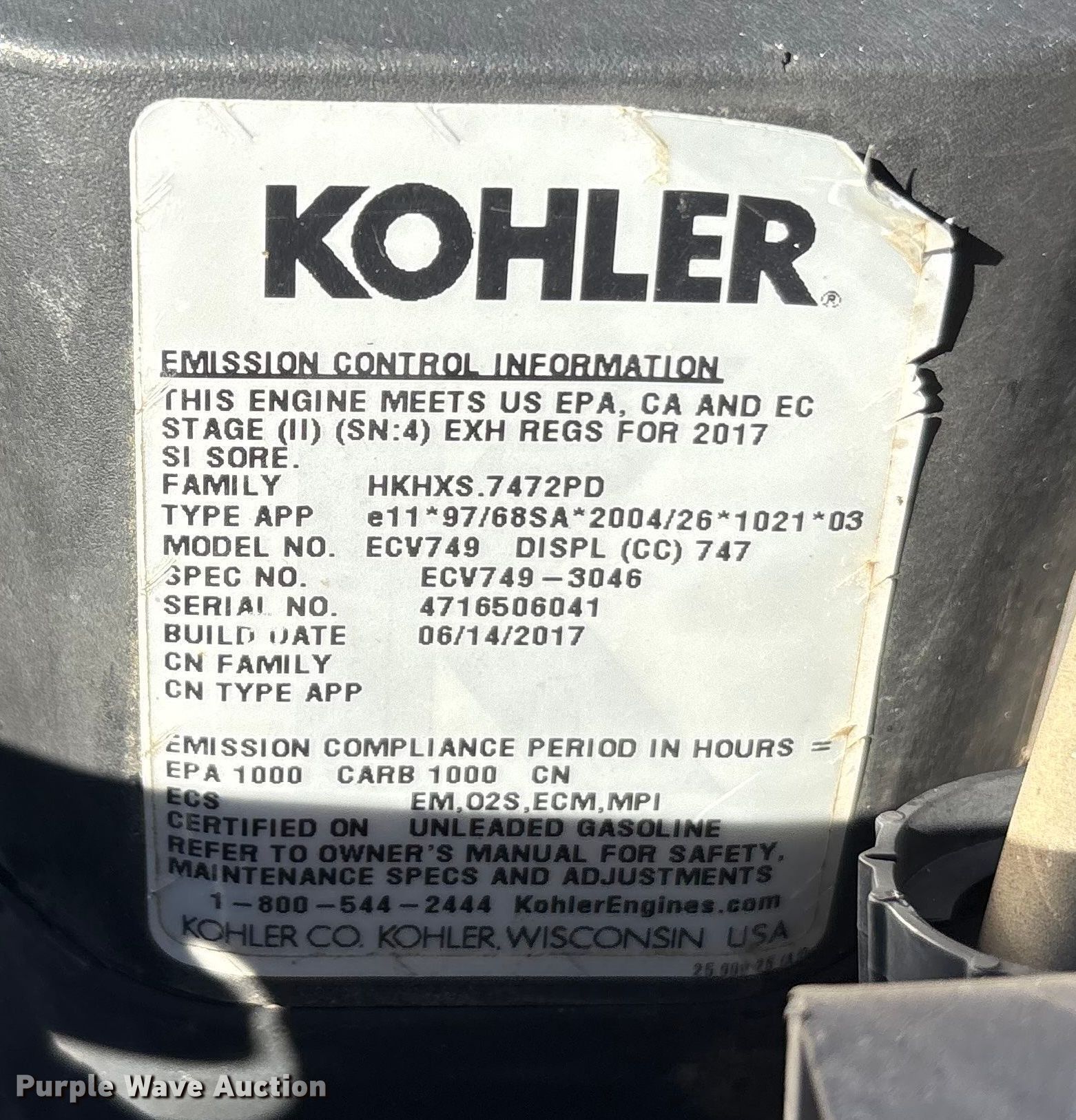 - Kohler / Kawasaki ECV749. /. FX291V