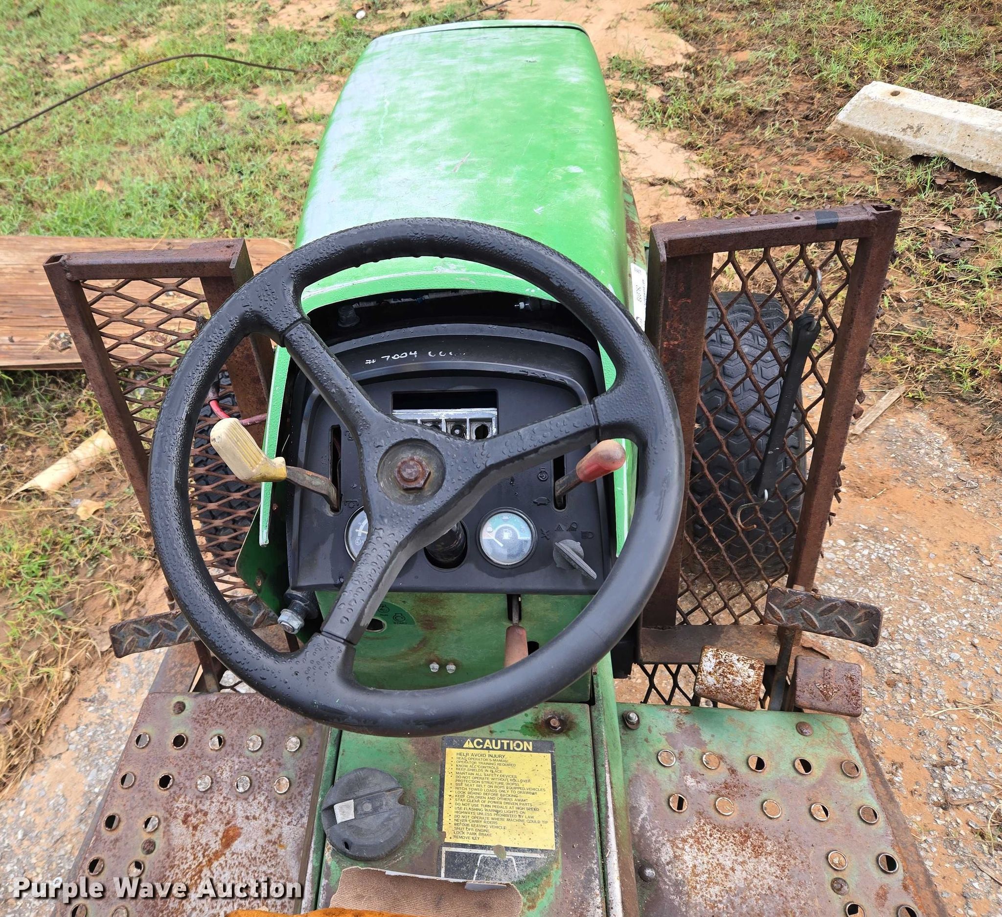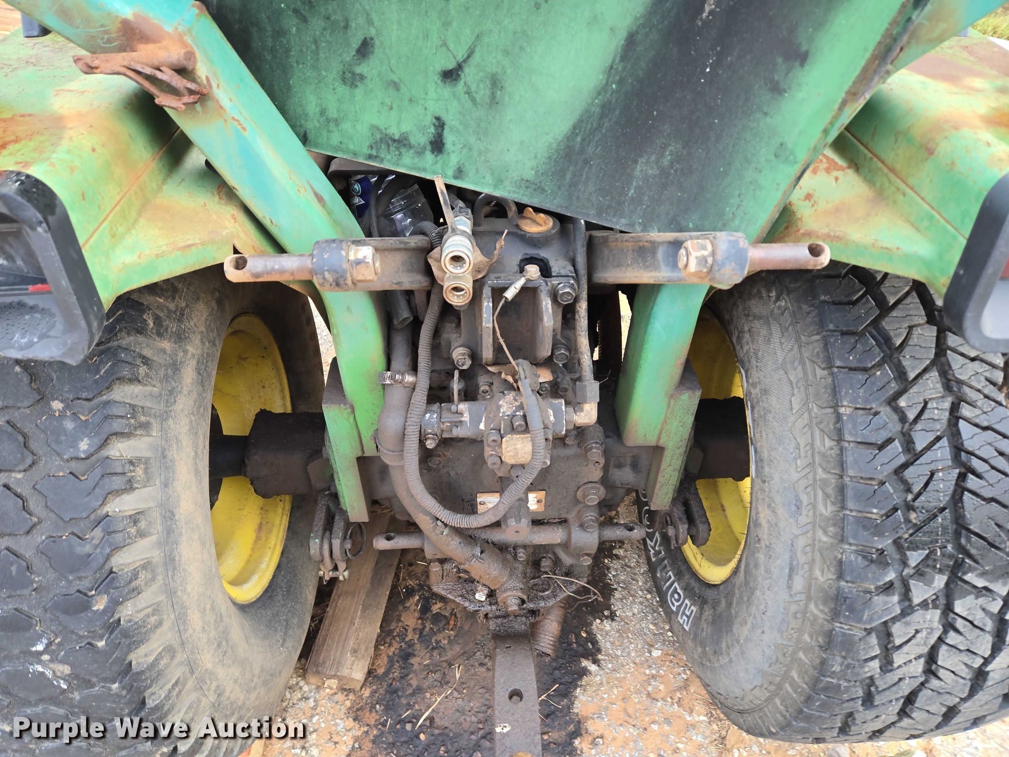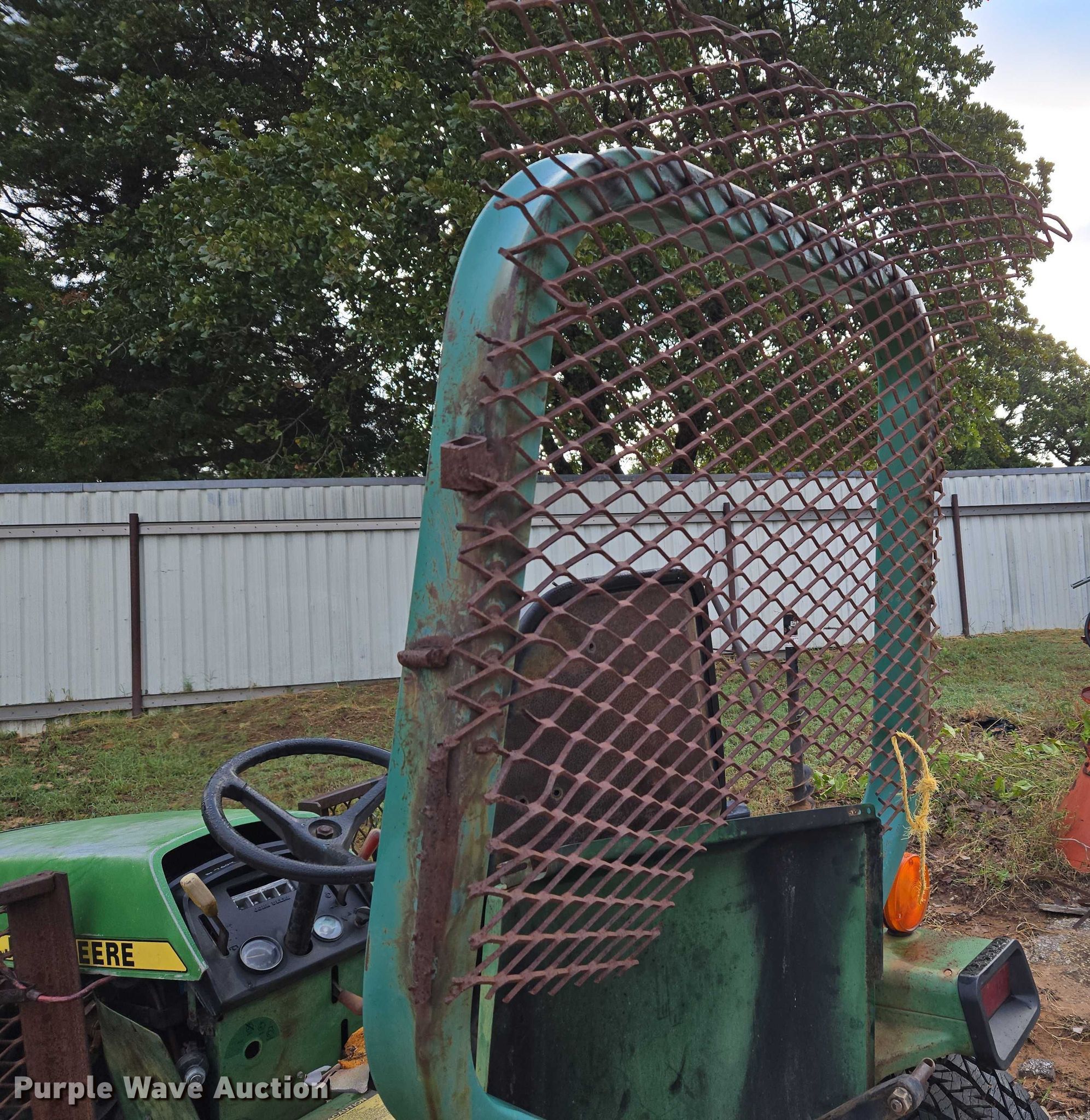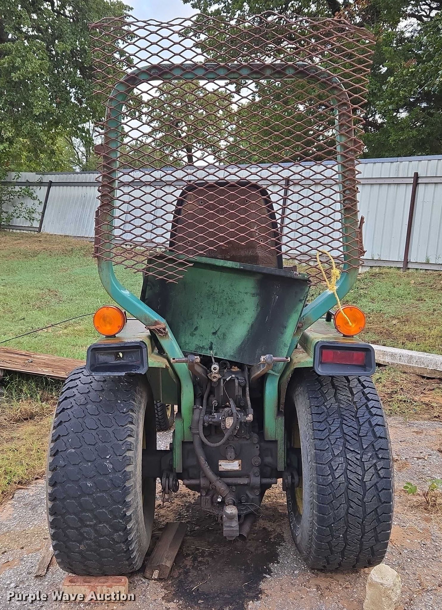 John Deere 856 tractor. Hours: 366 on meter, Serial: M00856A420066. Engine John Deere 3TN75RJ, Serial: CH3033D002967, Cylinders: 3, Fuel type: Diesel. Transmission Hydrostatic. Features PTO: 540. Tires Front: 23/8.50-12, Rear: 33/12.50-15NHS. Notes Dead battery, Key not included, Parts missing, Flat tire, Non-operational unit. Choctaw Golf Course - Maintenance Barn. Choctaw, OK 73020