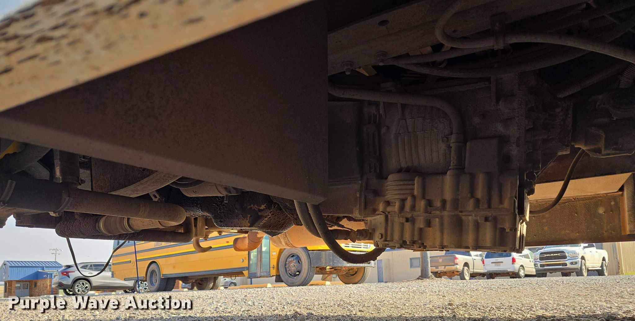 2007 Thomas Built Saf-T-Liner HDX school bus. Miles: 129,064 on odometer, VIN: 1T7YU4C2971279810. Engine Caterpillar C7, Serial: WAX16721, Displacement: 7.2L, Cylinders: 6, Fuel type: Diesel, HP: 300, kW: 224. Transmission Automatic. Chassis Axles: Single, Suspension: Air, Brakes: Air, GVWR: 35,350 lbs. Interior AC, Heat, Heated mirrors, Passengers: 48. Tires Size: 11R22.5. Oklahoma title. Title distribution may be delayed up to 30 days from verification of funds. Lomega Public Schools. Omega, OK 73764