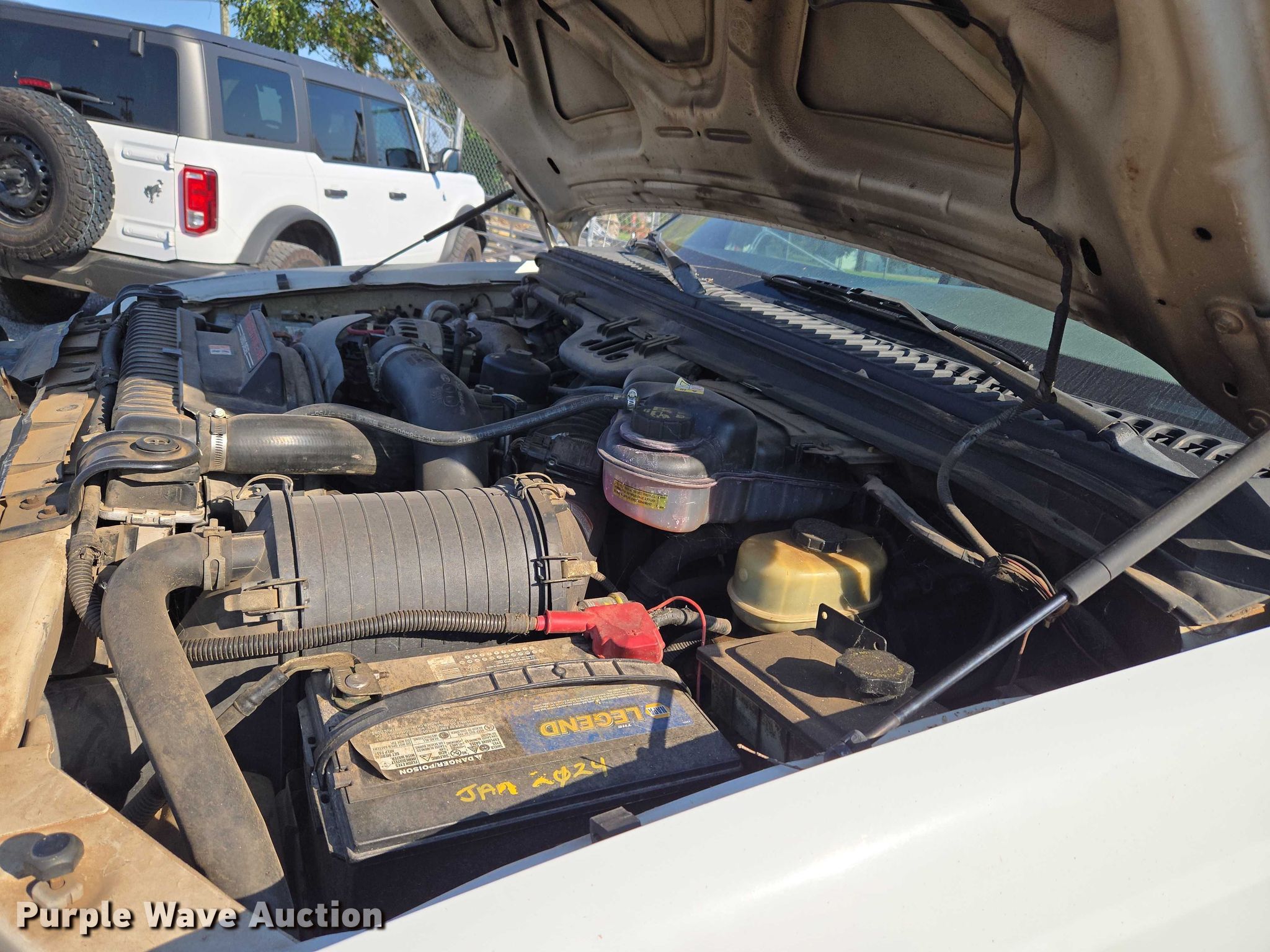 This 2004 Ford F250 Super Duty utility bed pickup truck will sell to the highest bidder regardless of price.