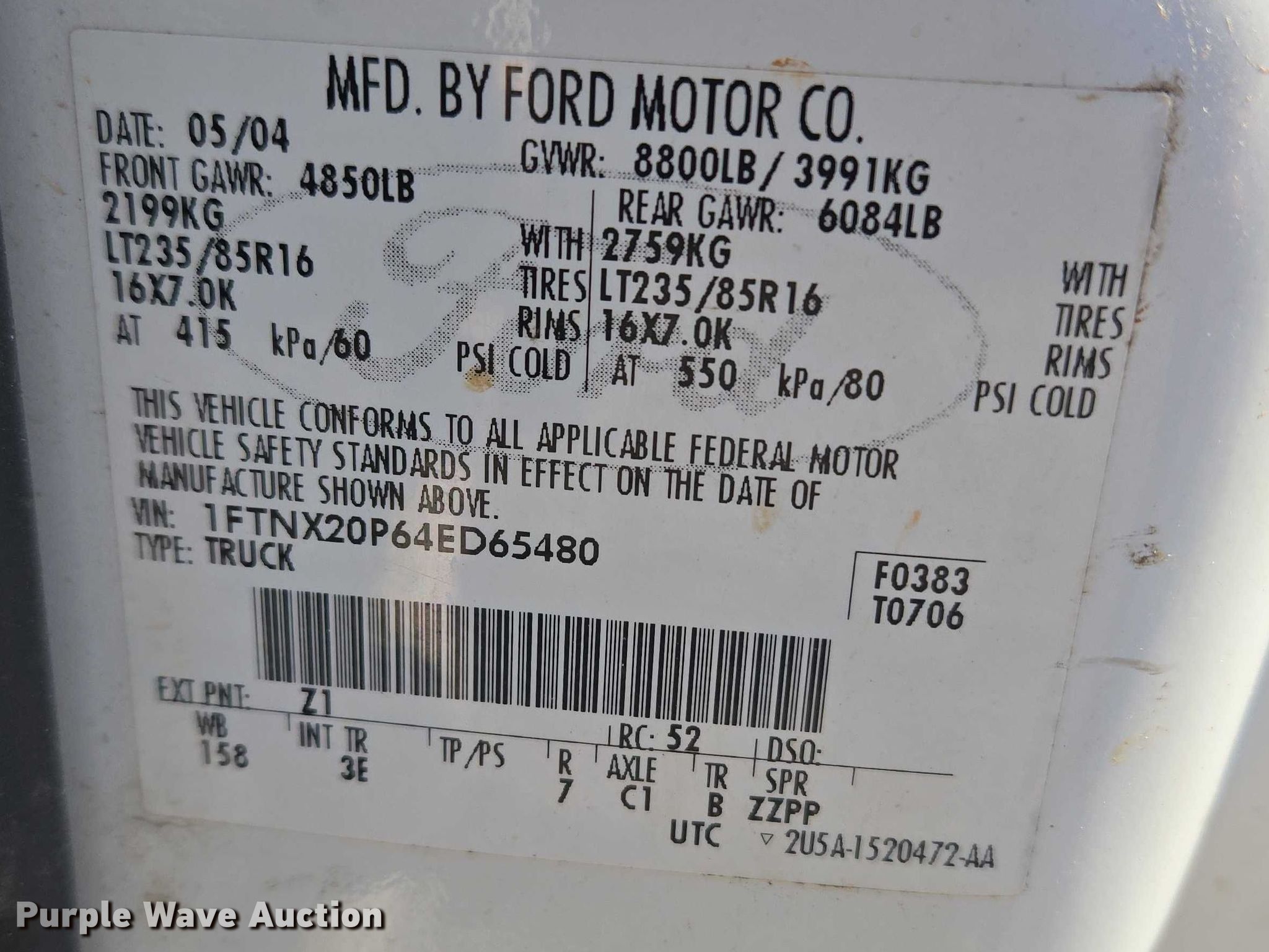 - VIN: 1FTNX20P64ED65480