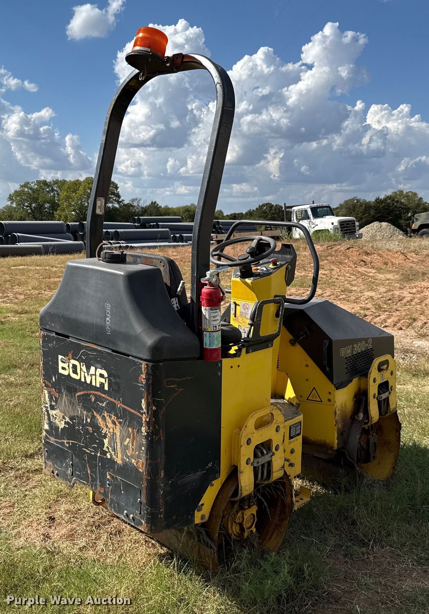 Purple Wave is selling a used Double Drum Roller Compactor in Oklahoma. This item is a 2005 Bomag BW900-2 double drum roller with the following: Hours: 1,438 on meter, Serial: 851800021031