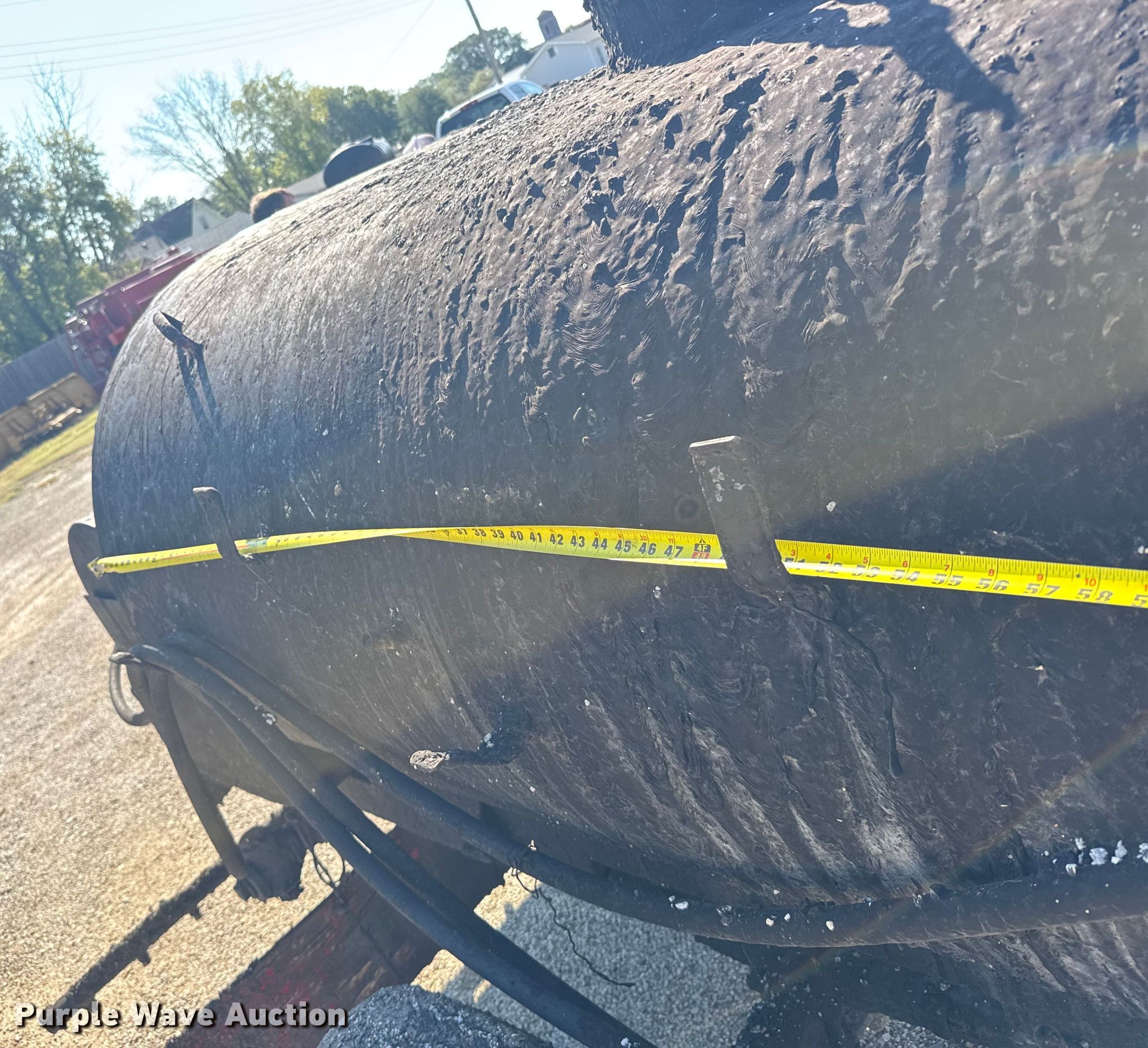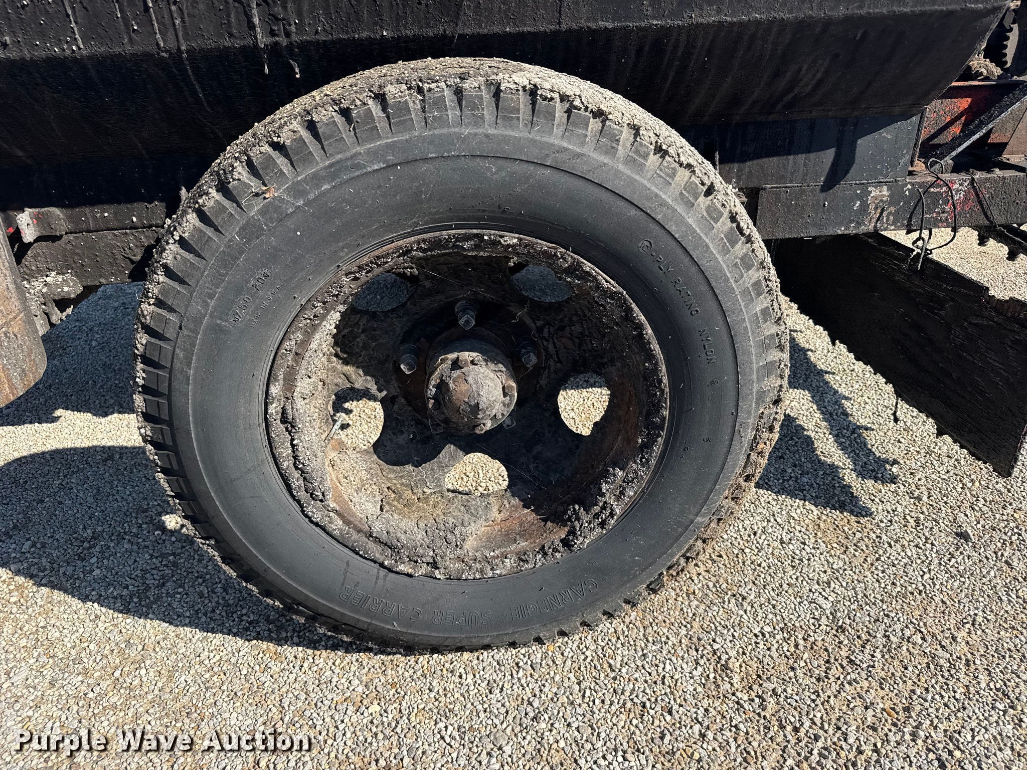 Oil distributor trailer. Chassis. Axles: Single, Suspension: Spring, Hitch: Pin. Features Bed/tank Size: 12' x 84", Capacity: 500 gallons, Burner: LPG, Spray wand, Spray boom Width: 84', Nozzles: 18.. Tires Size: 7.50-20. Notes Propane tanks included, Pump engine missing , Unknown operating condition. This is worksite support equipment and will not come with a title. Transfer of ownership documentation will be a bill of sale. Tipton County Rural Fire Department. Tipton, KS 67485