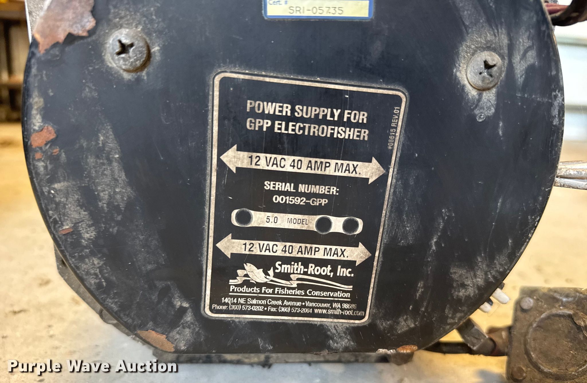 Purple Wave is selling a used Generator Set in Kansas. This item is a Smith Root 5.0 Power supply for GPP Electrofisher with the following: Hours: Unknown, Serial: 001592-GPP