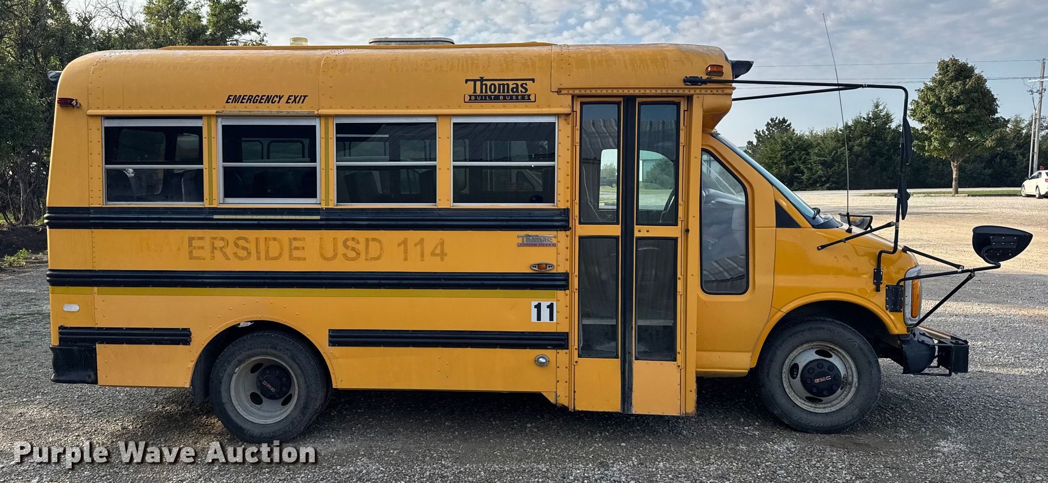 Purple Wave is selling a used Bus in Kansas. This item is a 2001 Thomas Built 040MS school bus with the following: Miles: 158,749 on odometer, VIN: 1GDHG31R0Y1137843