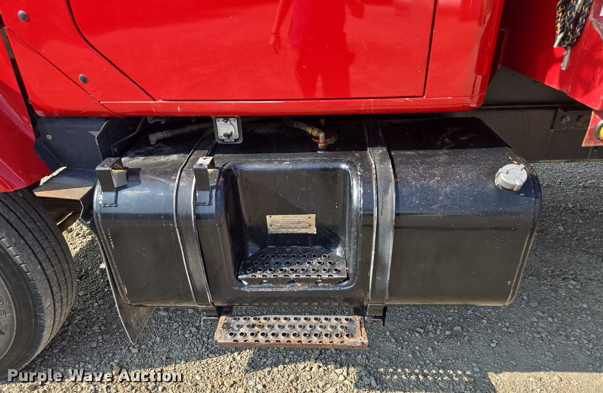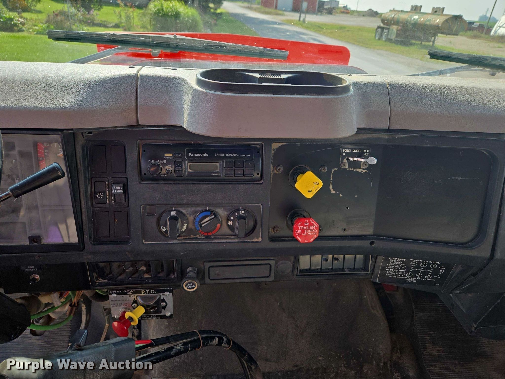 1996 International 2574 dump truck. Miles: 129,346 on odometer, Hours: 6,793 on meter, VIN: 1HTGGADR8TH416430. Engine International DT530, Displacement: 8.7L, Cylinders: 6, Fuel type: Diesel. Transmission Spicer, Manual, Speed: 10. Chassis Axles: Tandem, Differential lock: Inter-axle, Suspension: Spring over walking beam, Brakes: Air, PTO. Interior Heat, Cruise control. Features Bed Dump bed, Galion 502F, Serial: 965774, Length: 15', Width: 96", Side height: 47", Side board height: 12", Bed type: Steel, Roll tarp, Ram: Single, End gate: Air operated. Tires Size: 11R22.5. Kansas title. Title distribution may be delayed up to 14 days from verification of funds. Walnut Township KS. Fairview, KS 66425