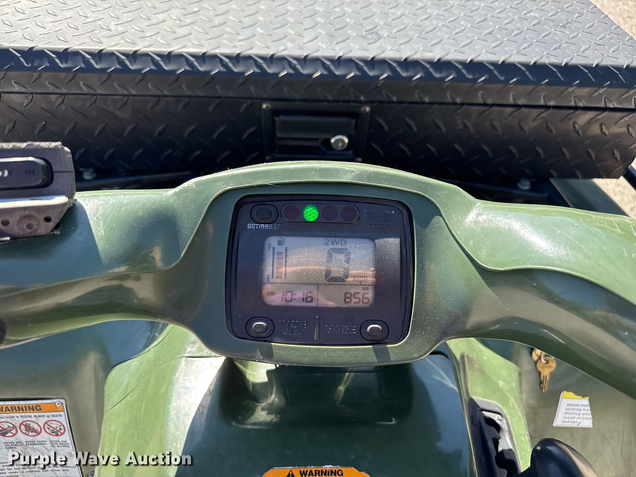 Purple Wave is selling a used ATV in Missouri. This item is a 2005 Kawasaki Prairie ATV with the following: Miles: 6,326 on odometer, Hours: 856 on meter, VIN: JKAVF6A125B515800