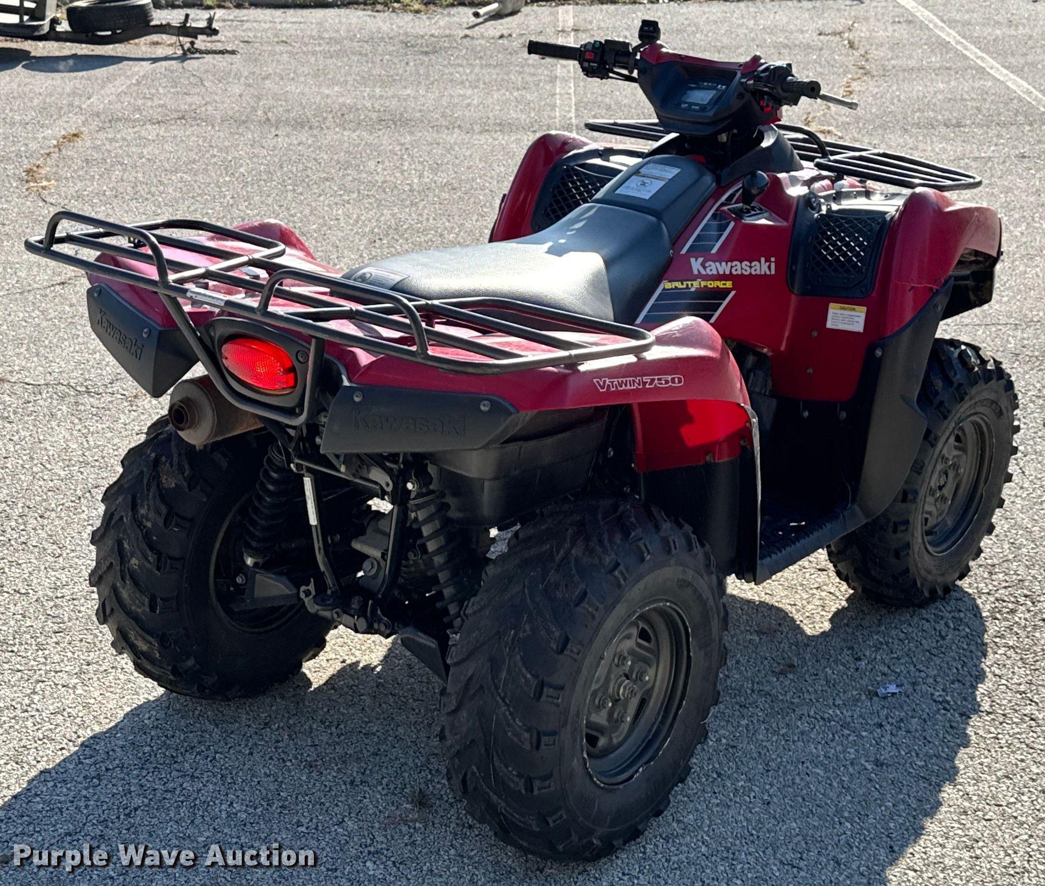 Purple Wave is selling a used ATV in Missouri. This item is a 2005 Kawasaki Brute Force 750 ATV with the following: Miles: 3,402 on odometer, Hours: 599 on meter, VIN: JKAVFDA145B500378