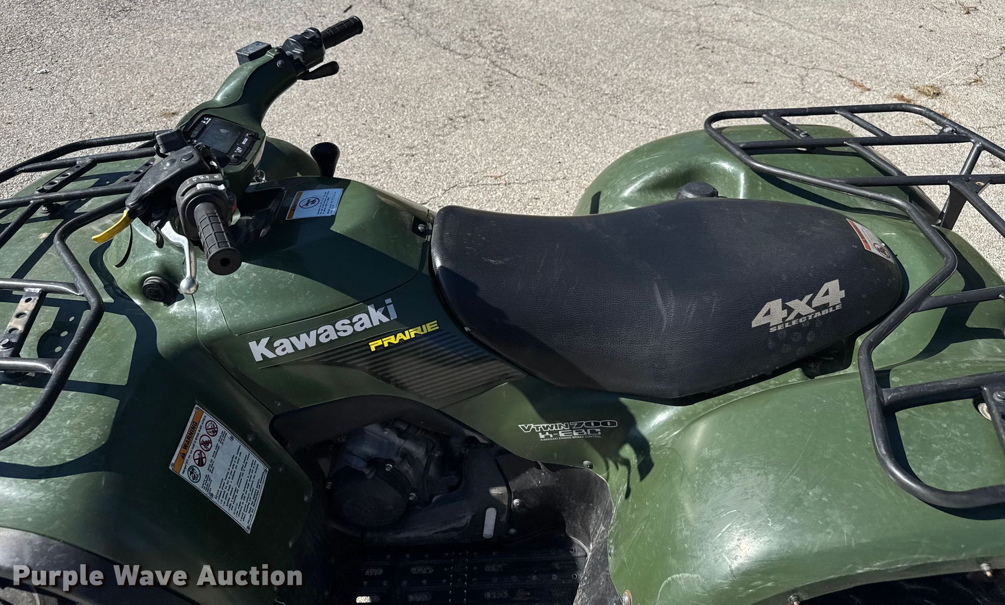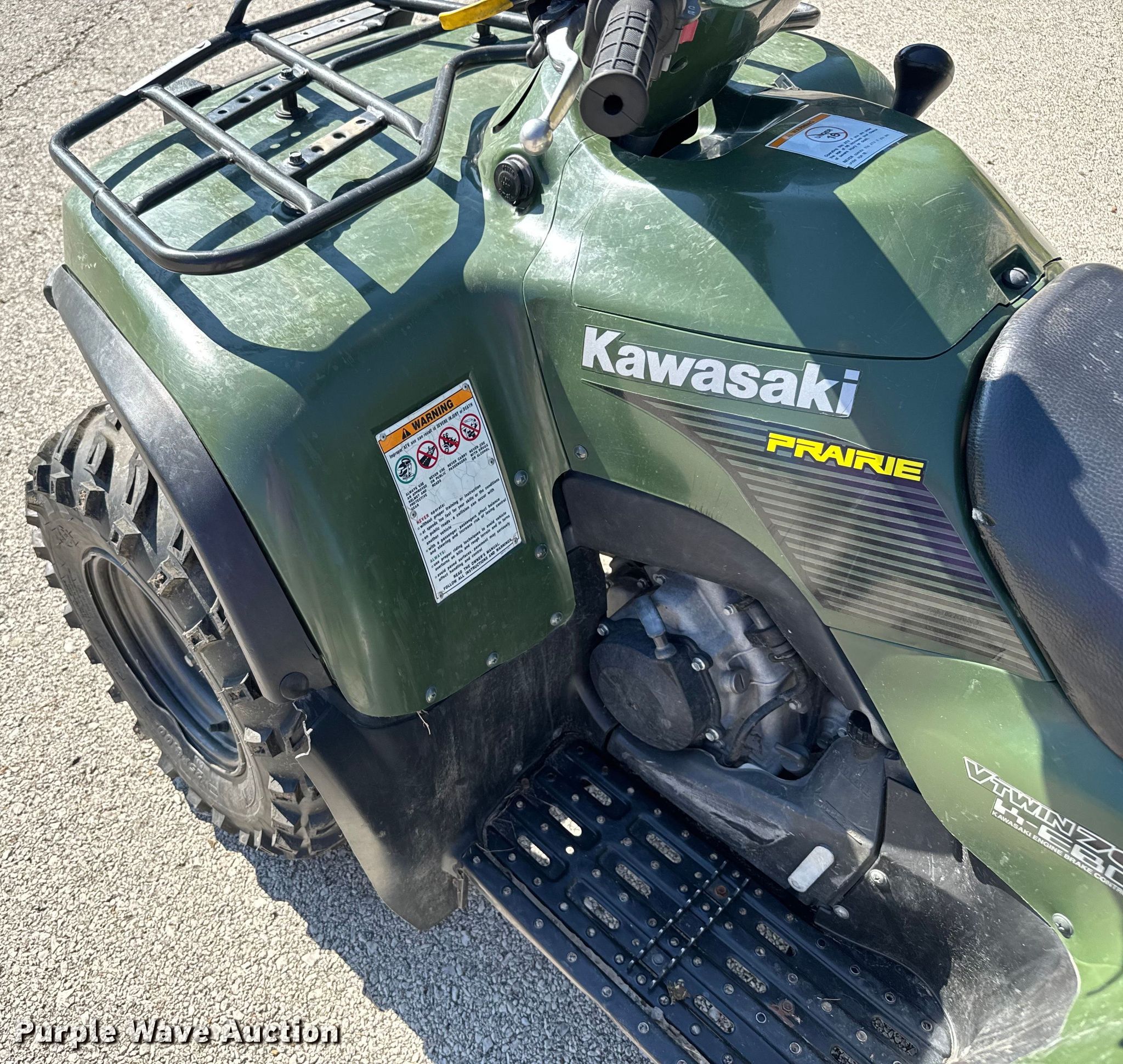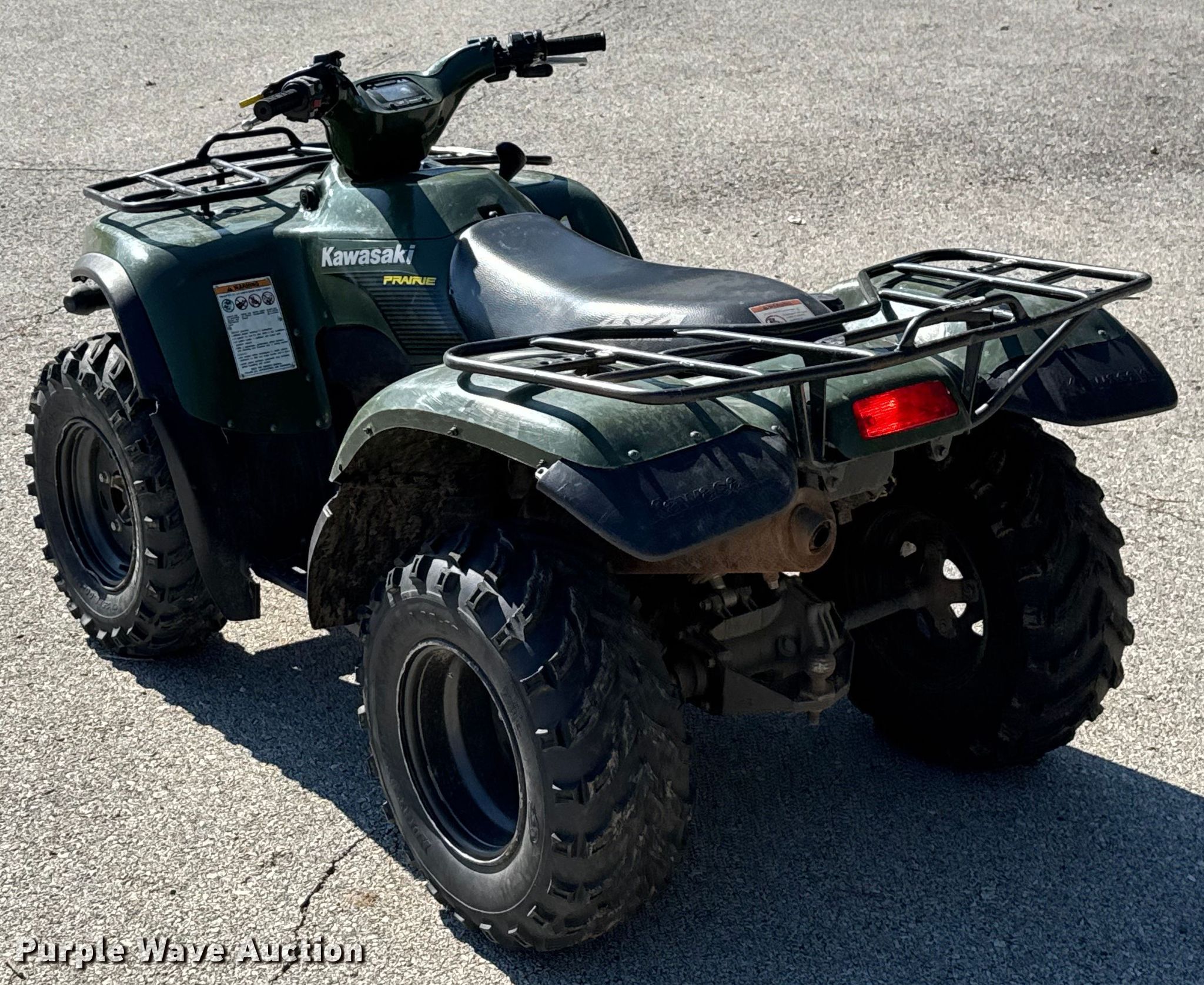 Purple Wave is selling a used ATV in Missouri. This item is a 2005 Kawasaki Prairie ATV with the following: Miles: 4,887 on odometer, Hours: 843 on meter, VIN: JKAVF6A1X5B515799