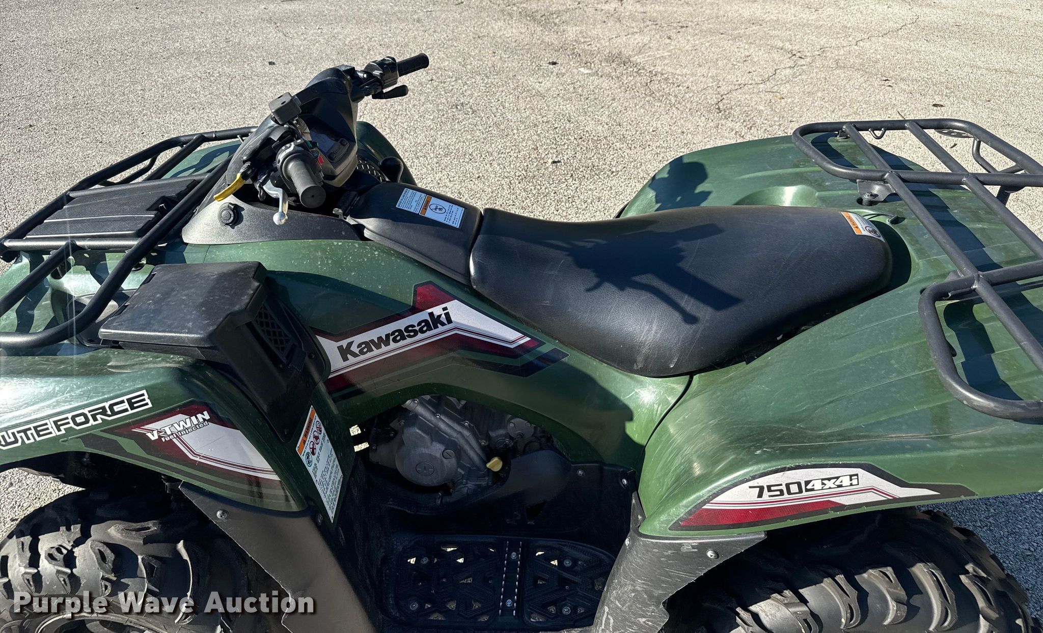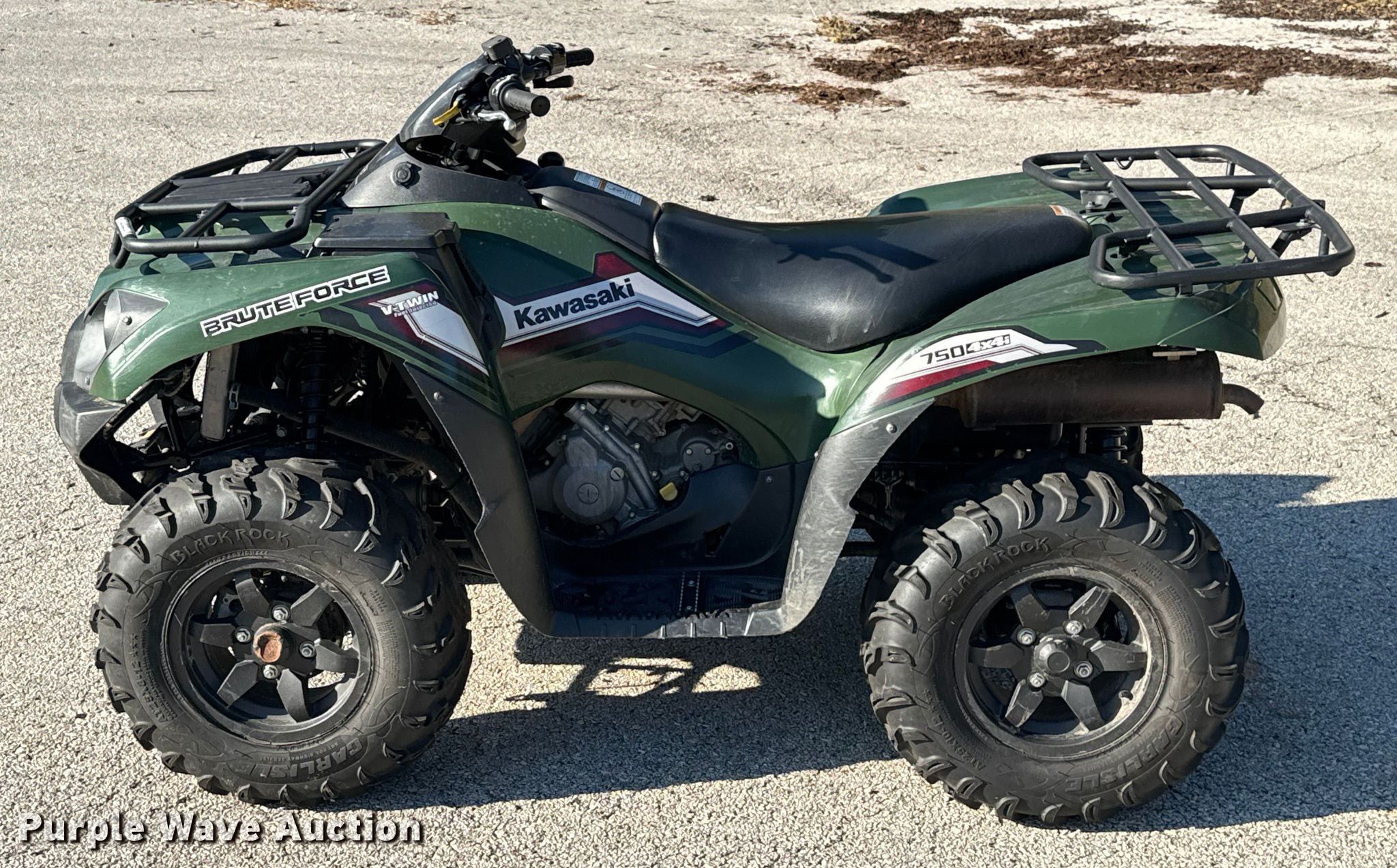 Purple Wave is selling a used ATV in Missouri. This item is a 2015 Kawasaki Brute Force 750 ATV with the following: Miles: 1,959 on odometer, Hours: 271 on meter, VIN: JKAVFDL13FB503934