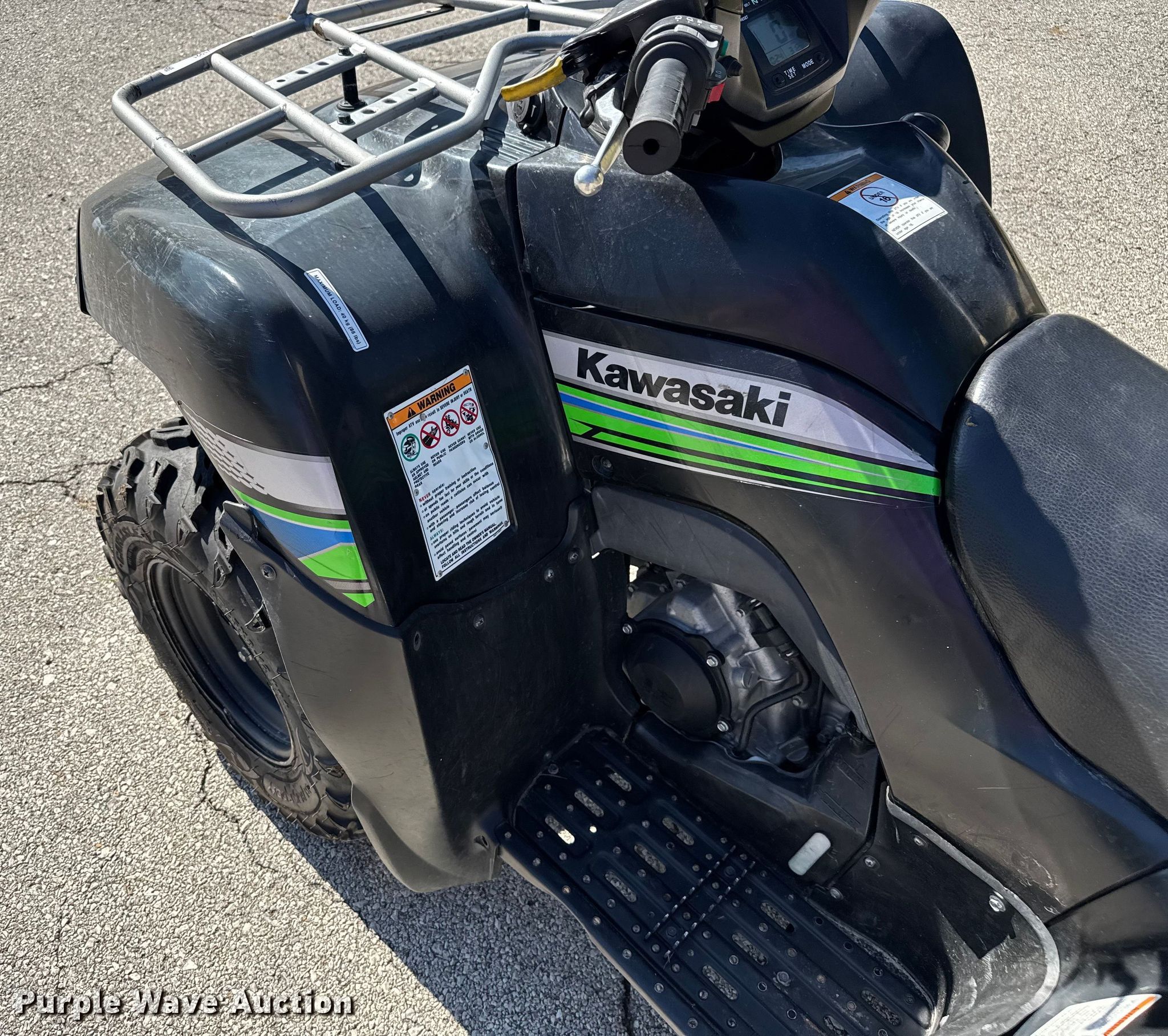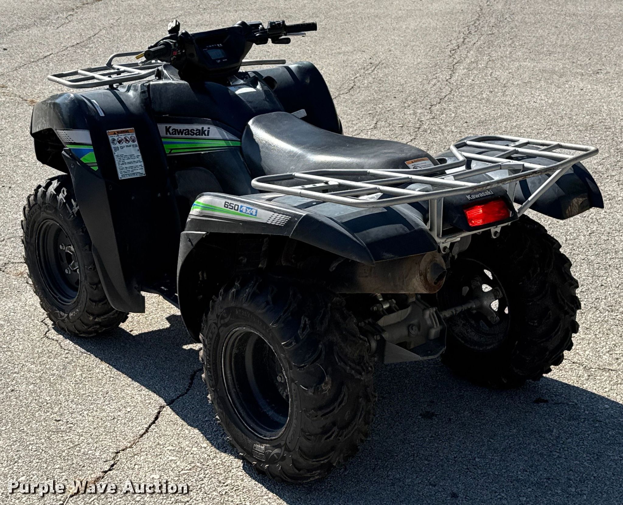 Purple Wave is selling a used ATV in Missouri. This item is a 2012 Kawasaki 650 ATV with the following: Miles: 3,129 on odometer, Hours: 450 on meter, VIN: JKAVFED1XCB531262