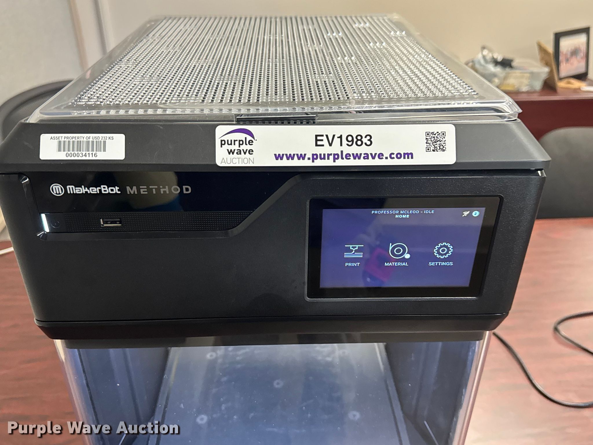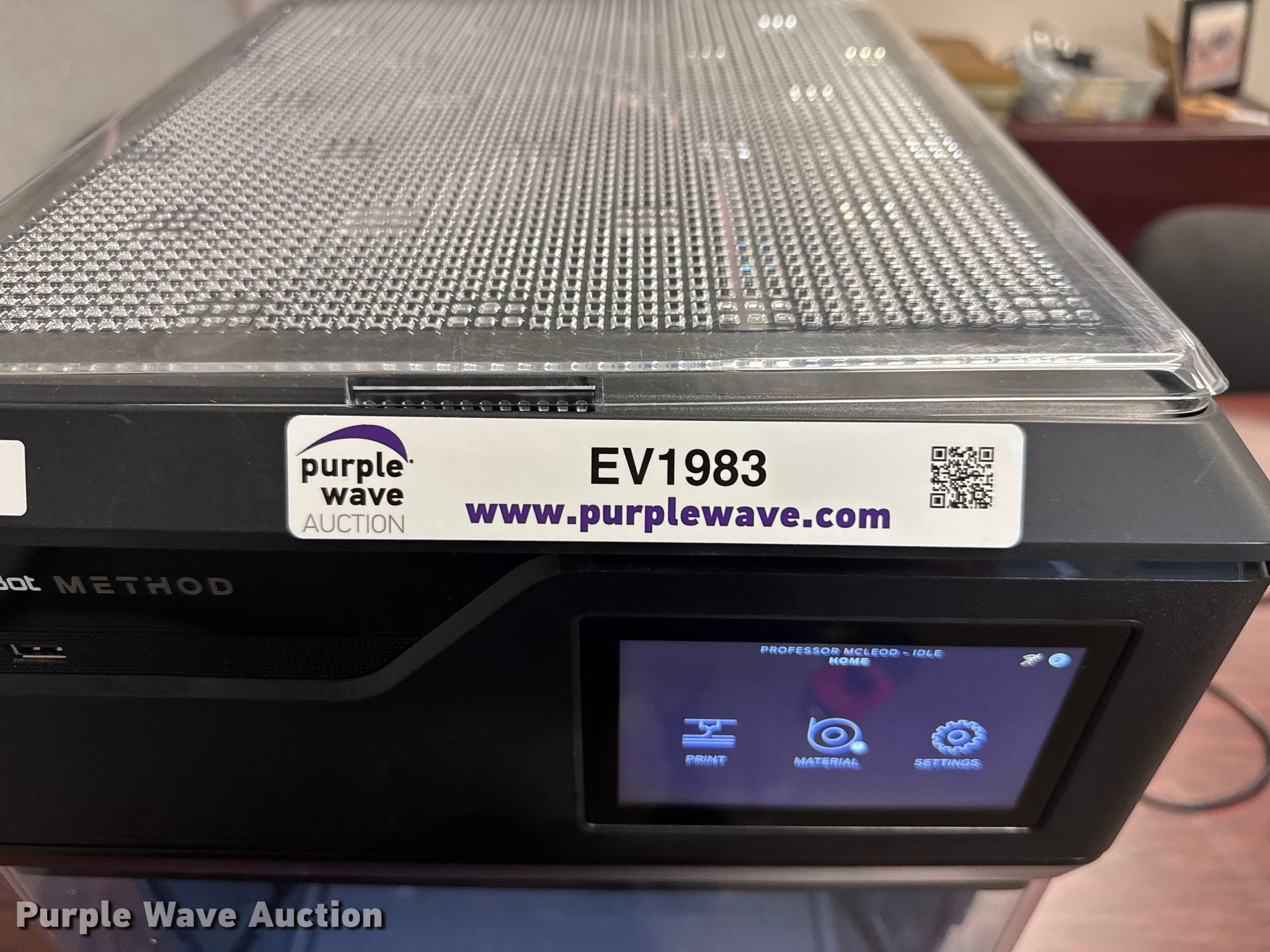 Purple Wave is selling a used Copy or Printing Machine in Kansas. This item is a MakerBot Method 3D printer with the following: Serial: MM00100002699, Volts: 120, Platform: 9" x 11"