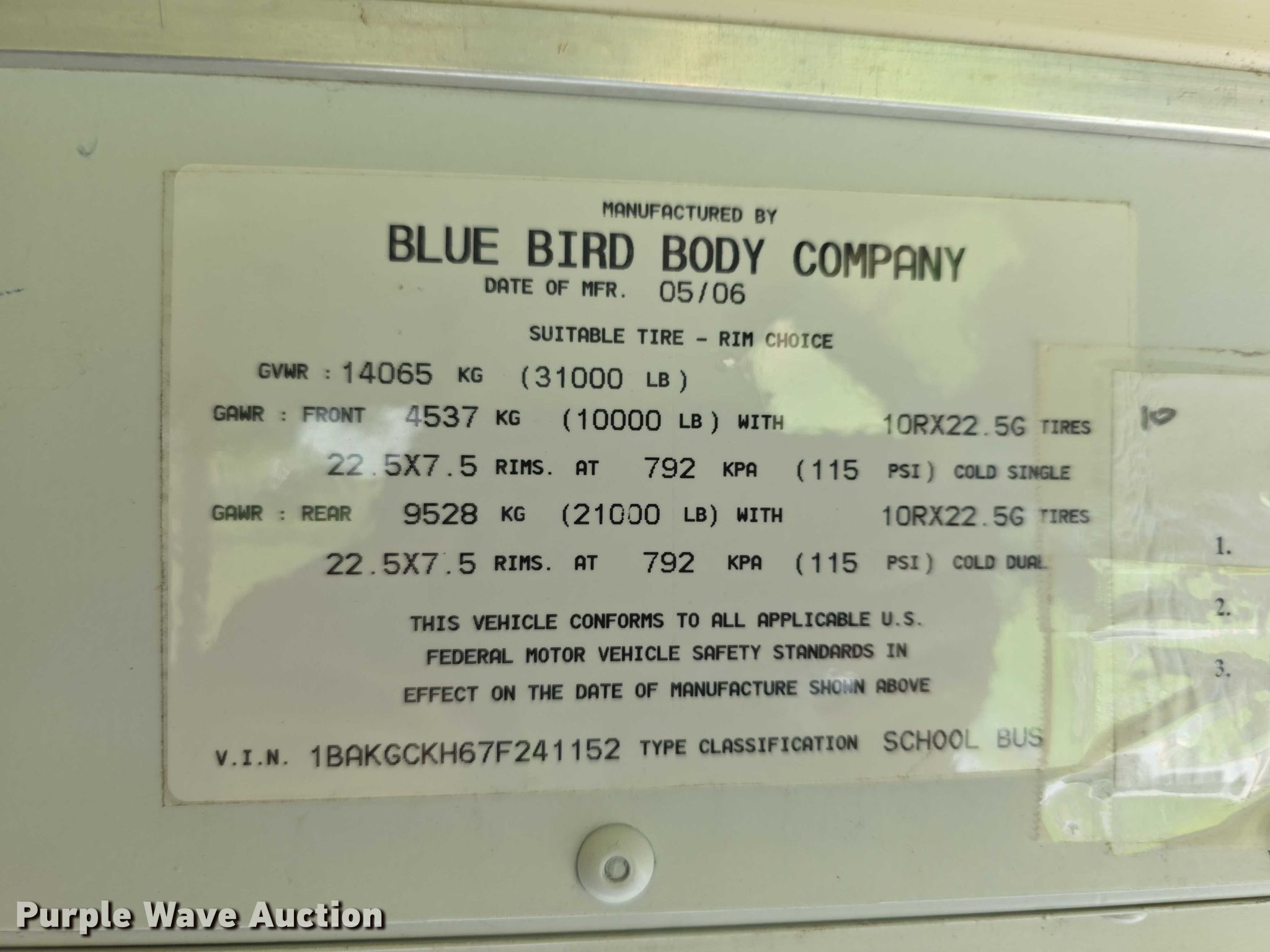 - VIN: 1BAKGCKH67F241152