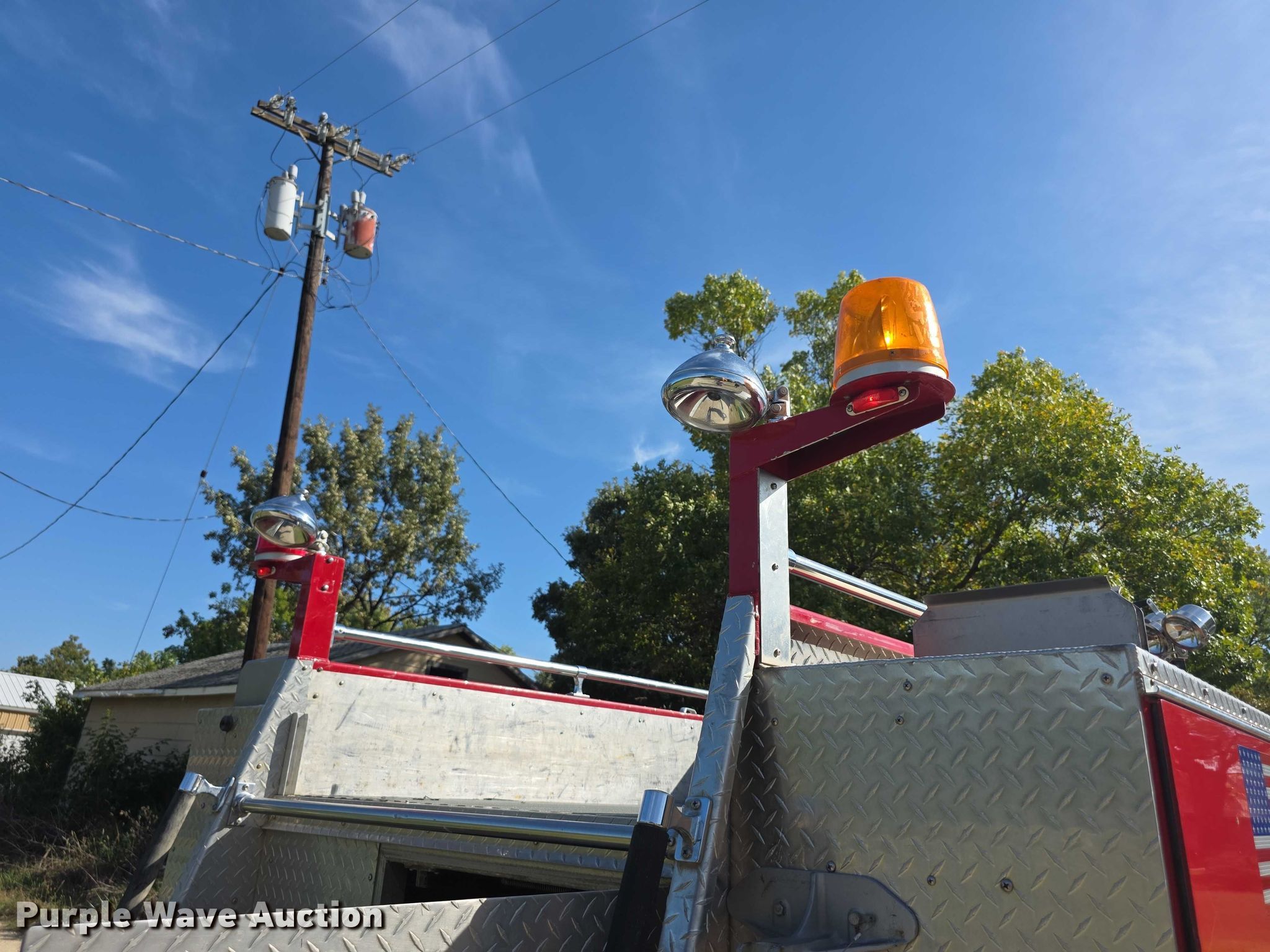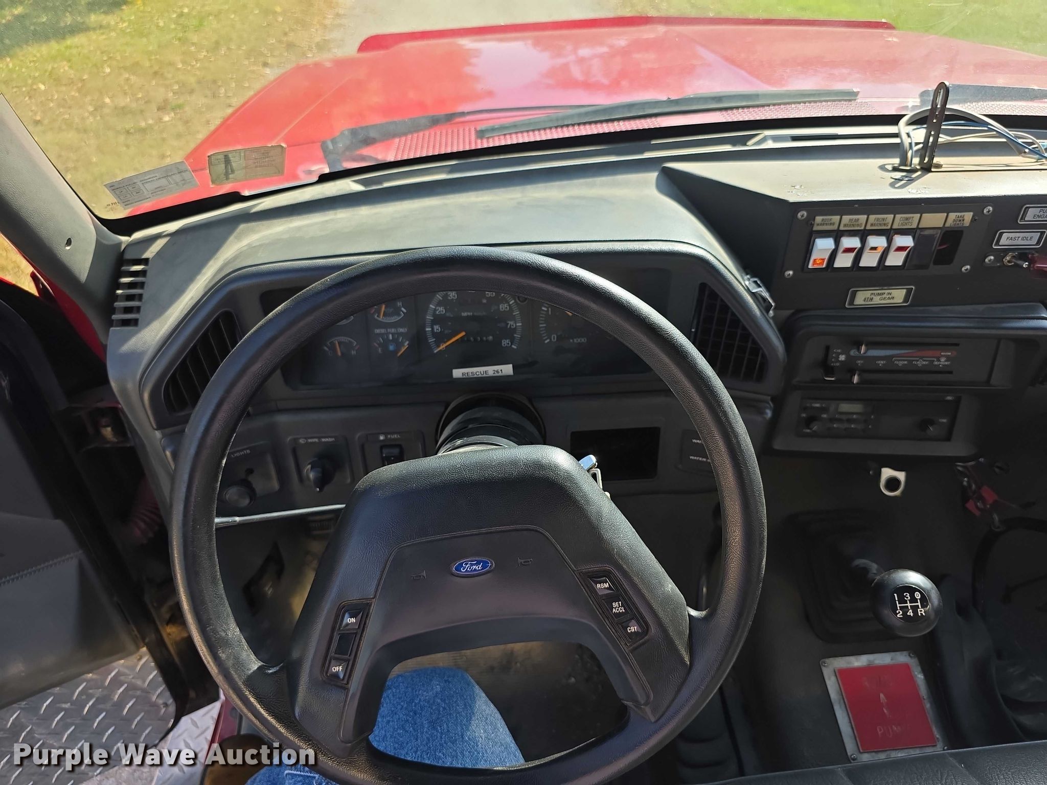 1991 Ford F350 Custom rescue vehicle. Miles: 31,536 on odometer, VIN: 2FDKF38M2MCA64227. Engine Displacement: 7.3L, Cylinders: 8, Fuel type: Diesel. Transmission Manual, Speed: 5. Chassis Four wheel drive, Axles: Single, Suspension: Spring, Brakes: Hydraulic, GVWR: 11,000 lbs, Wheelbase: 139". Interior AC, Heat, Cruise control. Features Fire truck body Tank Capacity: 200 gallons, Pump 750 gpm, Hours: 2,129 on meter, PA/ siren controls. Tires Size: 235/85R16, Brand: Bridgestone. Notes Non-operational water pump, intake rusted, Jump start required during on-site data collection. Kansas title. Title distribution may be delayed up to 14 days from verification of funds. City of Alta Vista, KS. Alta Vista, KS 66834