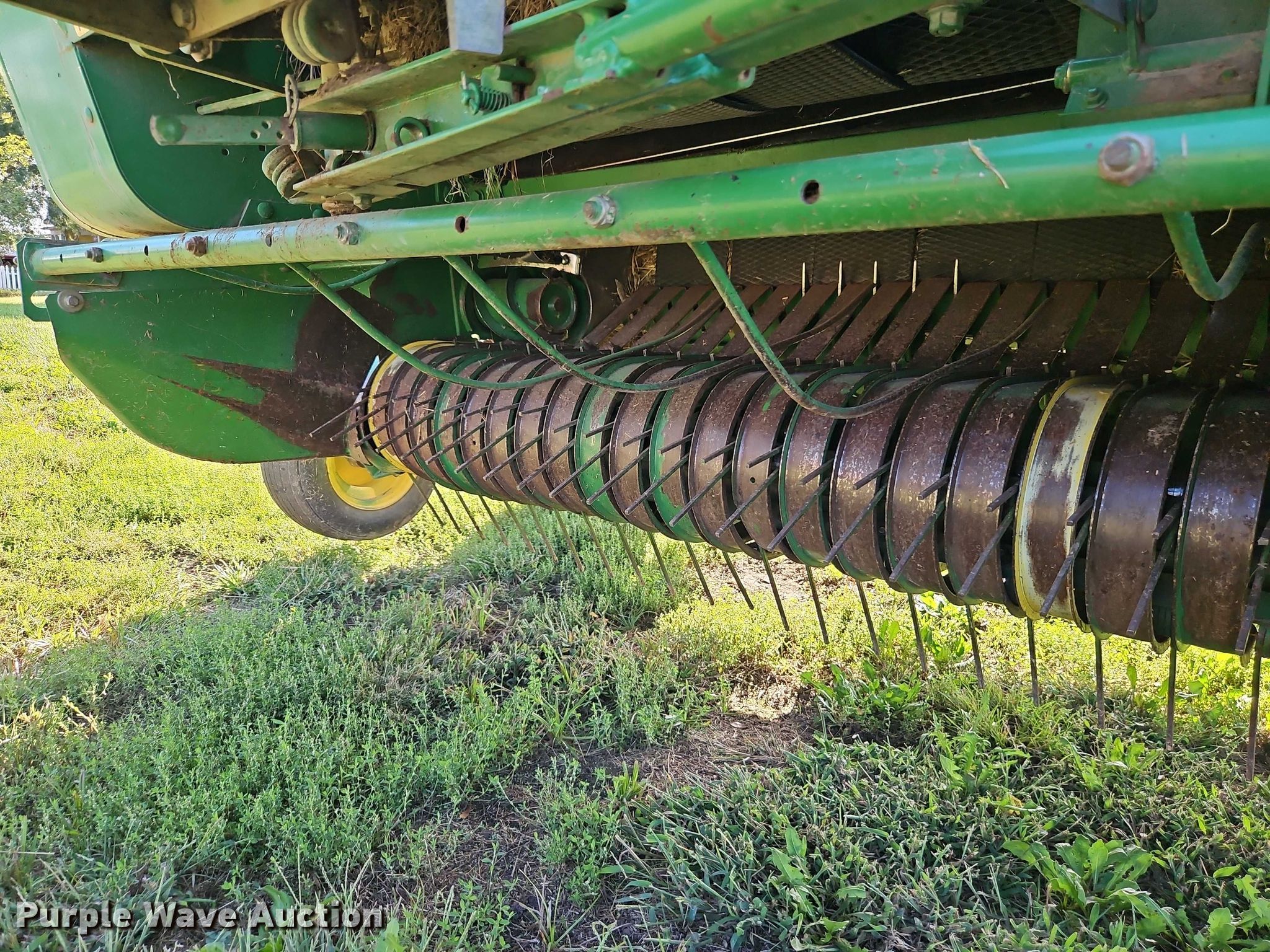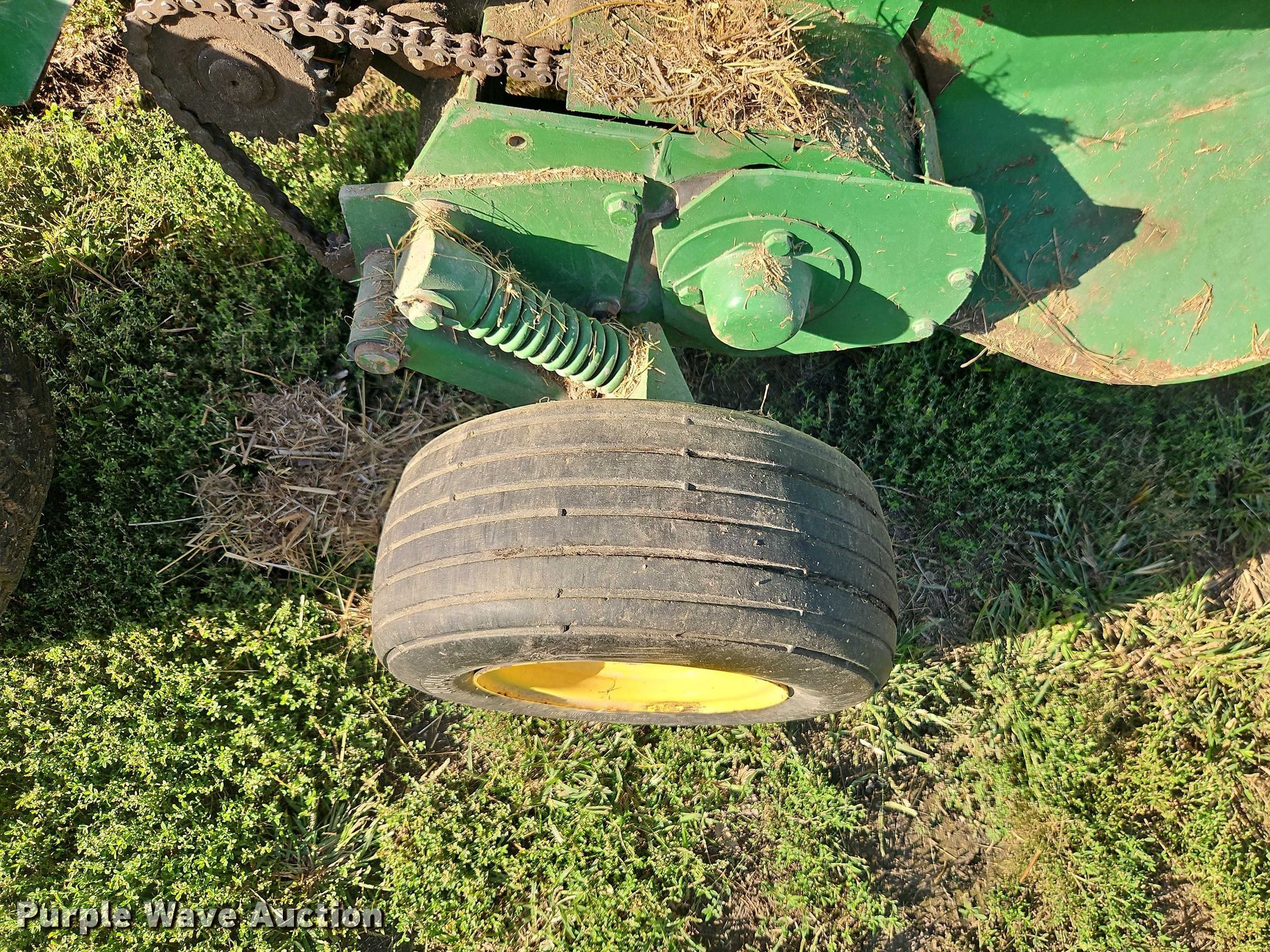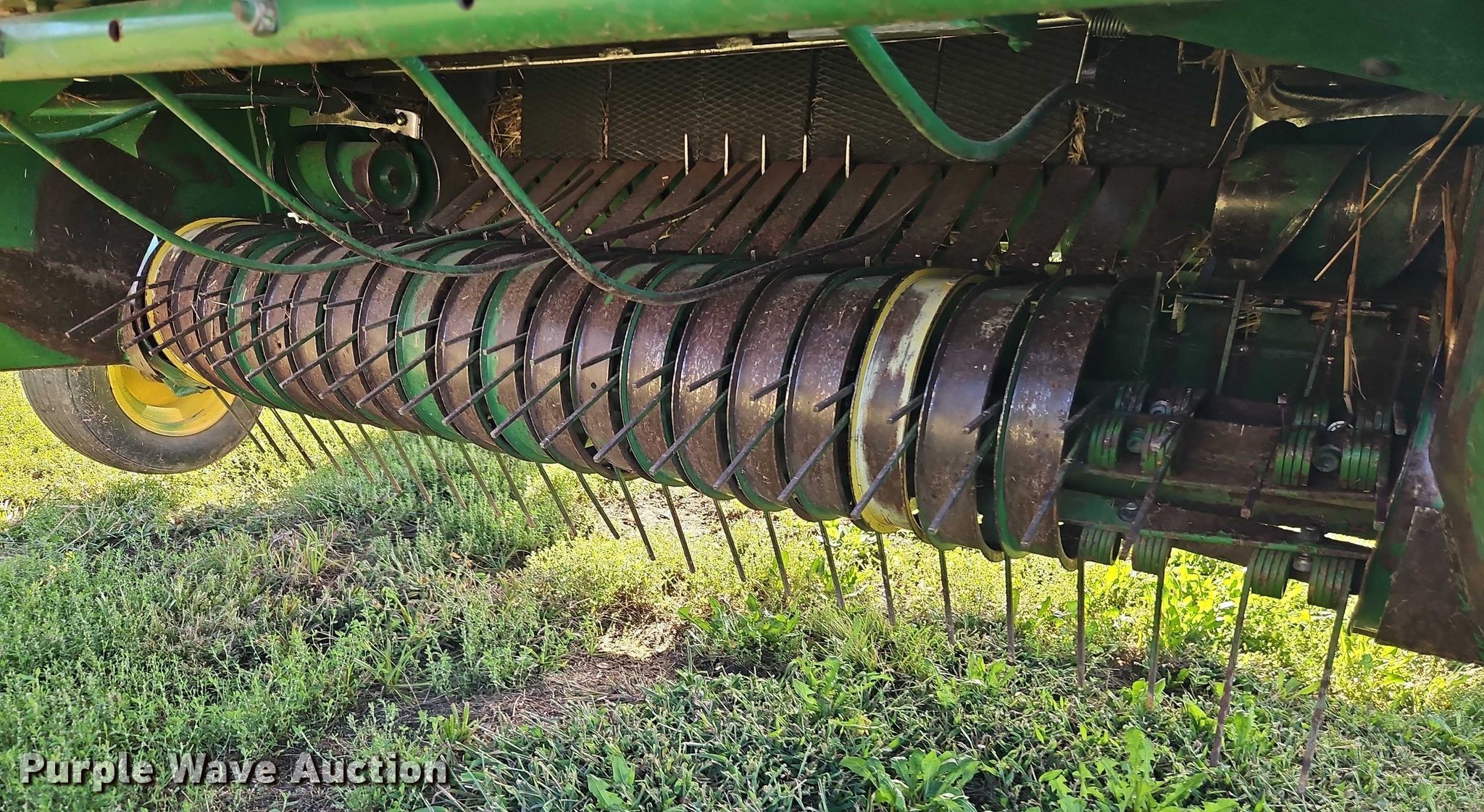 John Deere 466 round baler. Serial: E00466X144542. Features PTO: 540, Monitor John Deere, Silage special, Transport lights, Feed assist roller, Gauge wheels Size: 16x6.50, Pickup width: 60", Hydraulic pickup lift, Bale size: 4' x 6', Twin twine tie, Net-wrap, Bale kicker. Tires Size: 31x10.50R15. Kingsville, MO 64061