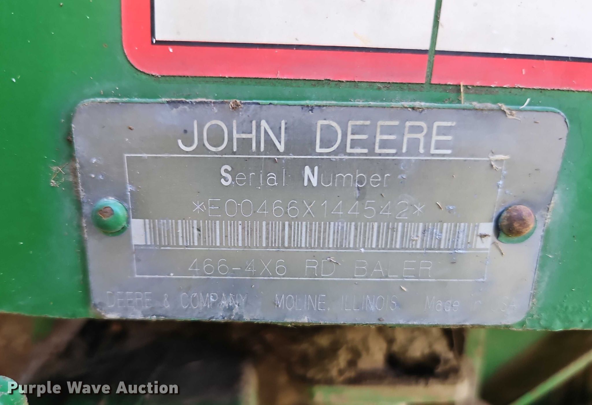 Purple Wave is selling a used Round Baler in Missouri. This item is a John Deere 466 round baler with the following: Serial: E00466X144542