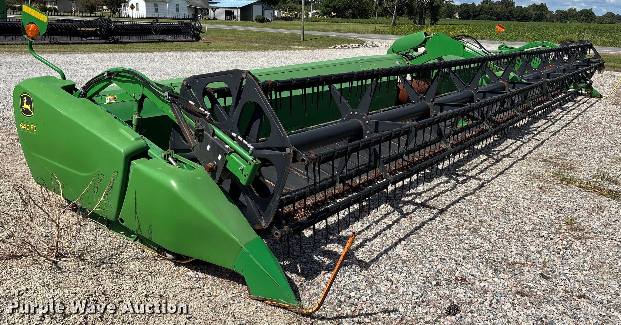 Take a look at this used 2012 John Deere 640FD flex draper head being sold on October 29th, 2025 in the Wednesday October 29 Ag Equipment Auction made by John Deere. Take a look at all of the item information below or take a look at similar auctions for Harvesters.