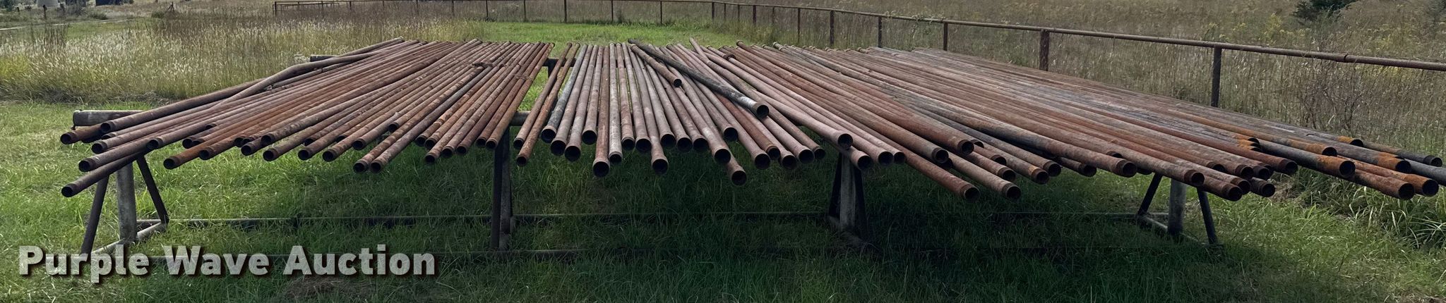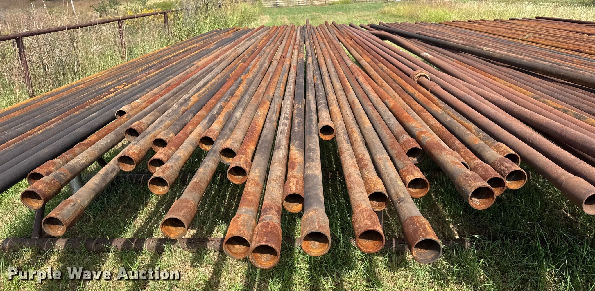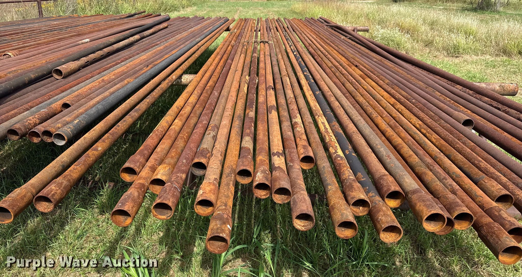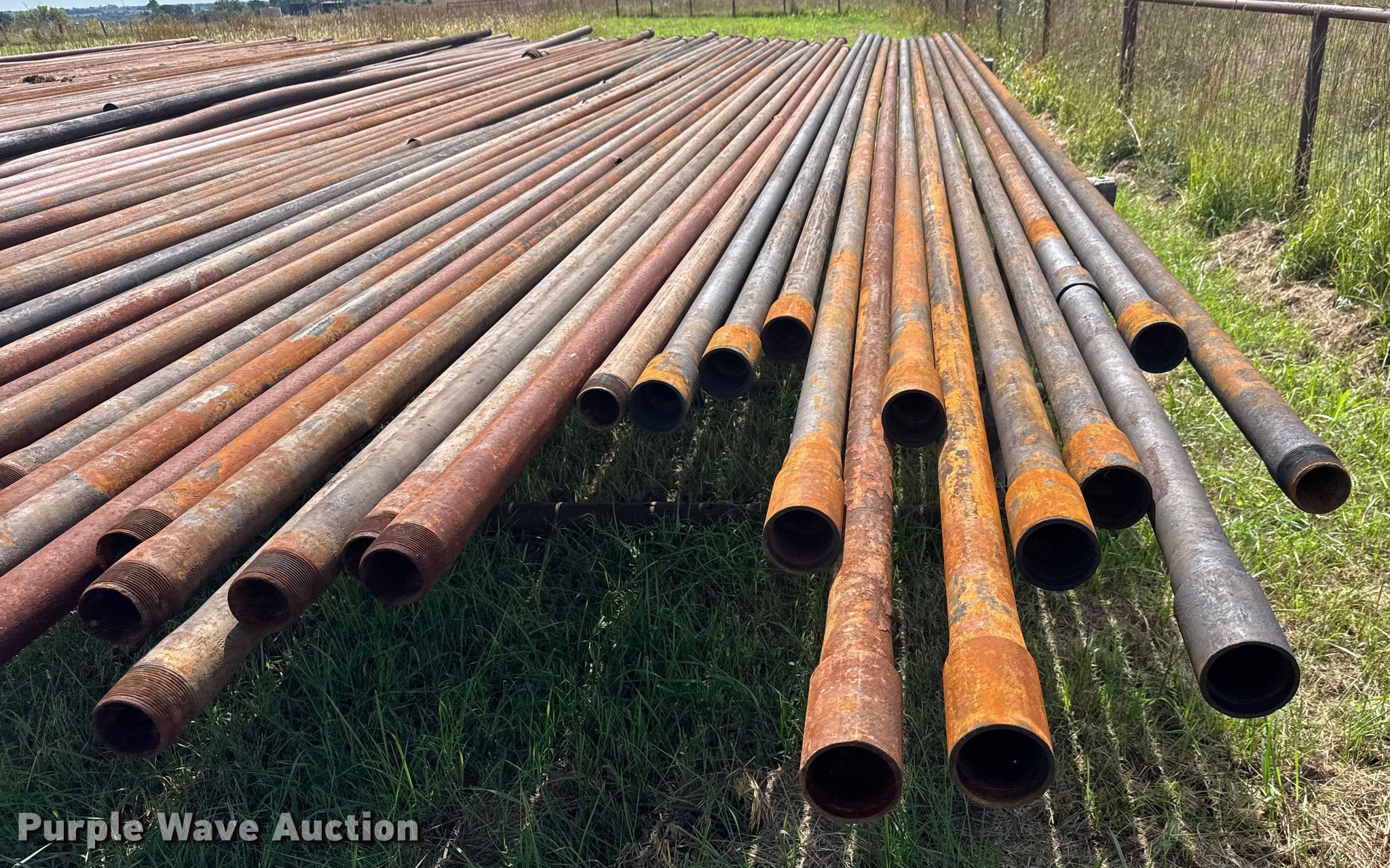 Purple Wave is selling a used Pipe in Kansas. This item is a Approximately 102 pieces of oil field pipe with the following: Length: 31', Approx (67) diameter: 2 7/8", Approx (35) diameter: 2 3/8", Stands not included