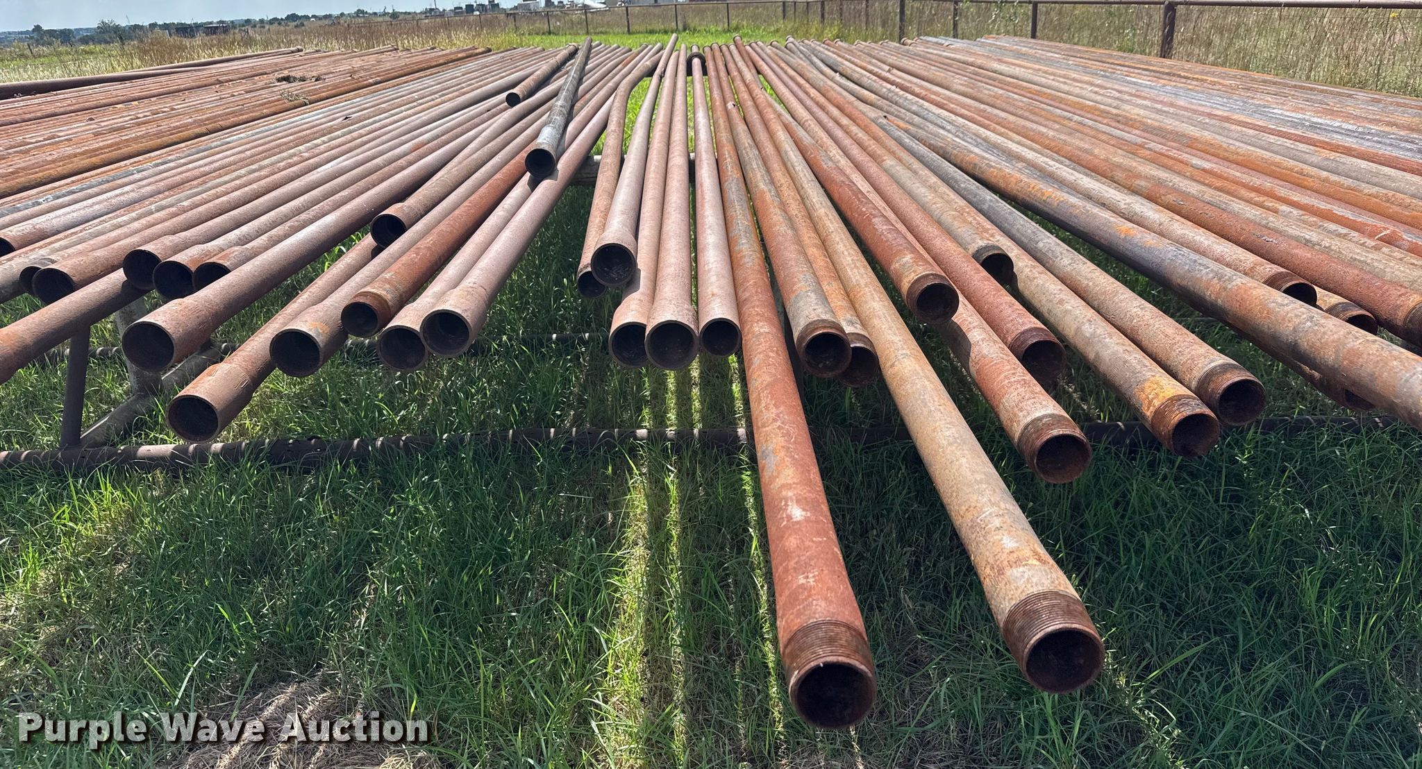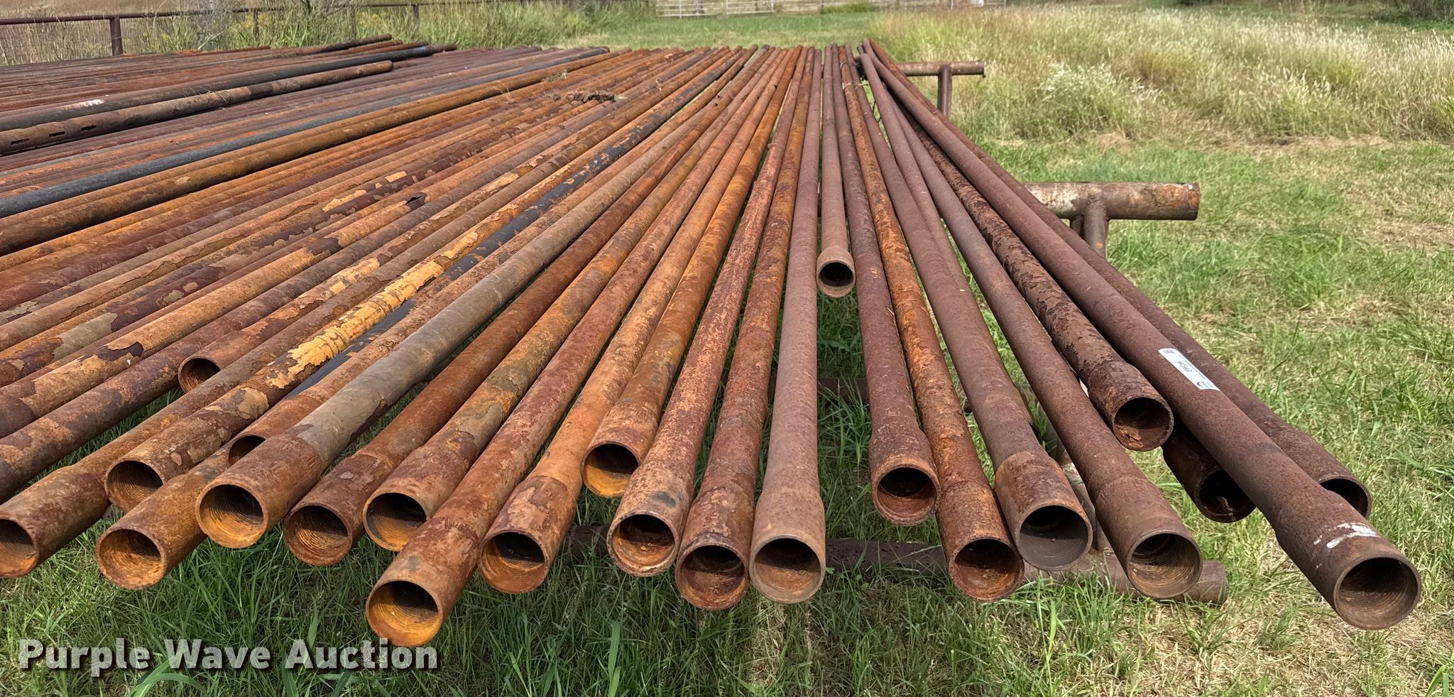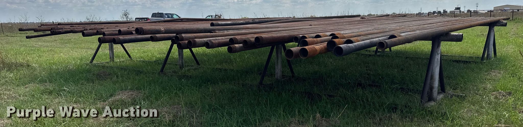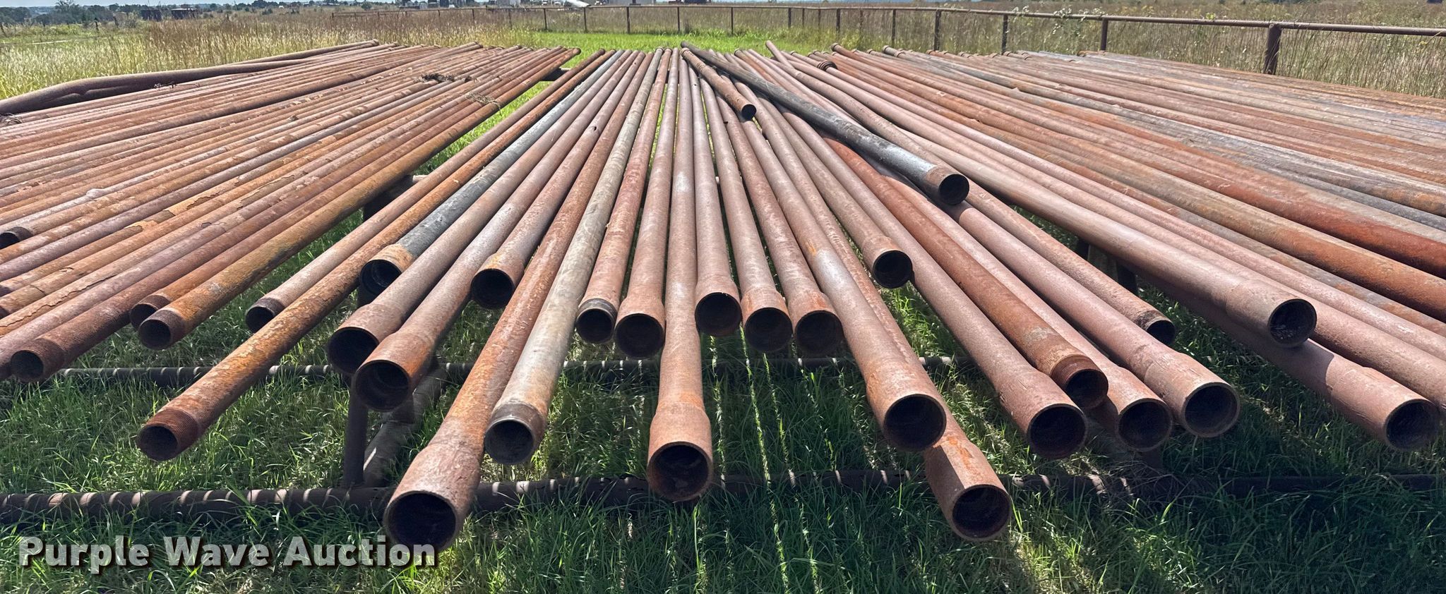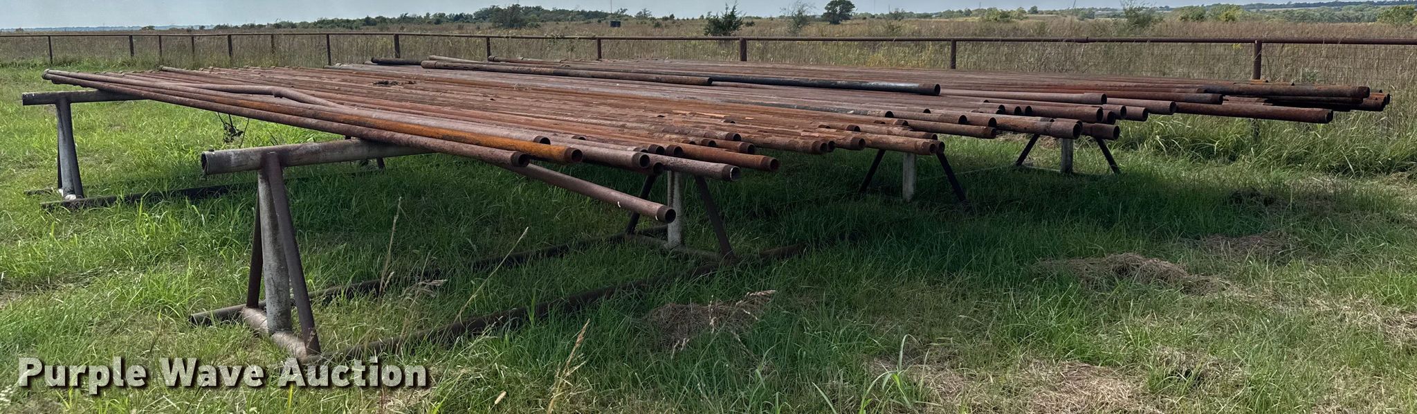 Purple Wave is selling a used Pipe in Kansas. This item is a Approximately 102 pieces of oil field pipe with the following: Length: 31', Approx (67) diameter: 2 7/8", Approx (35) diameter: 2 3/8", Stands not included