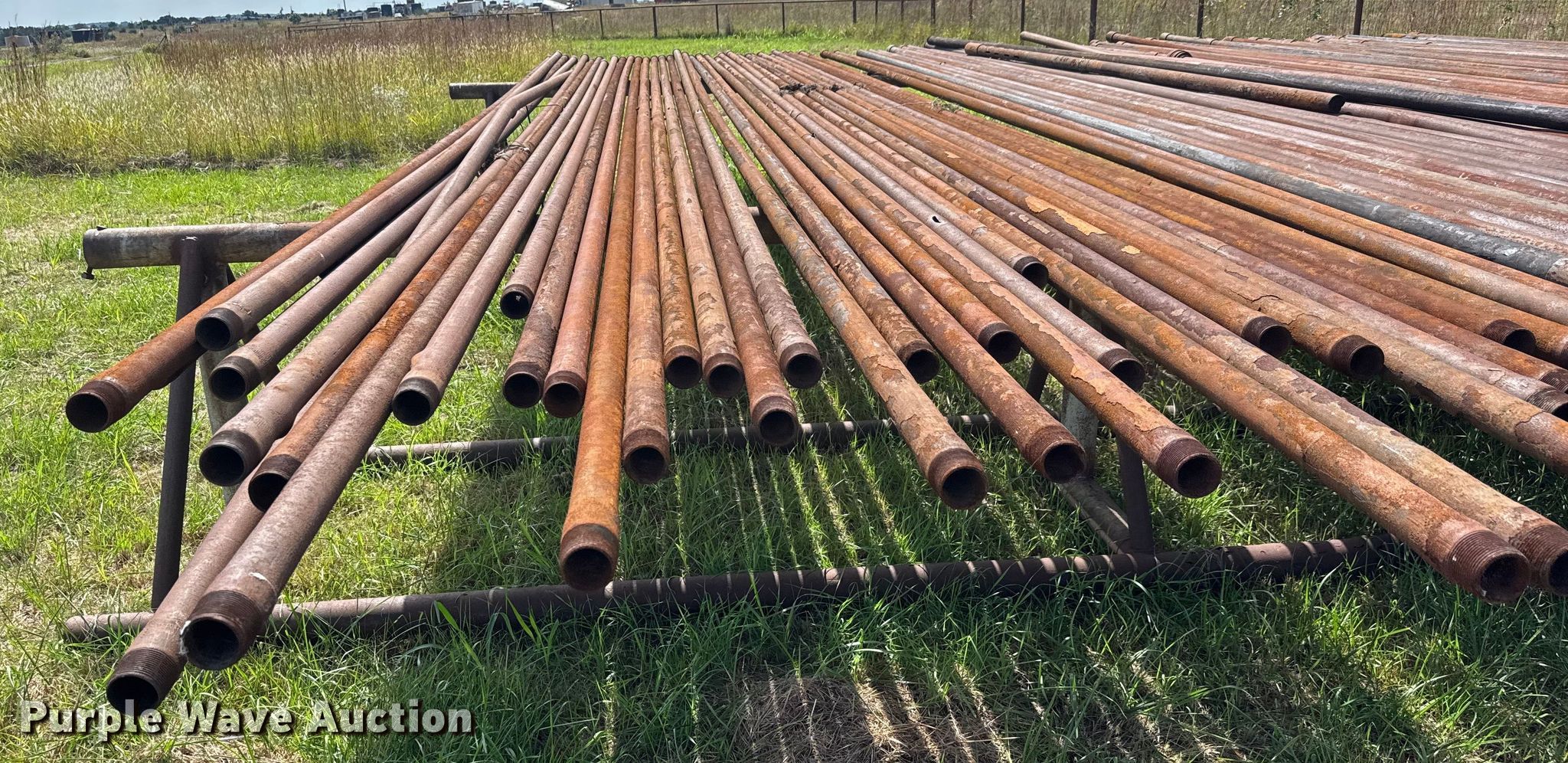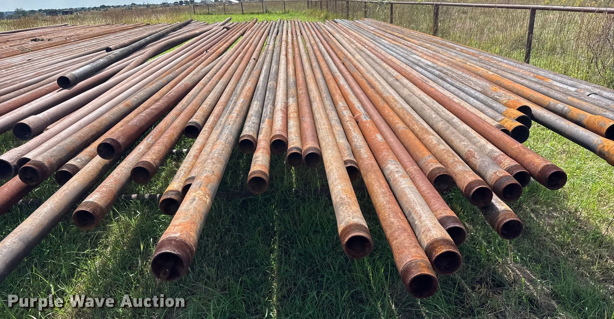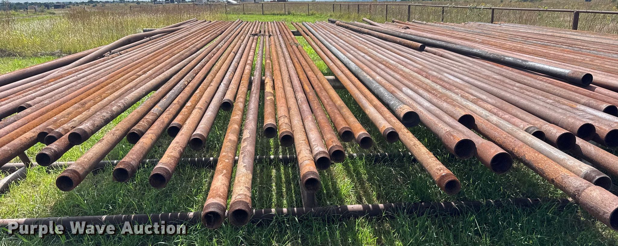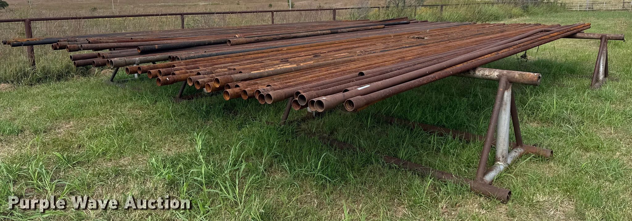 Purple Wave is selling a used Pipe in Kansas. This item is a Approximately 102 pieces of oil field pipe with the following: Length: 31', Approx (67) diameter: 2 7/8", Approx (35) diameter: 2 3/8", Stands not included