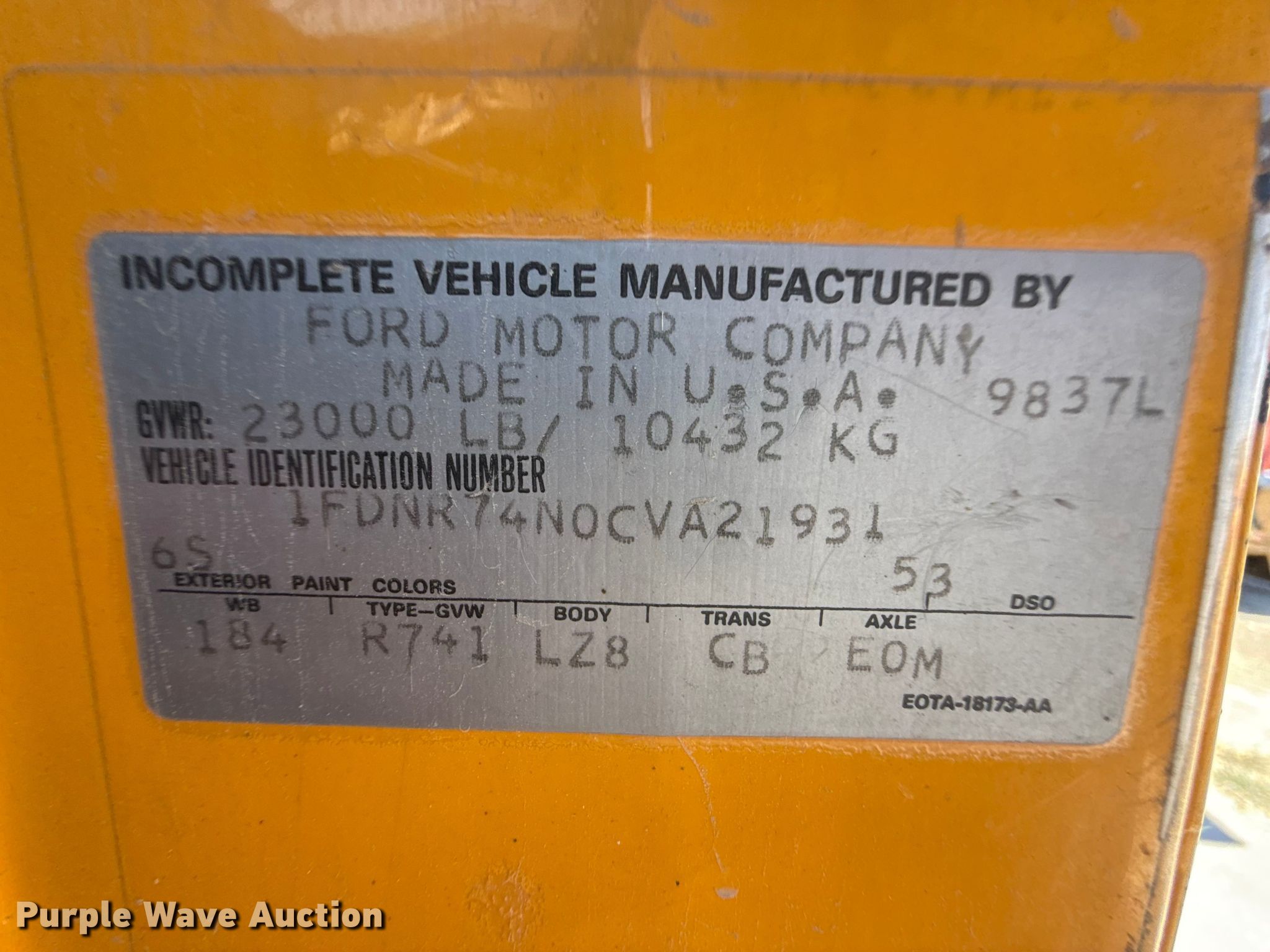 • VIN: 1FDNR74N0CVA21931