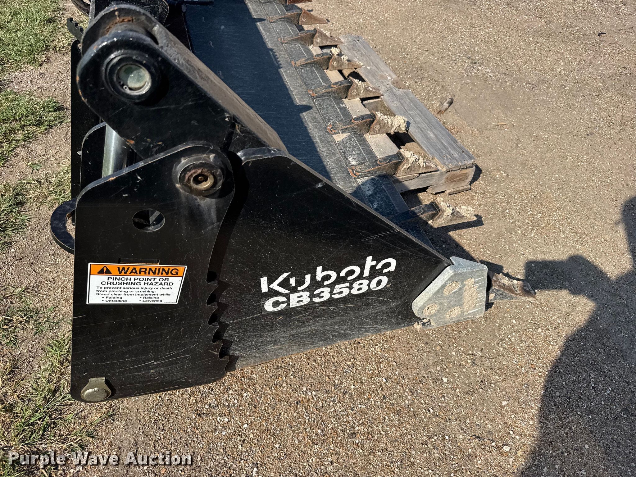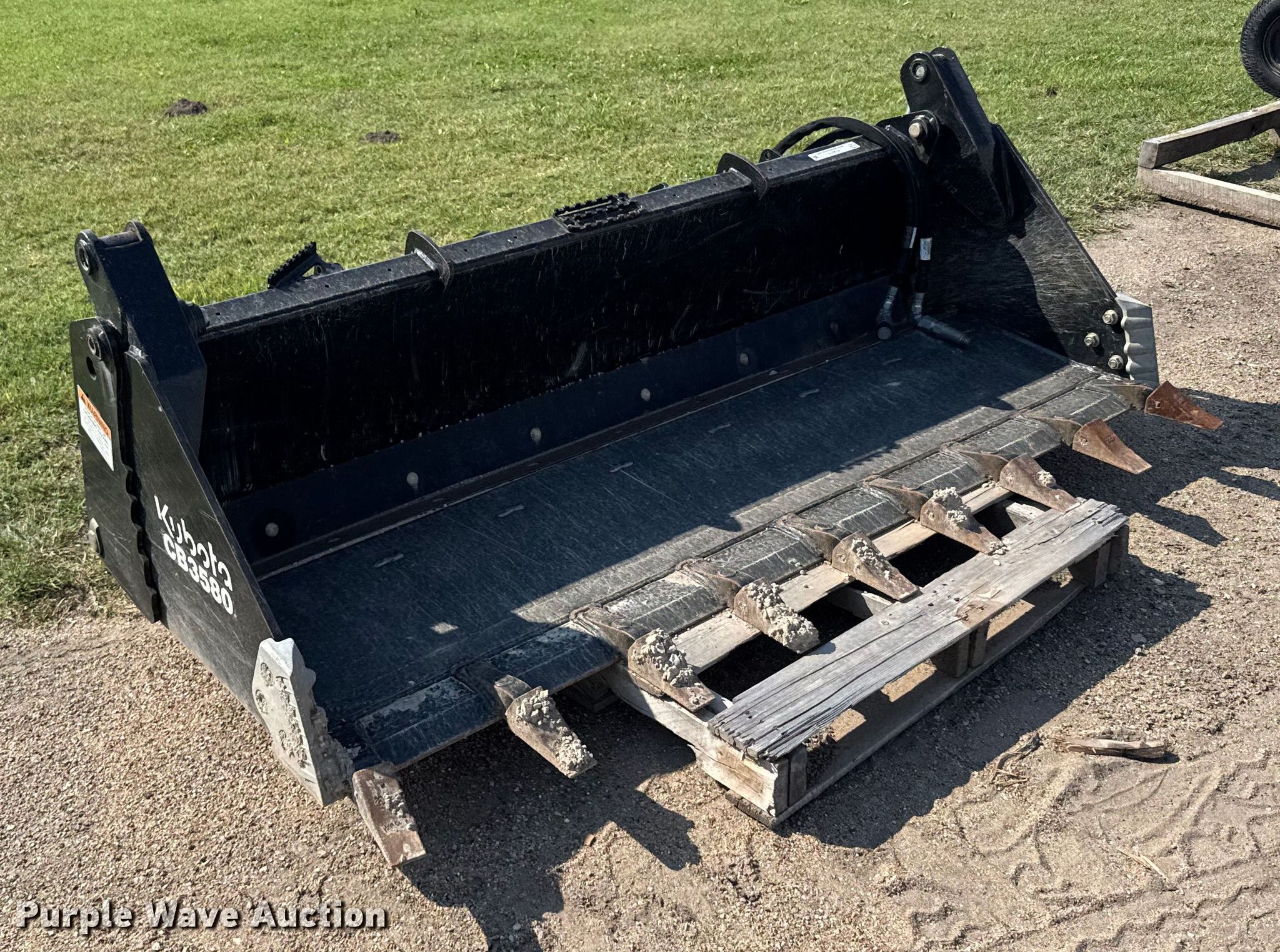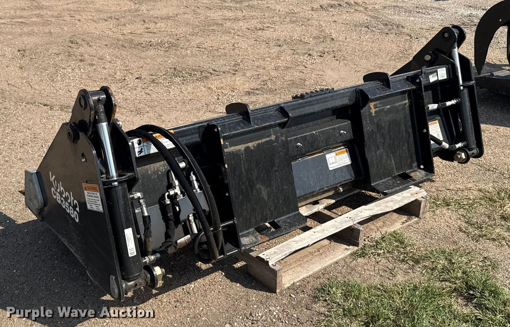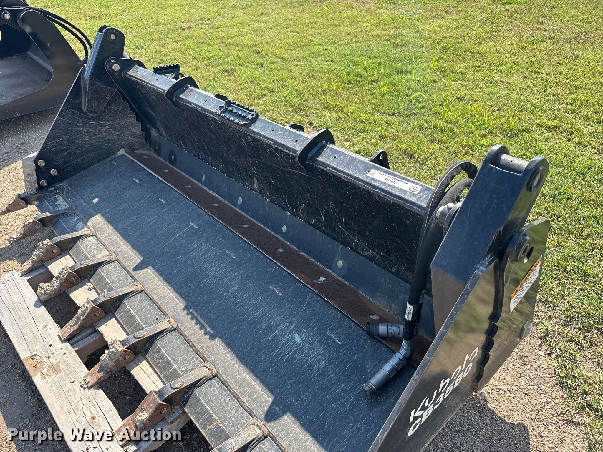 Purple Wave is selling a used Skid Steer Attach. in Kansas. This item is a Kubota CB3580 skid steer four-in-one bucket with the following: Width: 80", Teeth: Weld-on