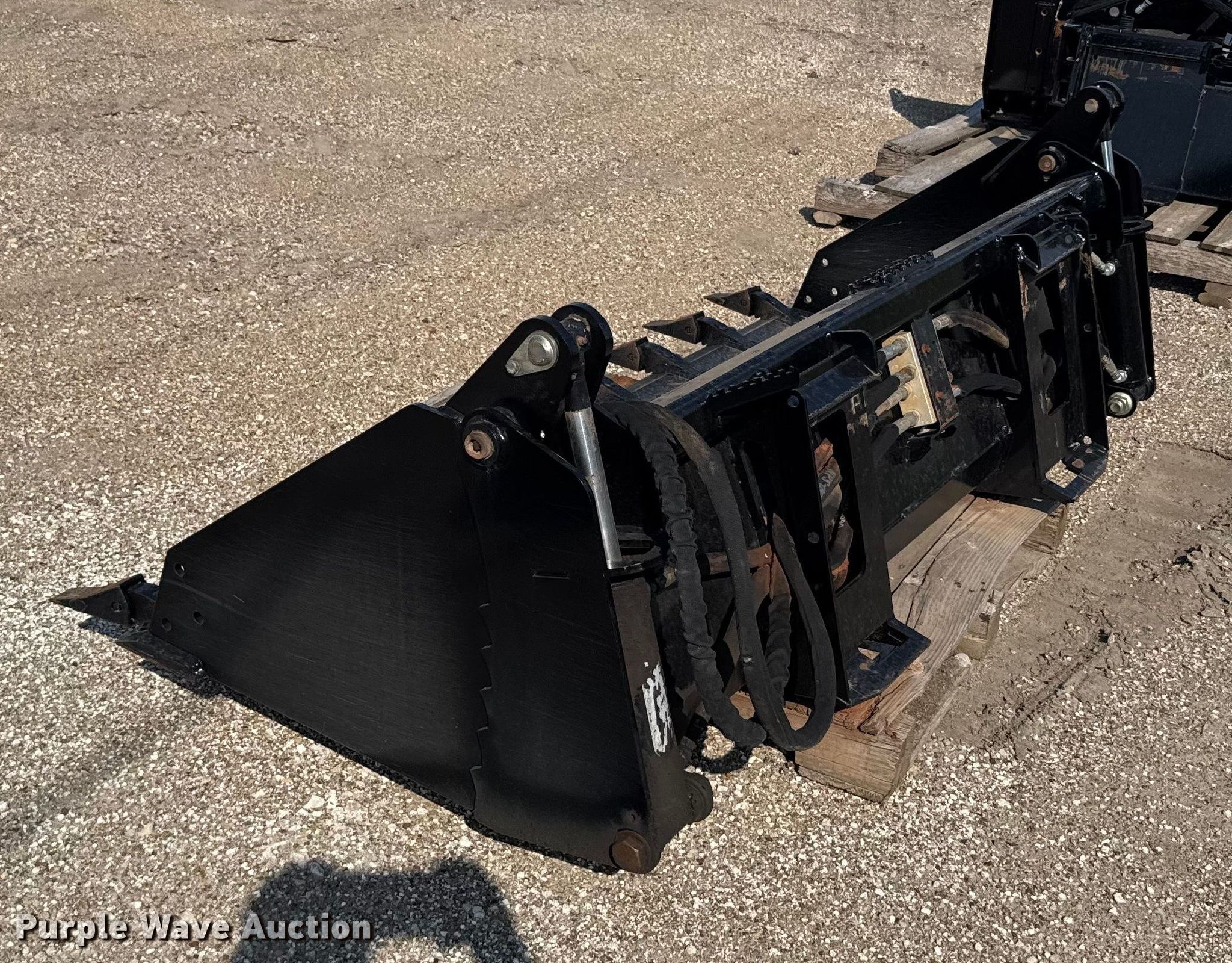 This Land Pride CB2580 skid steer four-in-one bucket will sell to the highest bidder regardless of price.