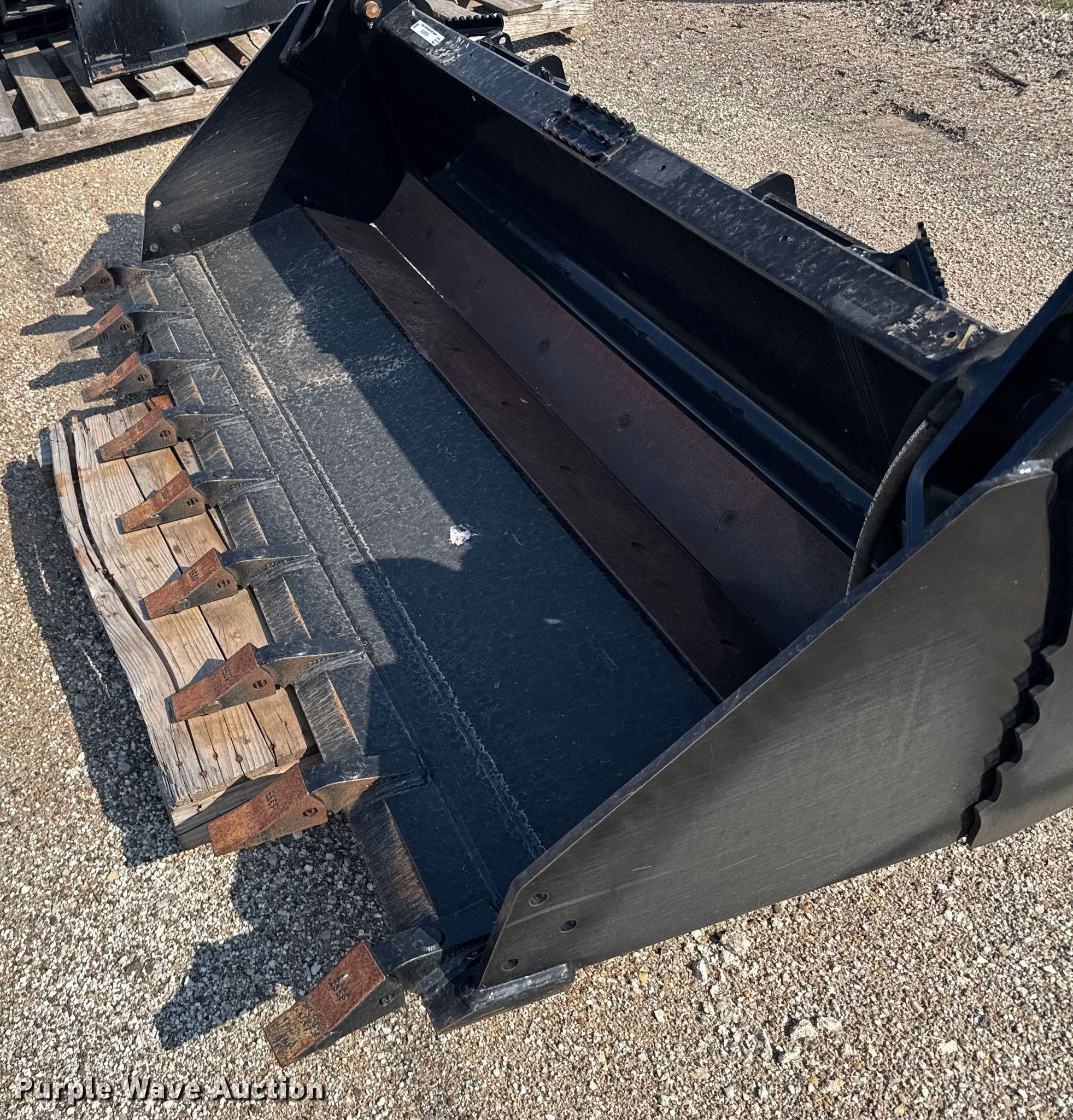 Purple Wave is selling a used Skid Steer Attach. in Kansas. This item is a Land Pride CB2580 skid steer four-in-one bucket with the following: Width: 82", Four-in-one, Teeth: Weld-on