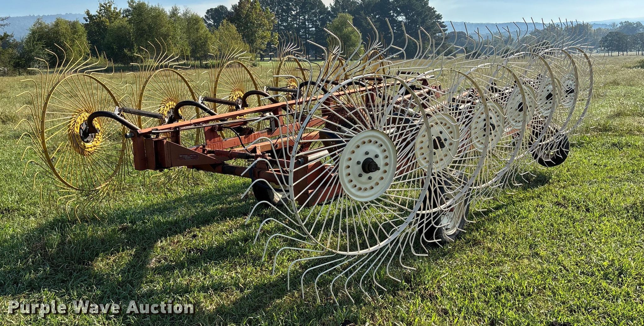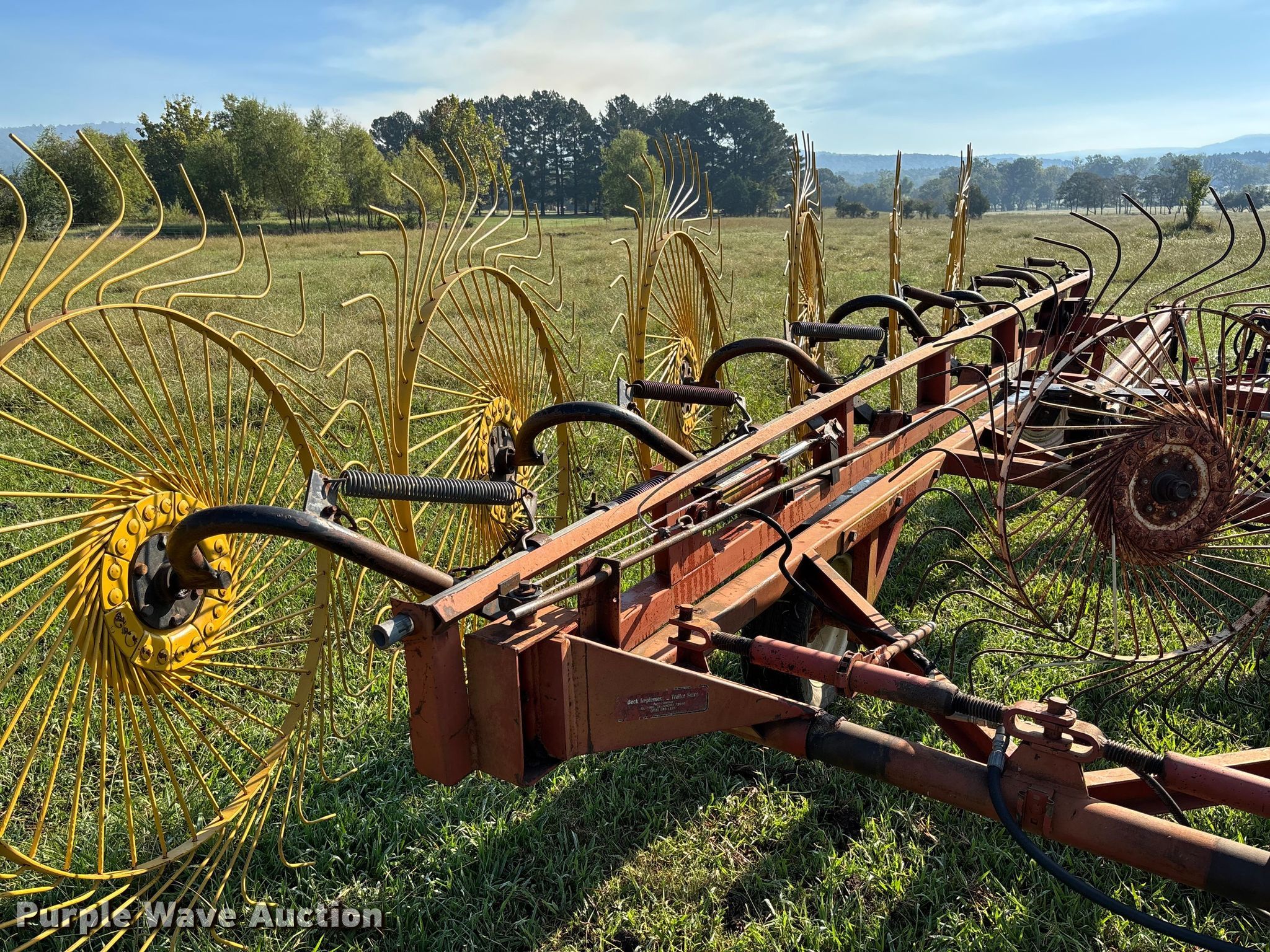 Purple Wave is selling a used Hay Rake in Arkansas. This item is a H & S hay rake with the following: Wheels: 13, Diameter: 54", Hydraulic lift, Hydraulic fold, Ground driven