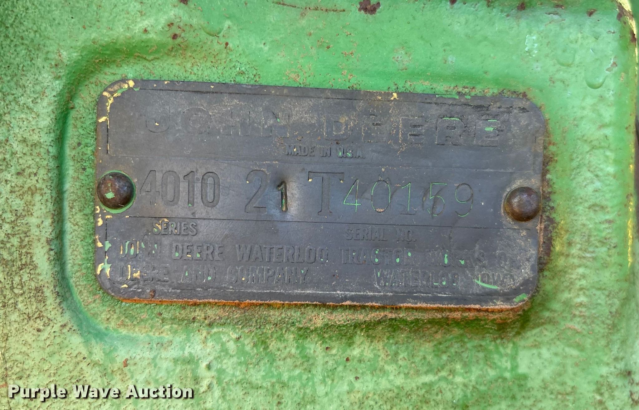 Purple Wave is selling a used Tractor in Oklahoma. This item is a 1960 John Deere 4010 tractor with the following: Hours: 7,380 on meter, Serial: 21T40159
