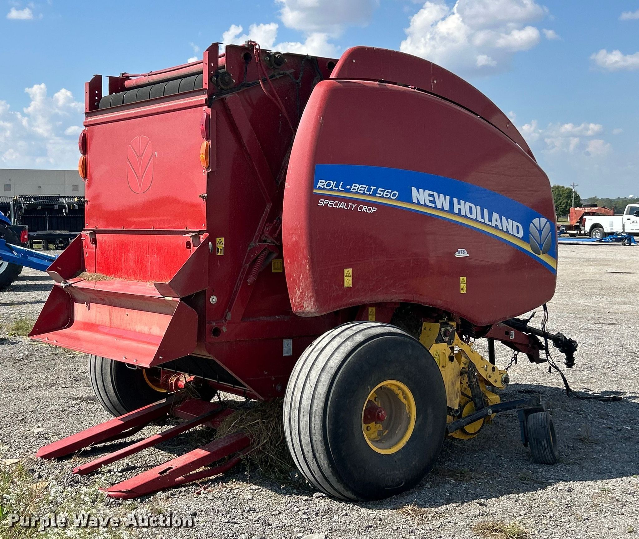 Purple Wave is selling a used Round Baler in Illinois. This item is a 2016 New Holland Roll-Belt 560 Specialty Crop round baler with the following: Serial: YGN192281, Unit #: 85275235