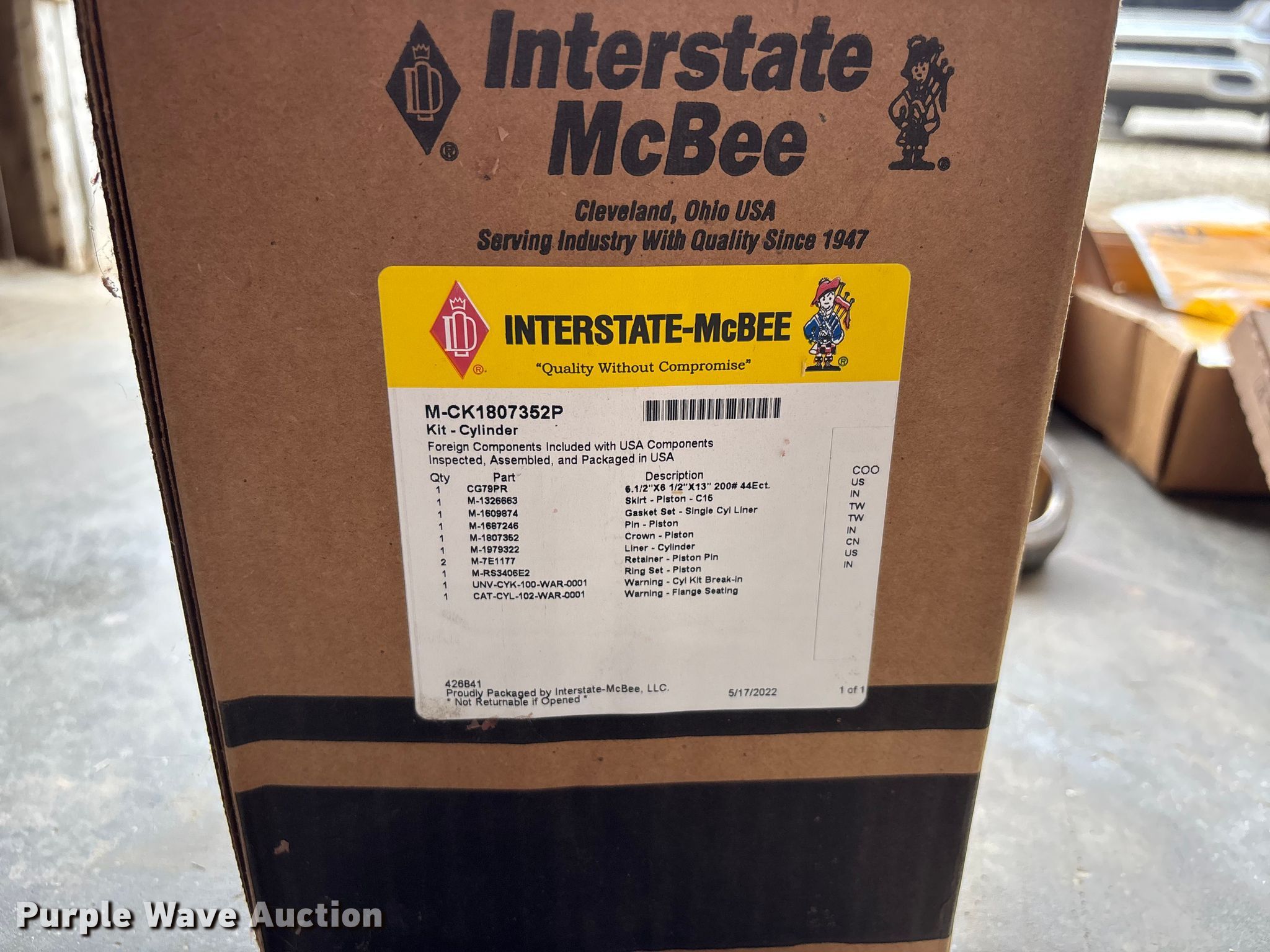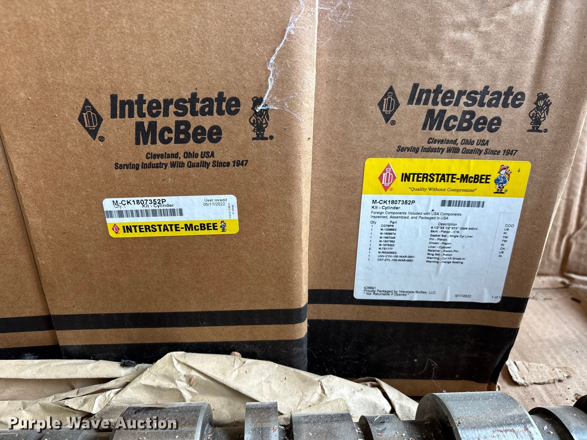 Purple Wave is selling a used Truck Part and Attach. in Illinois. This item is a Caterpillar C15 engine rebuild kit with the following: Cam shaft, (6) pistons and rings, (6) connecting rods, Seals and gaskets