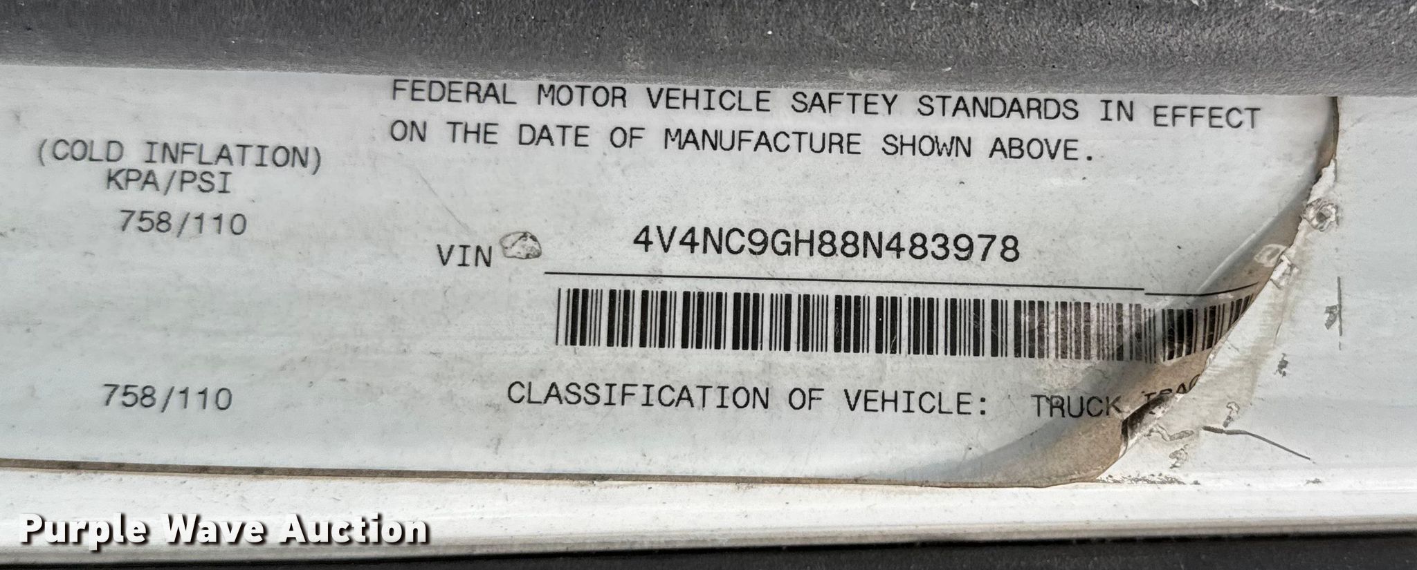 2008 Volvo VNL semi truck. Miles: Unknown, VIN: 4V4NC9GH88N483978. Engine Volvo, Displacement: 12.1L, Cylinders: 6, Fuel type: Diesel. Transmission Eaton Fuller FR0-15210C, Manual, Speed: 11. Chassis Axles: Tandem, Suspension: Air, Brakes: Air, Truck chassis: 150", GVWR: 50,000 lbs FAWR: 12,000 lbs, IAWR: 19,000 lbs, RAWR: 19,000 lbs. Interior AC, Heat, Air ride cab. Features Deck plate: Aluminum, Fifth wheel type: Fixed, Fuel tank: Dual. Tires Size: 11R22.5. Notes Dead battery, Key not included, Rust damage, Non-operational unit. Kansas title. Mileage has not been verified. Odometer discrepancy will be marked on the title. Title distribution may be delayed up to 30 days from verification of funds. POD Logistics Inc.. Kansas City, MO 64120