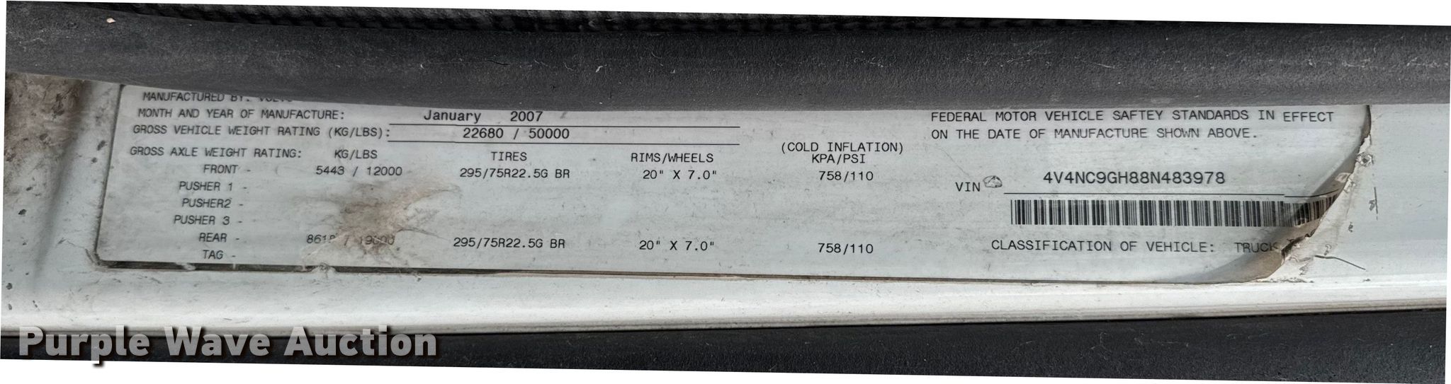 Purple Wave is selling a used Truck Tractor in Missouri. This item is a 2008 Volvo VNL semi truck with the following: Miles: Unknown, VIN: 4V4NC9GH88N483978