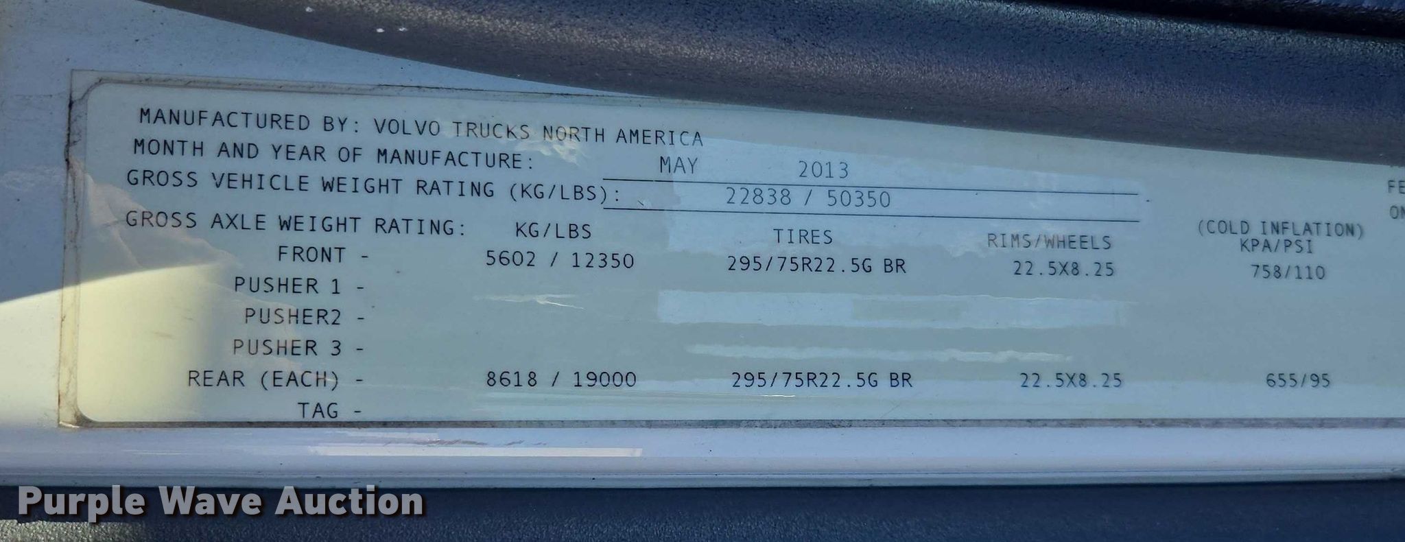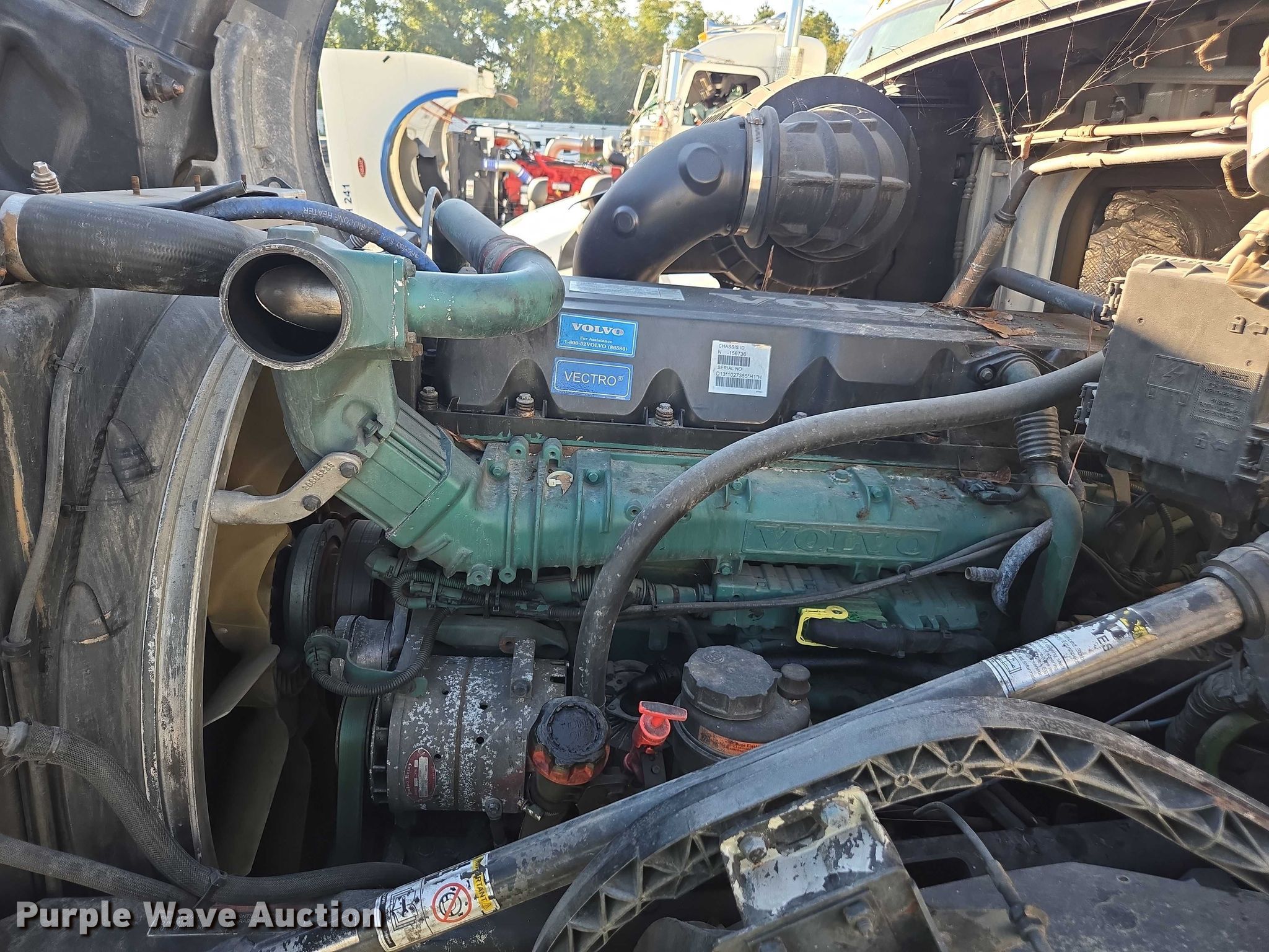 2014 Volvo VNL semi truck. Miles: 1,068,009 on odometer, VIN: 4V4NC9EG7EN156736, Unit #: 68550555. Engine Volvo D13H405, Serial: 1027385, Displacement: 12.8L, Cylinders: 6, Fuel type: Diesel, HP: 405. Transmission Manual, Speed: 10. Chassis Axles: Tandem, Differential lock: Inter-axle, Suspension: Air Dump valves, Brakes: Air, GVWR: 50,350 lbs. Interior AC, Heat, Heated mirrors, Power windows, Cruise control, Air ride cab, Sleeper Sleeper length: 60", Beds: Double bunk, Rear climate control. Features Deck plate: Aluminum, Fifth wheel type: Air operated, Sliding, Fuel tank: Dual. Tires Size: 295/75R22.5. Notes Dash warning indicator: Electrical system fault, Low system air pressure, TCS, Possible electrical issues, Non-operational engine, parts missing , Non-operational unit, Unit must be towed or hauled. Repossessed item, stored at a secured facility. Please review REQUIRED REMOVAL INSTRUCTIONS. Titles will be distributed after confirmation of payment and removal. Georgia title. Title distribution may be delayed up to 30 days from verification of funds. Lender Owned. 304 Smith Road. Byron, GA 31008