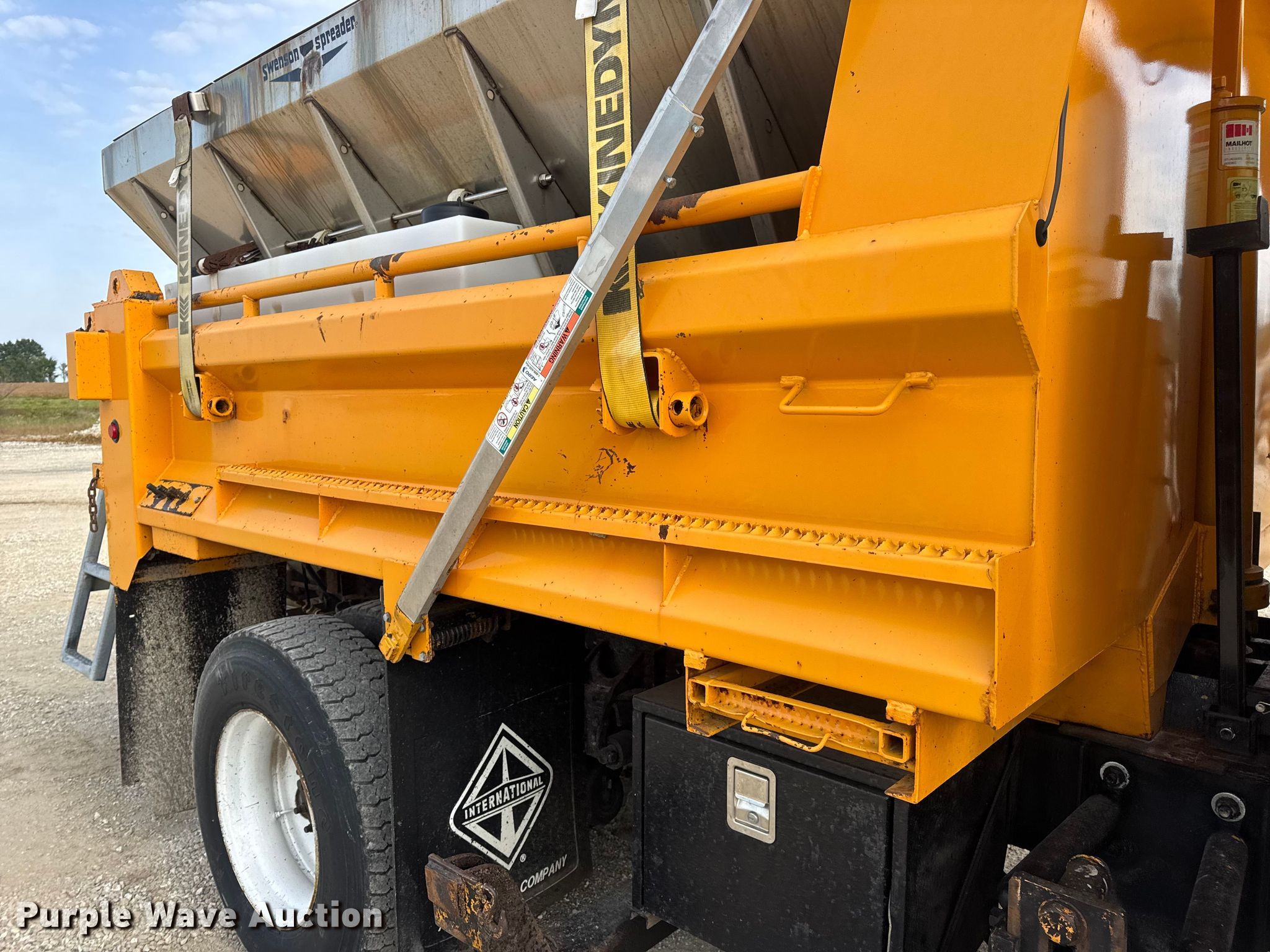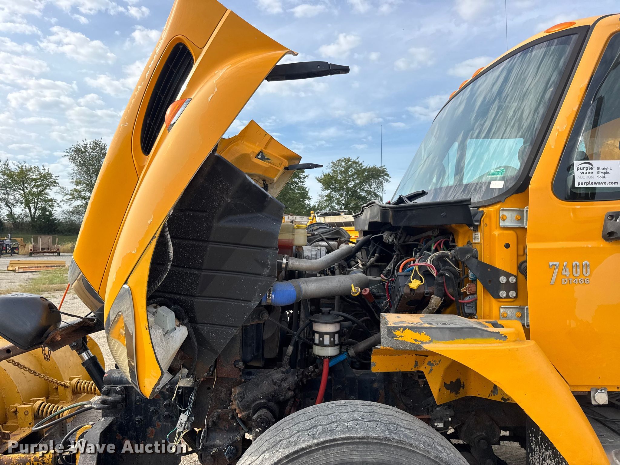 2004 International 7400 dump truck. Miles: 184,083 on odometer, Hours: 13,220 on meter, VIN: 1HTWDAAR74J023229, Unit #: 7167. Engine International DT466, Displacement: 7.6L, Cylinders: 6, Fuel type: Diesel. Transmission Automatic. Chassis Axles: Single, Suspension: Spring, Brakes: Air, PTO, GVWR: 37,000 lbs FAWR: 16,000 lbs, RAWR: 21,000 lbs, Wheelbase: 171". Interior AC, Heat, Heated mirrors, Power windows, Cruise control, Brake controller. Features Bed Dump bed, Length: 10', Width: 96", Side height: 25", Bed type: Steel, Roll tarp, Ram: Single, End gate: Air operated, Spreader Swenson Spreader, Plow Width: 144", Wing plow Width: 96". Tires Front: 315/80R22.5, Rear: 11R22.5. Notes Possible AC issues, may need charged, Spreader disconnected, Tailgate and wing plow removed but included, Front blade cylinder missing, Dash warning indicator: ABS. Missouri title. Title distribution may be delayed up to 14 days from verification of funds. Missouri Department of Transportation (MODOT). Macon, MO 63552