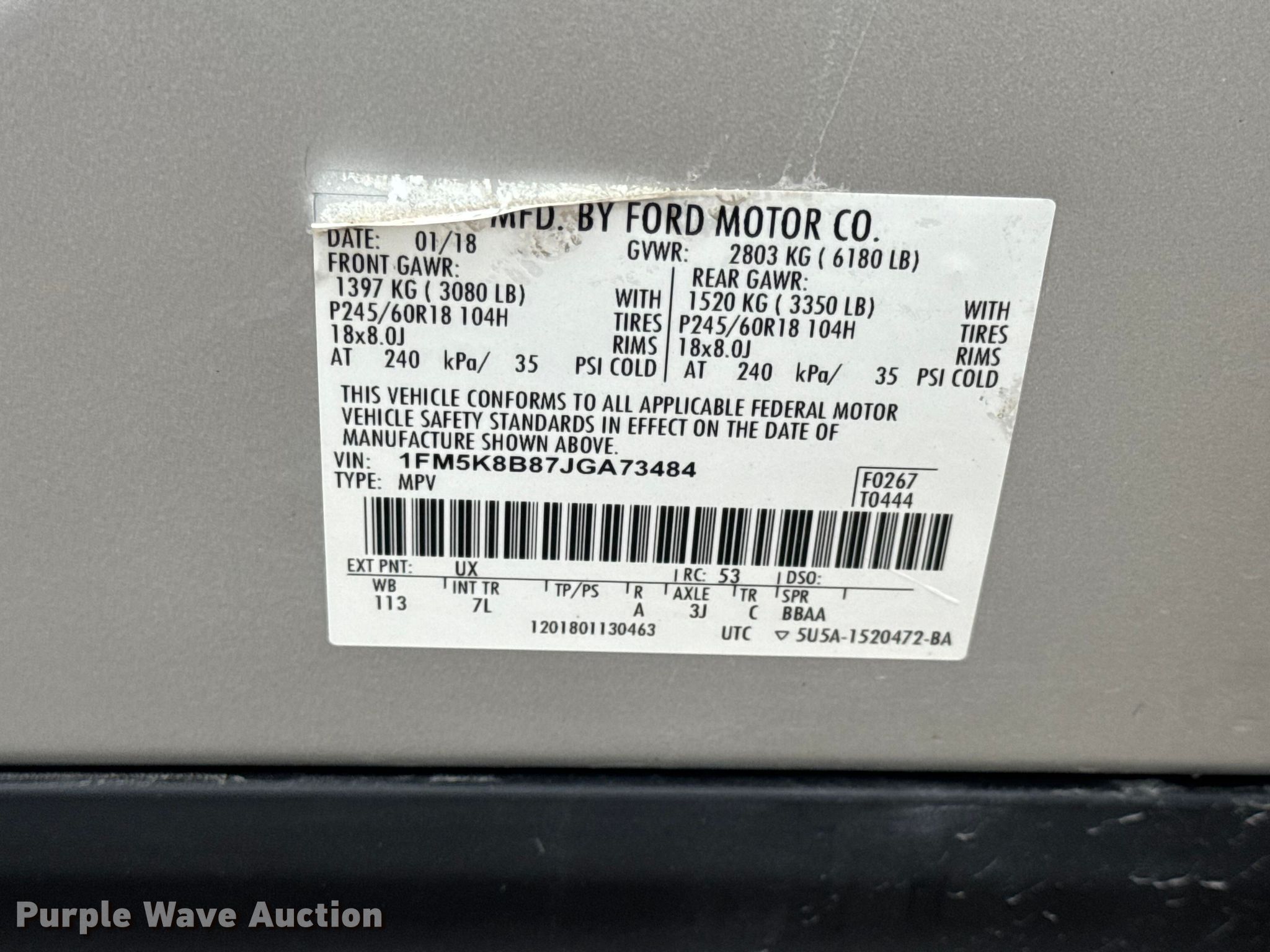 - VIN: 1FM5K8B87JGA73484