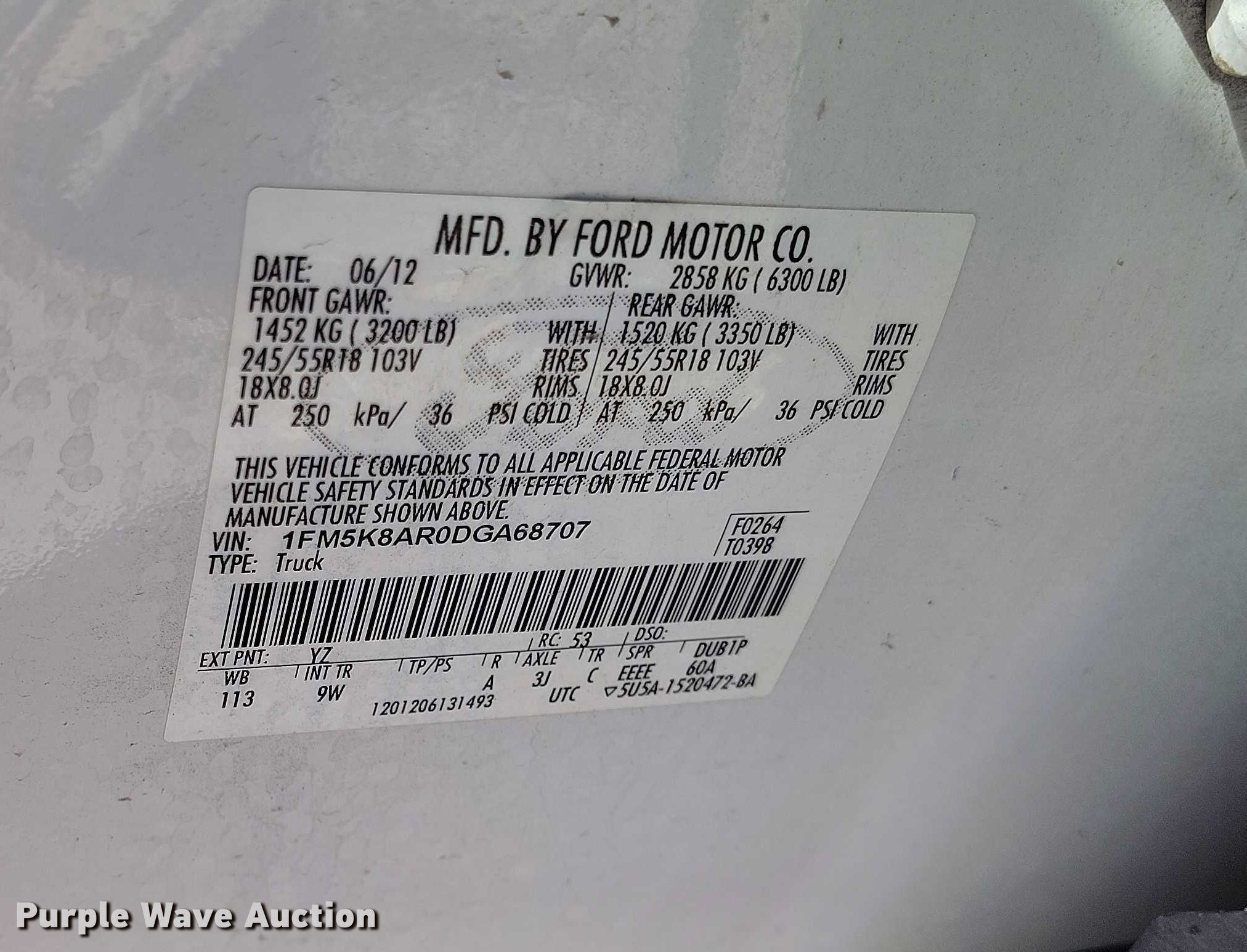 - VIN: 1FM5K8AR0DGA68707