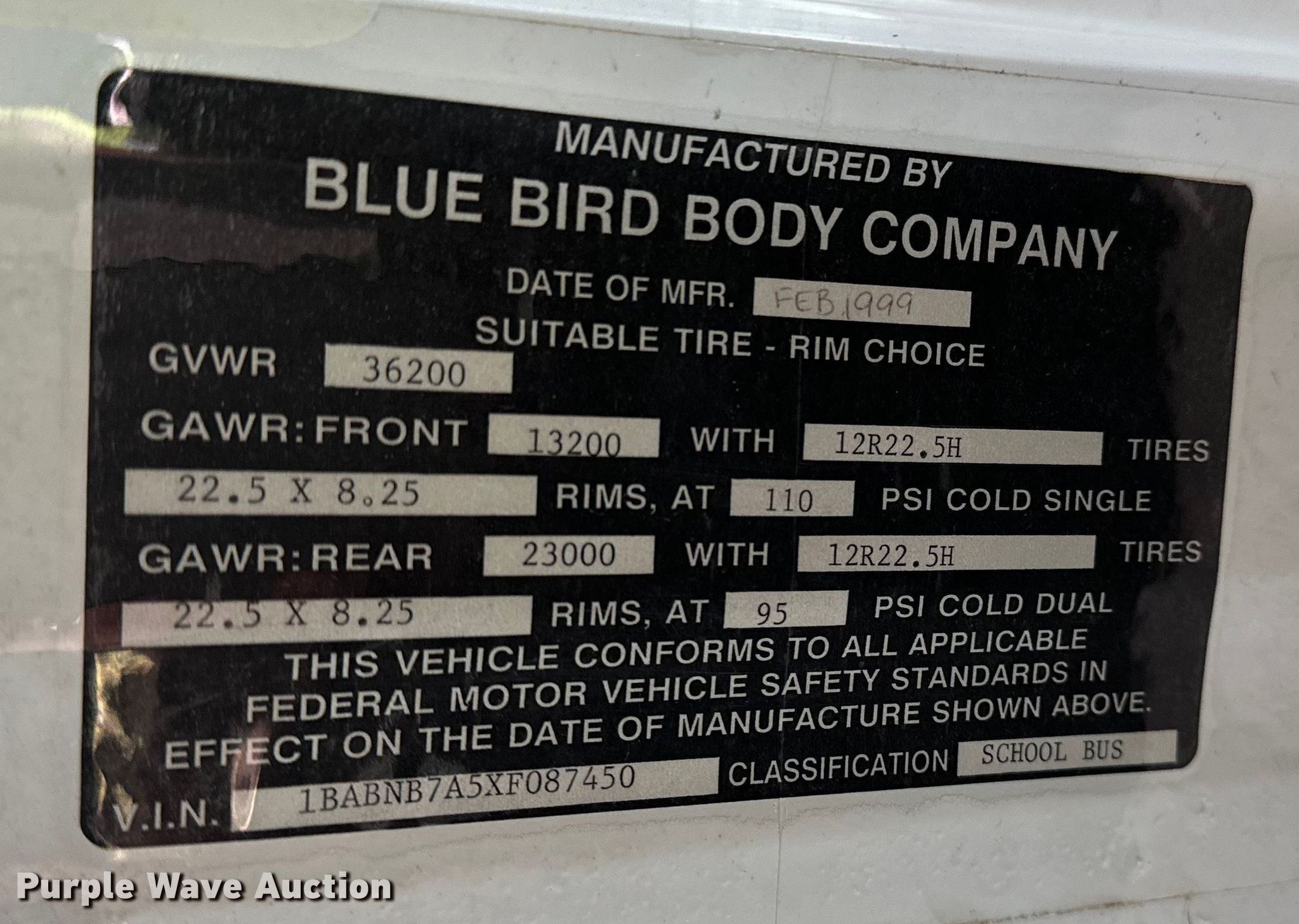 Purple Wave is selling a used Bus in Nebraska. This item is a 1999 Blue Bird All American school bus with the following: Miles: 179,509 on odometer, VIN: 1BABNB7A5XF087450