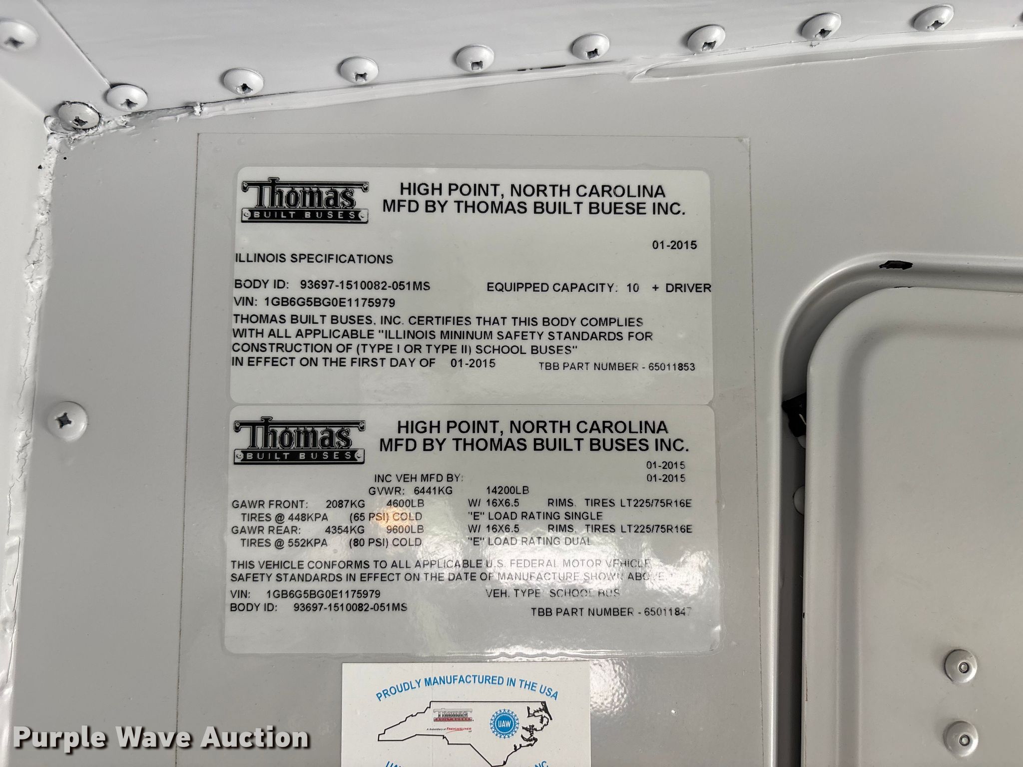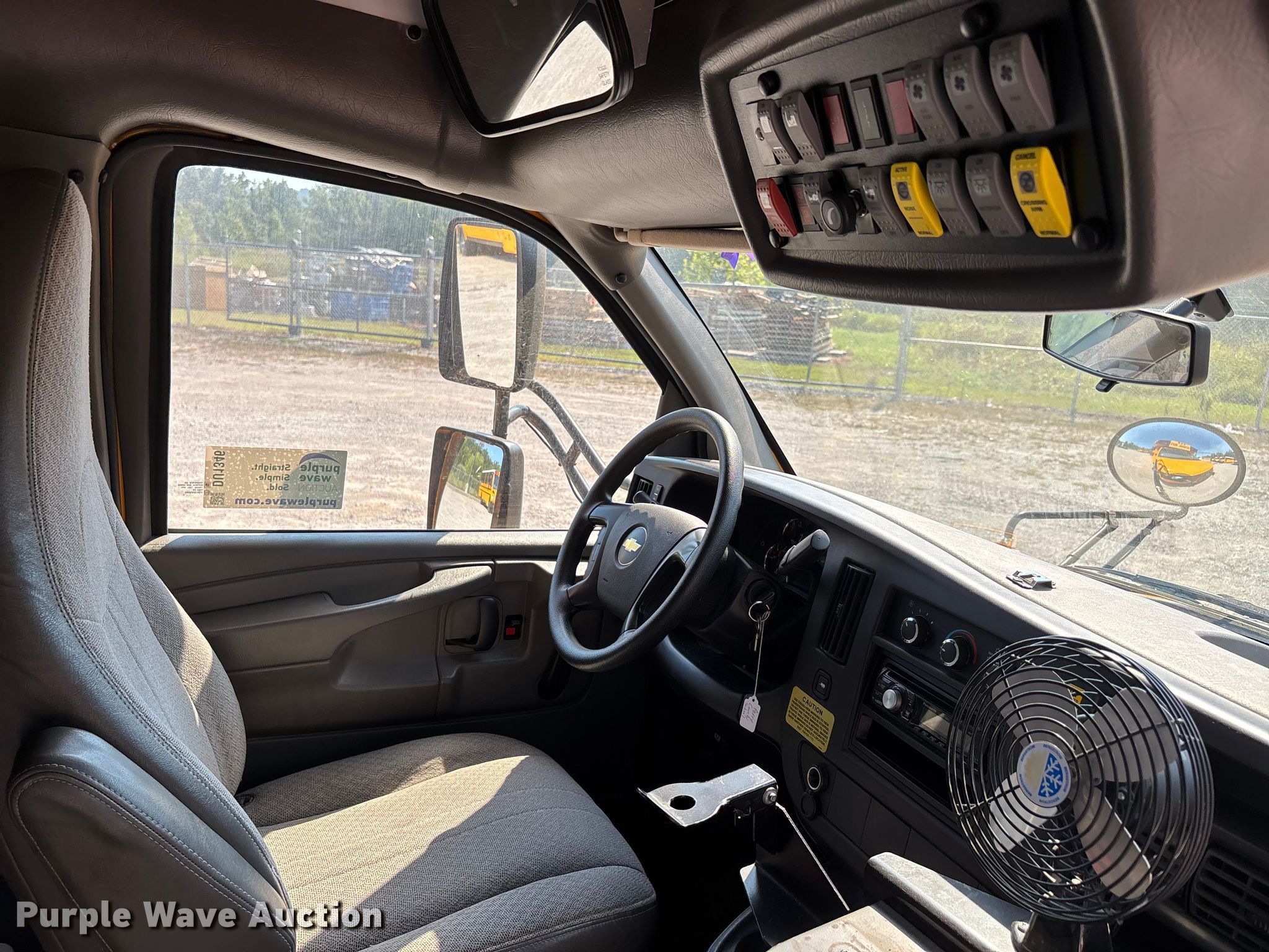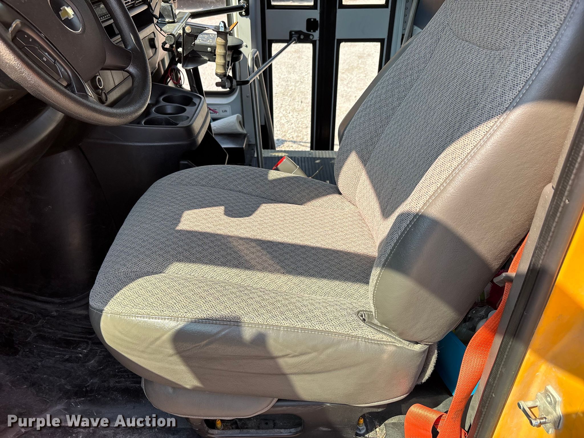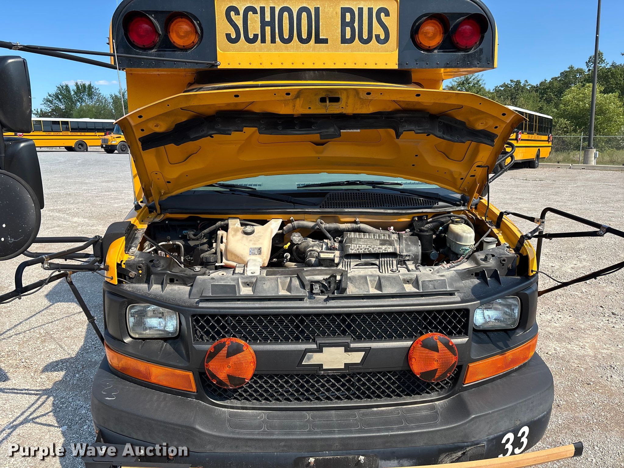 2014 Chevrolet School bus. Miles: 88,965 on odometer. Engine GM Vortex, Displacement: 6.0L, Cylinders: 8, Fuel type: Gas. Transmission Automatic. Chassis Axles: Single, Suspension: Spring, Brakes: Hydraulic, GVWR: 14,200 lbs. Interior AC, Heat, Cruise control, Passengers: 12, Wheelchair lift. Tires Size: 225/75R16. Notes Dash warning indicator: Check engine. Missouri title. Title distribution may be delayed up to 14 days from verification of funds. Perry County School District 32. Perryville, MO 63775