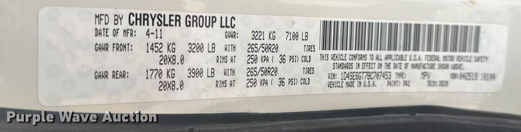 - VIN: 1D4SE6GT7BC707453