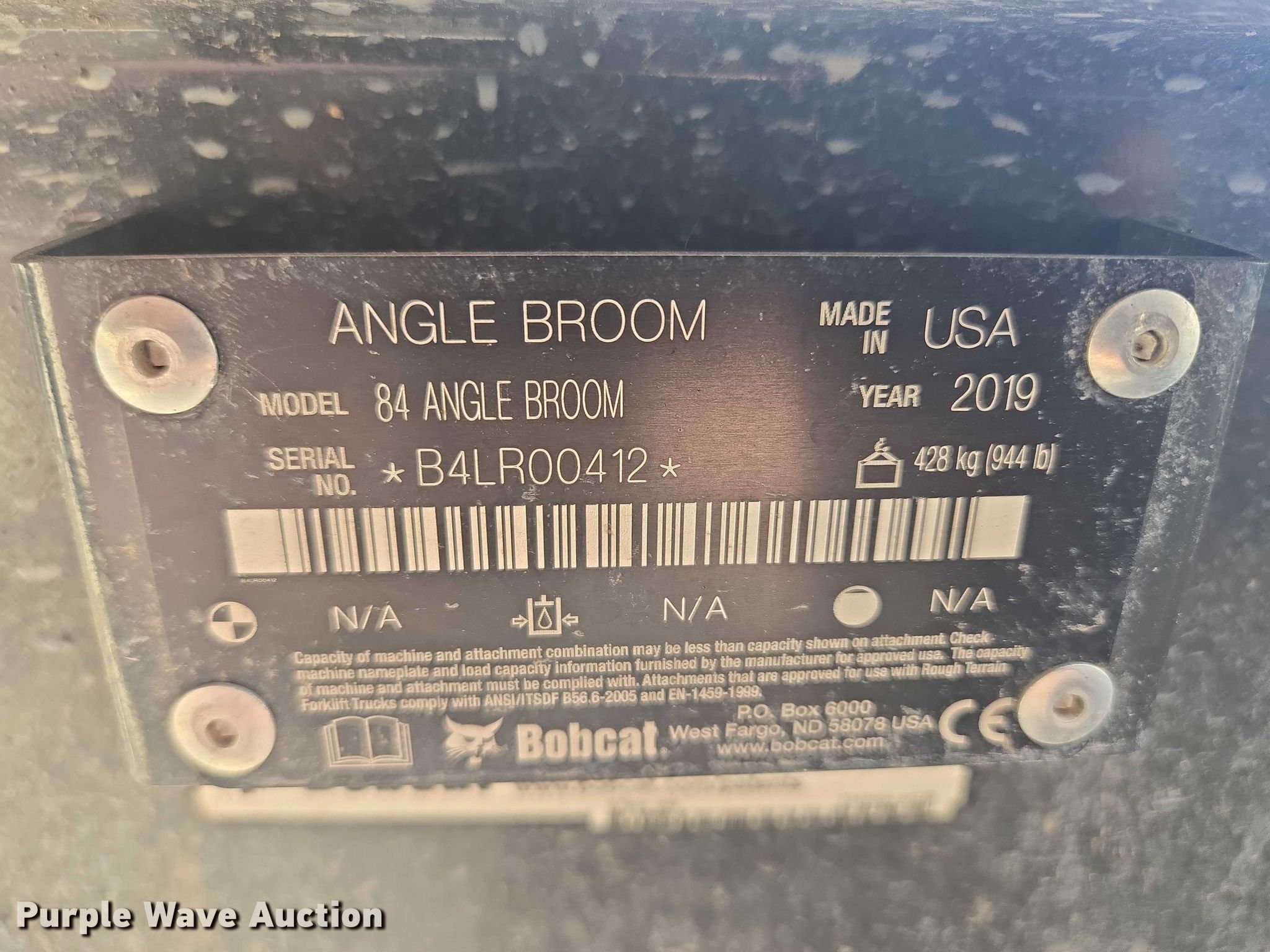Purple Wave is selling a used Skid Steer Attach. in Nebraska. This item is a 2019 Bobcat 84 Angle Broom skid steer broom with the following: Serial: B4LR00412, Width: 84"
