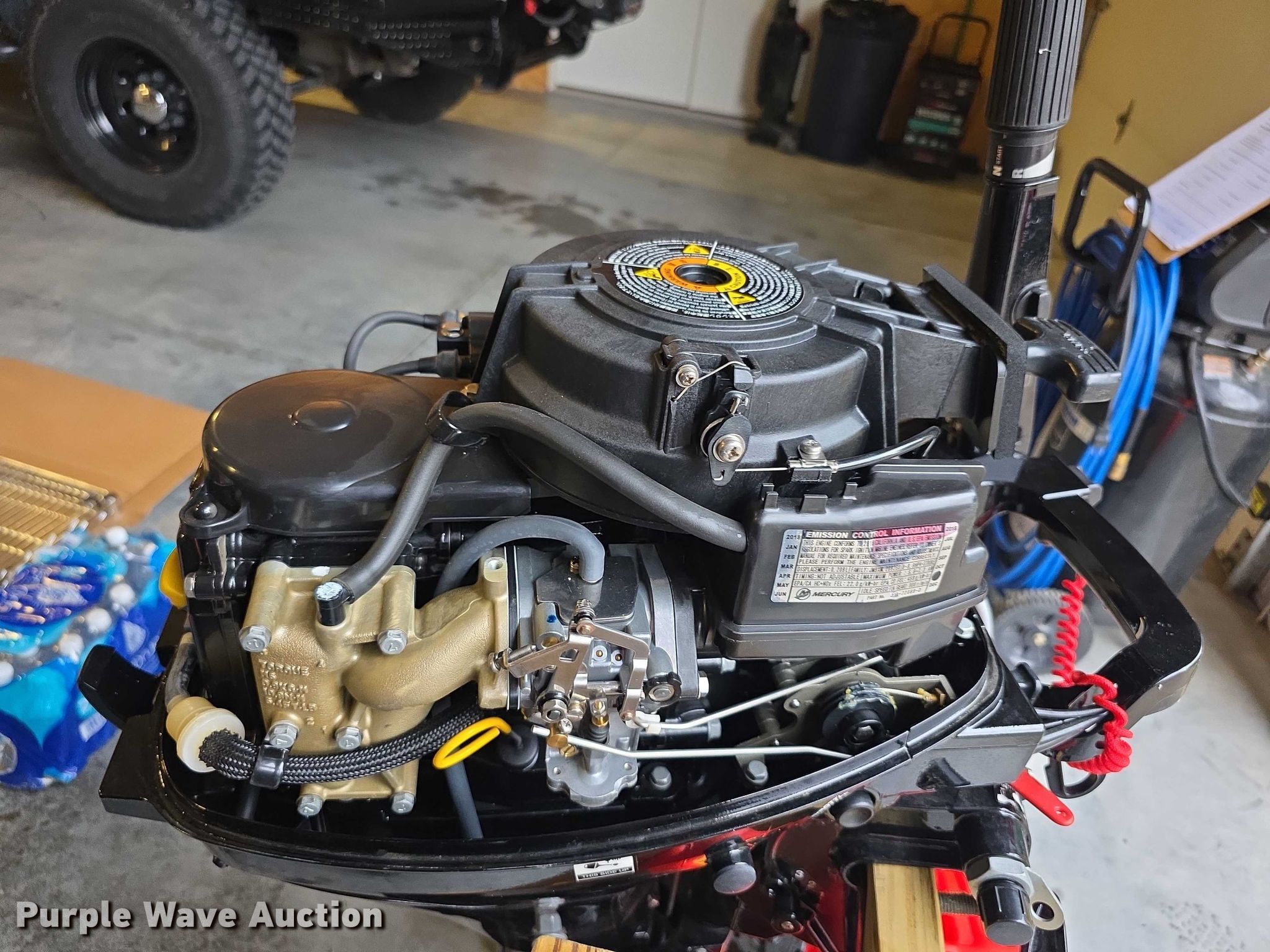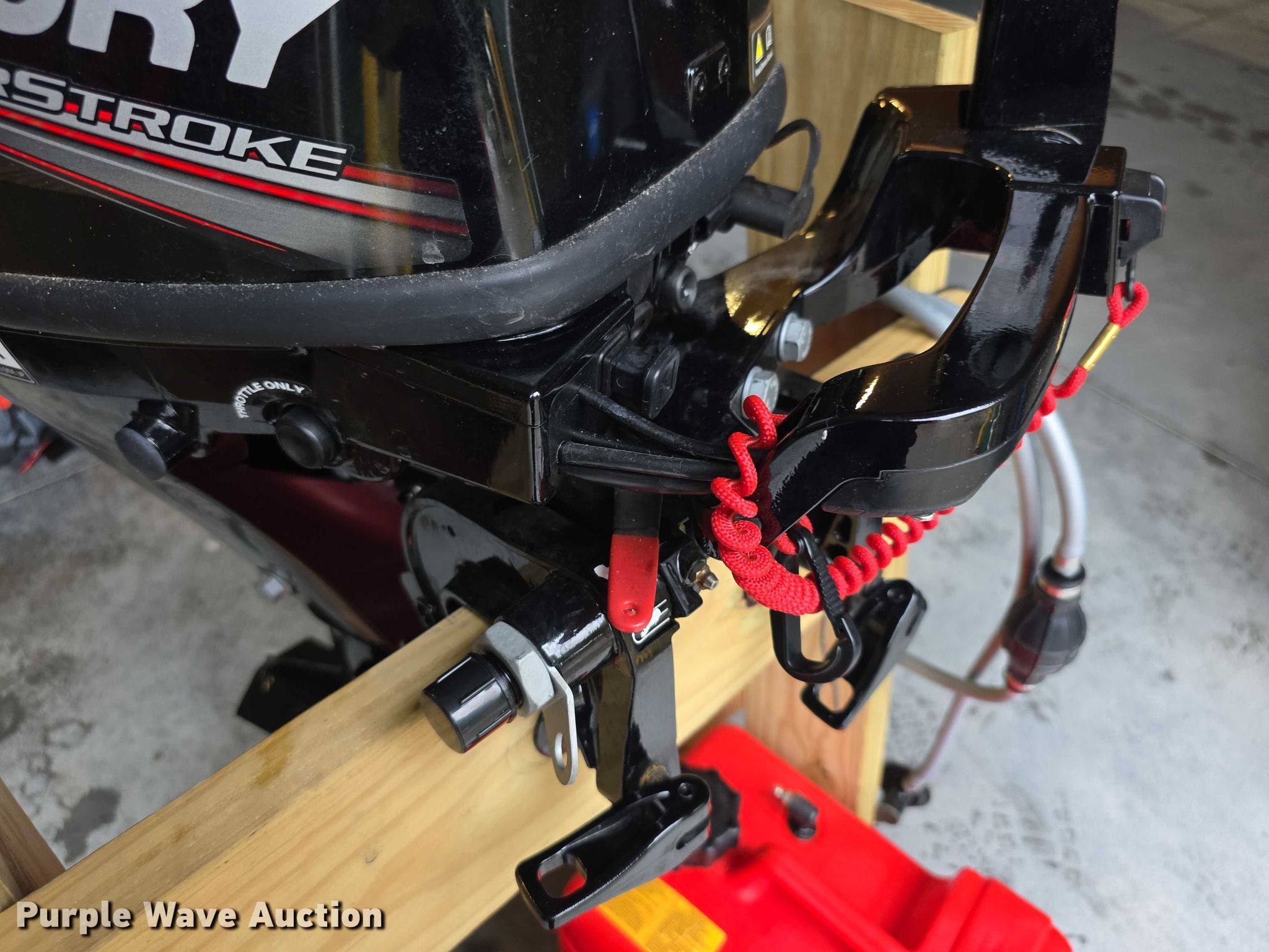Purple Wave is selling a used Boat in Kansas. This item is a 2018 Mercury Fourstroke boat engine with the following: Engine type: Outboard, Cylinders: 4, Displacement: 0.209L, Fuel type: Gas, HP: 9.9