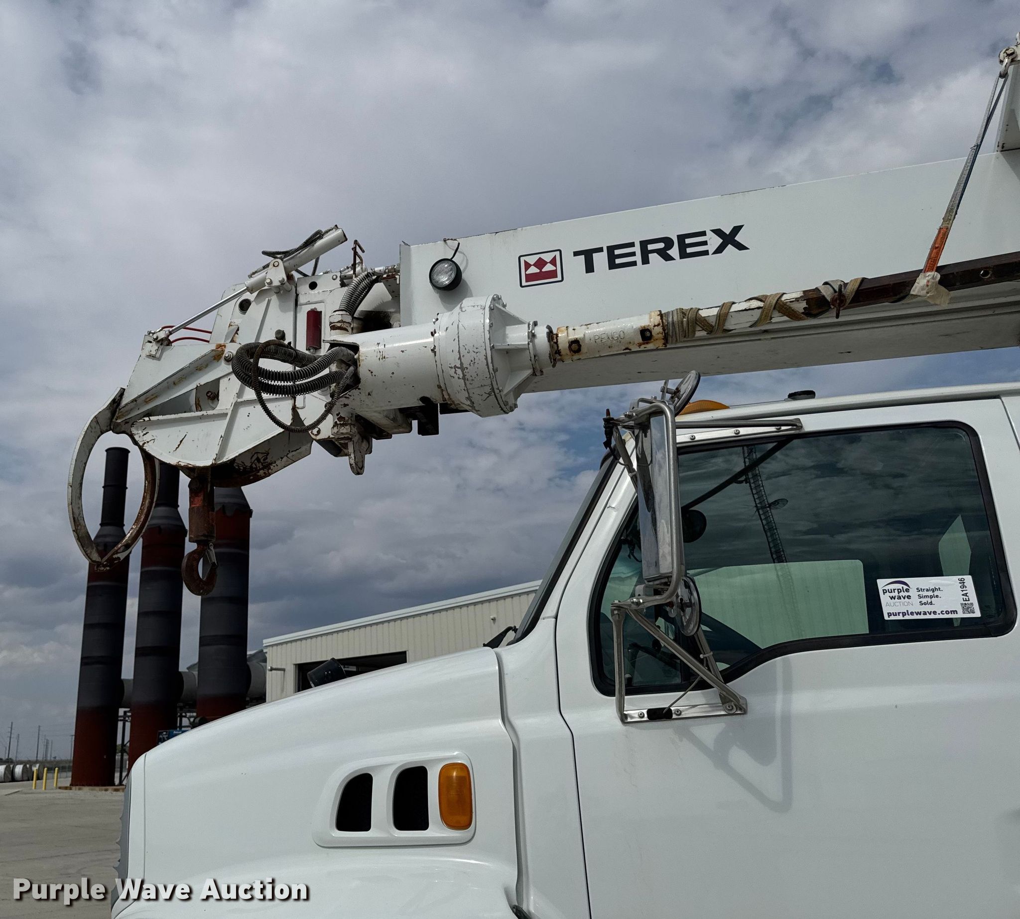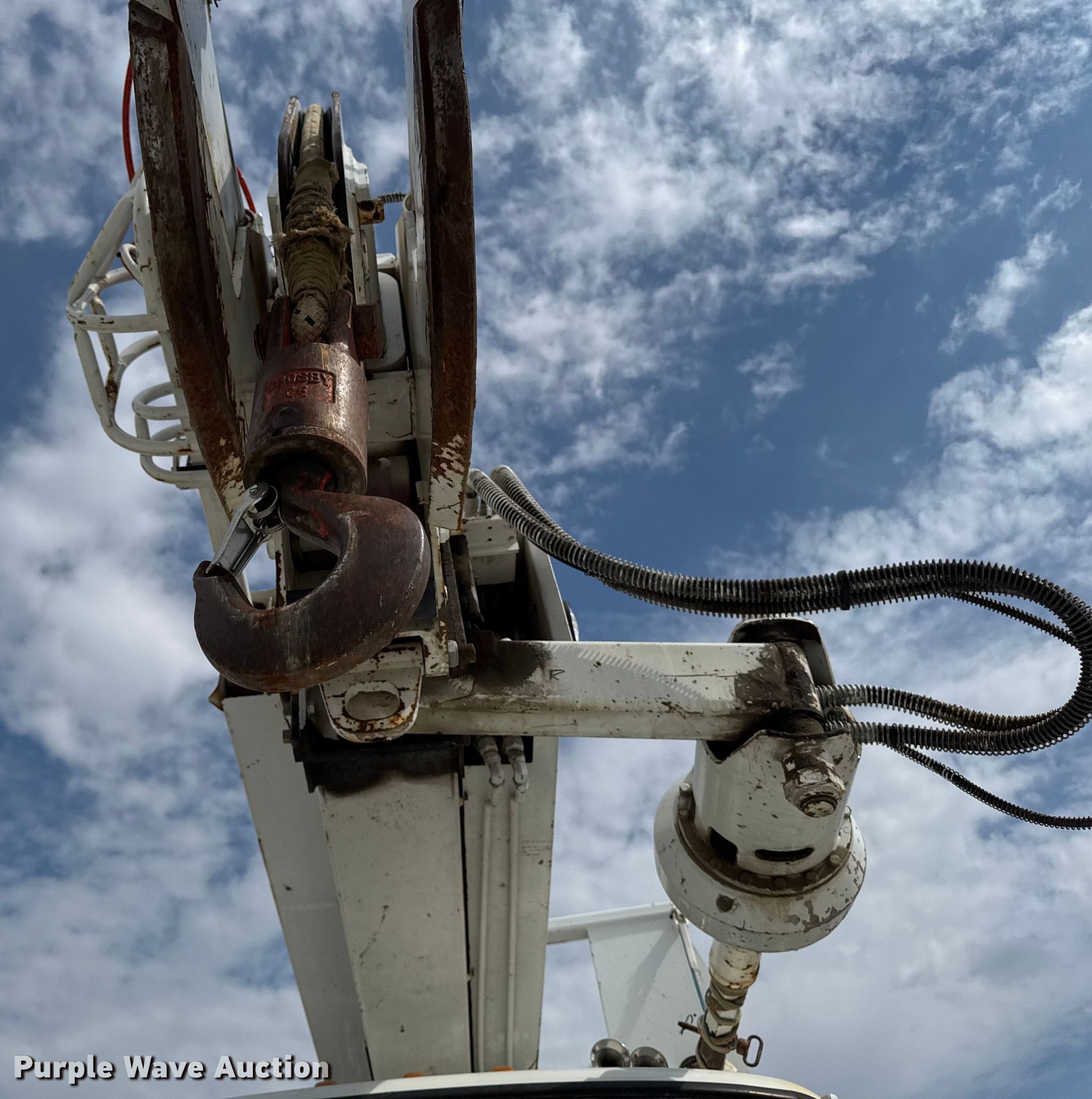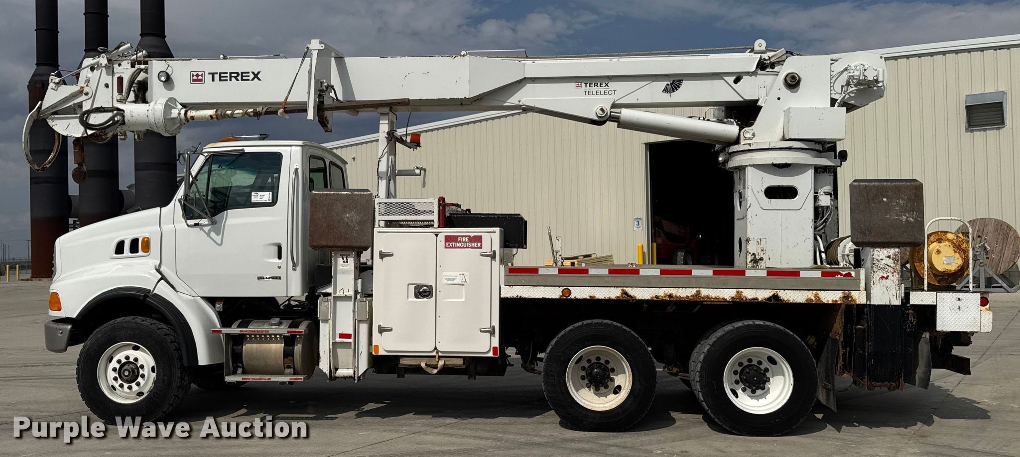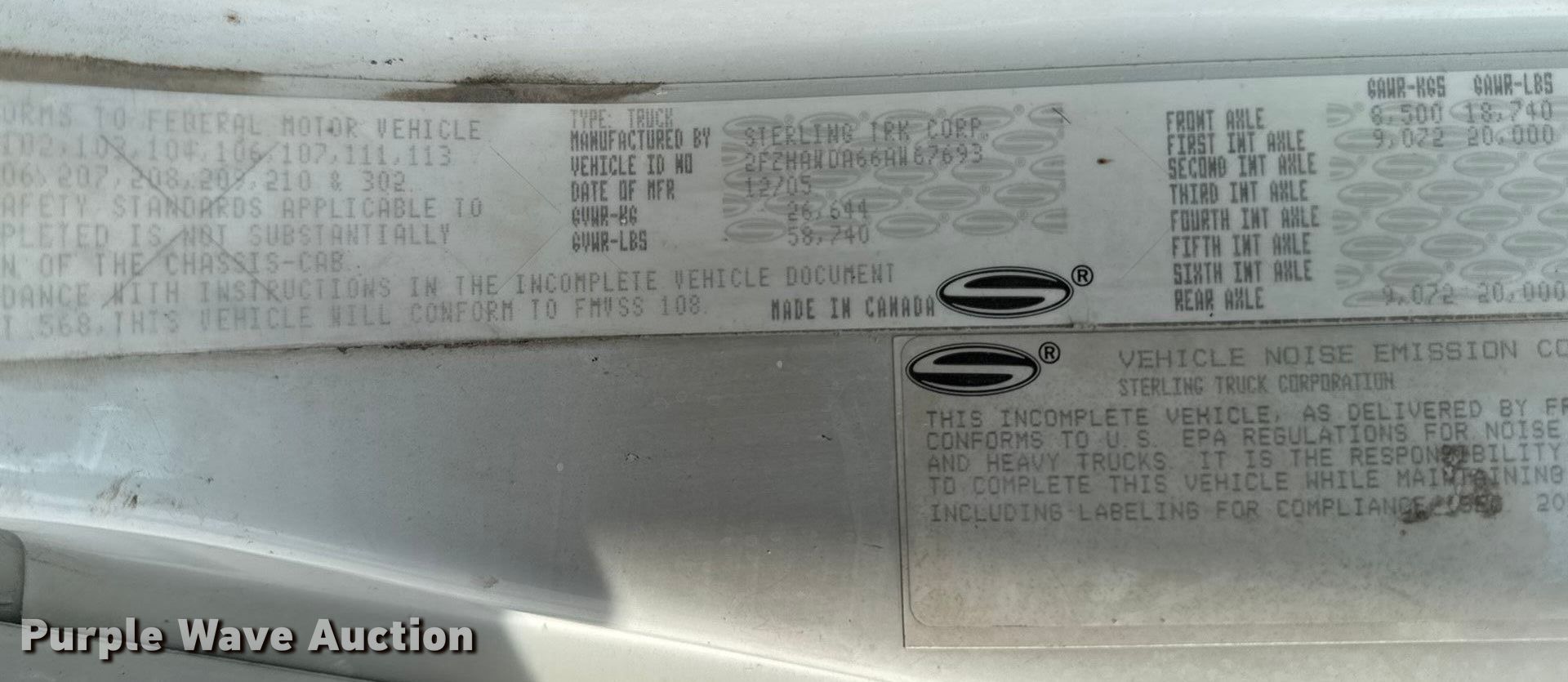 2006 Sterling L8500 digger derrick truck. Miles: 93,900 on odometer, Hours: 7,466 on meter, PTO hours: 3,329, VIN: 2FZHAWDA66AW67693. Engine Caterpillar C9, Serial: 9DG06474, Displacement: 8.8L, Cylinders: 6, Fuel type: Diesel, HP: 350. Transmission Allison, Automatic. Chassis Axles: Tandem, Differential lock: Full, Suspension: Air, Brakes: Air, PTO, GVWR: 58,740 lbs. Interior AC, Heat, Heated mirrors, Cruise control, Auxiliary controls, Brake controller. Features Bed Astoria, Length: 18', Width: 96", Boom 2005 Terex General, Serial: 2051228669, Boom length: 55', Maximum lift capacity: 40,000 lbs, Maximum lift height: 65', Boom type: Insulated, Telescopic, Boom controls Platform/ basket, Material handler, Pole guide, Auger. Tires Front: 385/65R22.5, Rear: 11R22.5. Iowa title. Title distribution may be delayed up to 14 days from verification of funds. Central Iowa Power Cooperative. Creston, IA 50801
