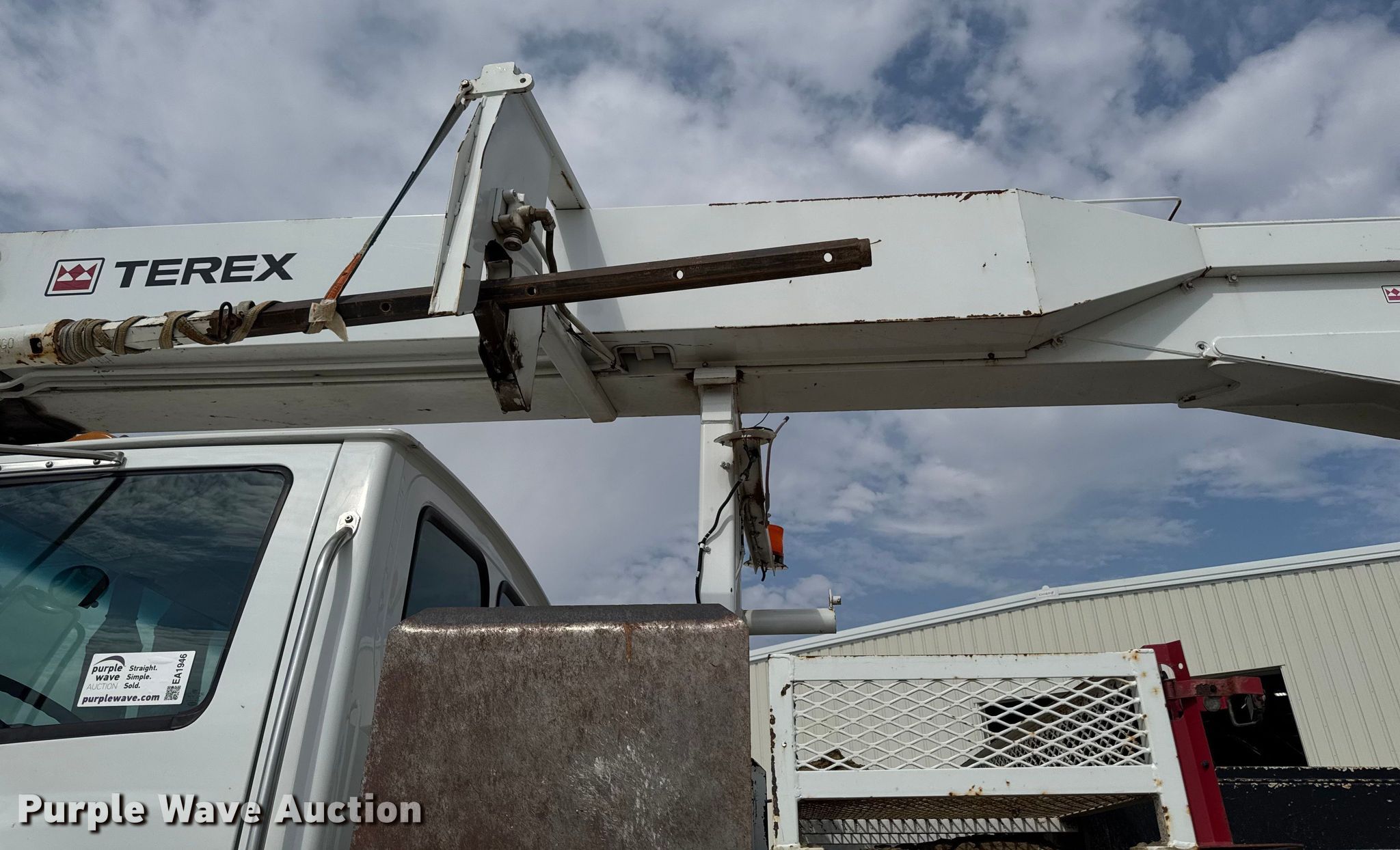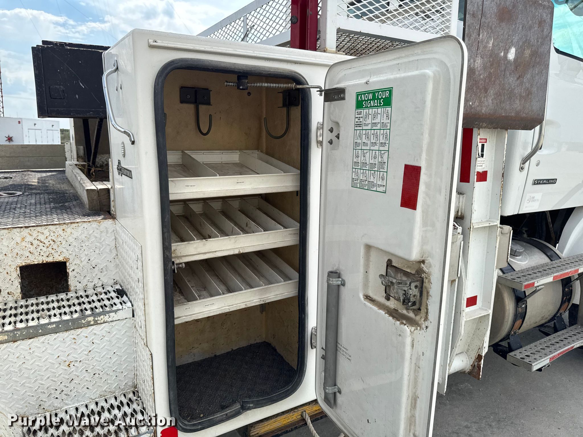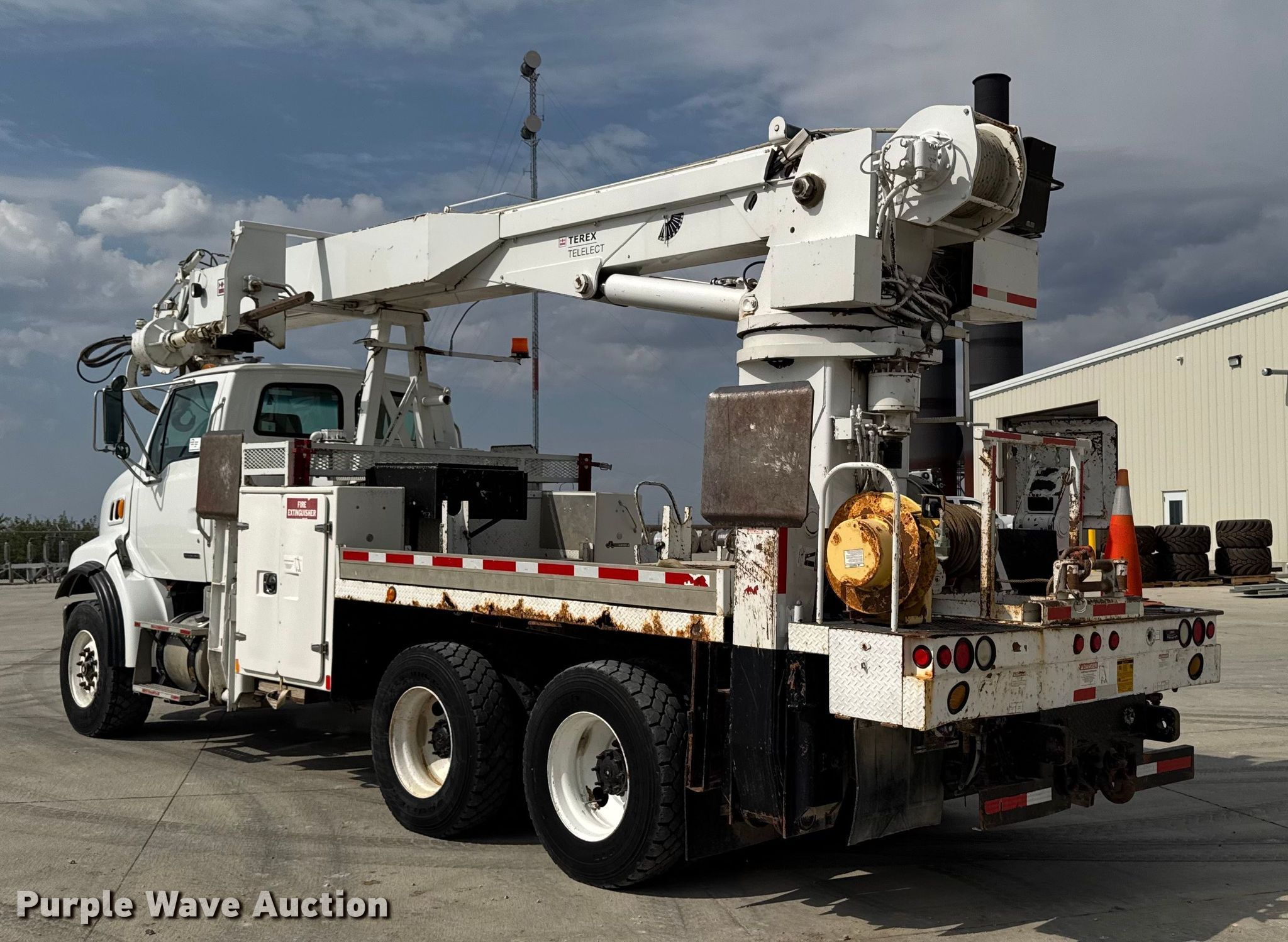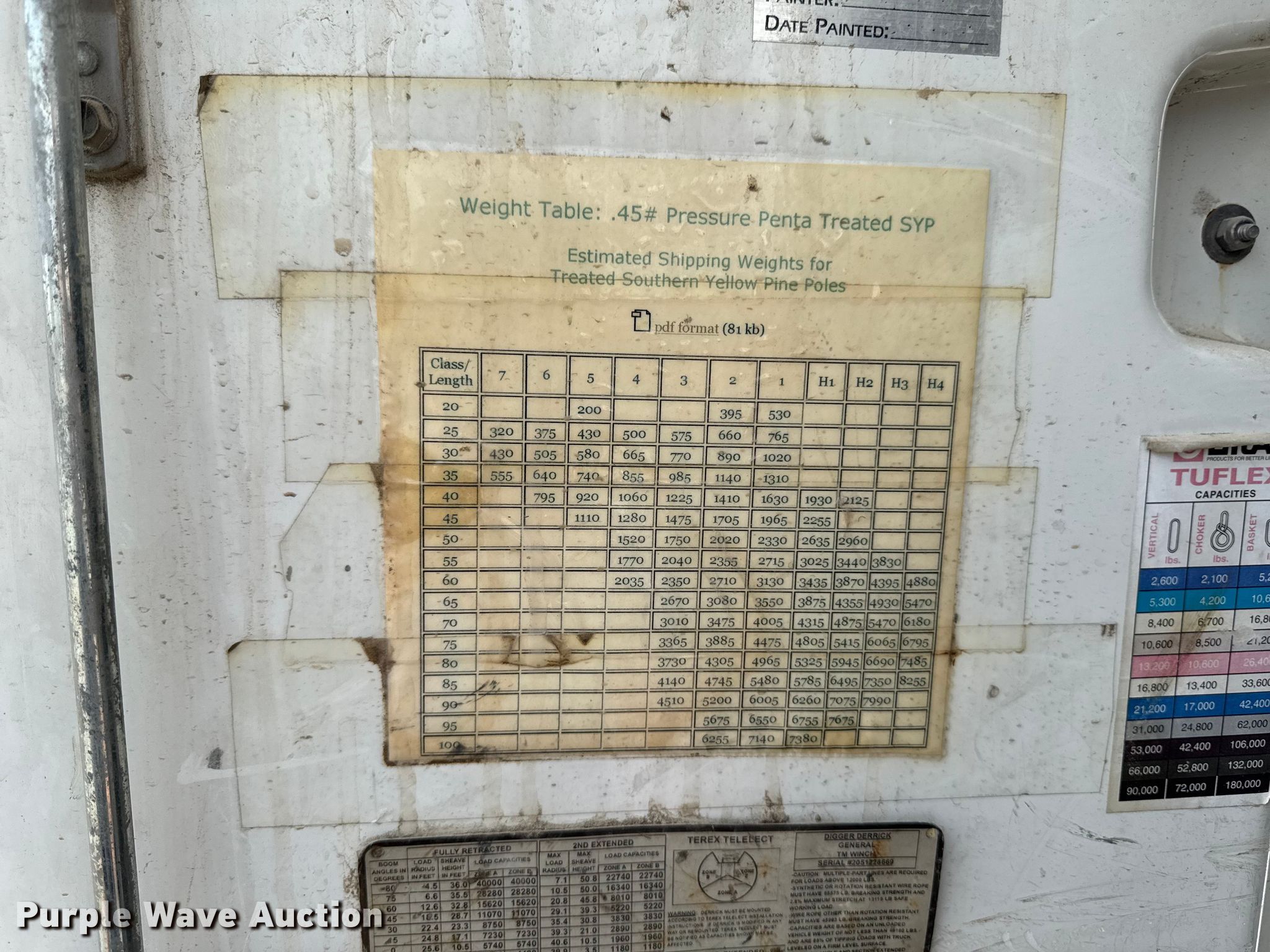 2006 Sterling L8500 digger derrick truck. Miles: 93,900 on odometer, Hours: 7,466 on meter, PTO hours: 3,329, VIN: 2FZHAWDA66AW67693. Engine Caterpillar C9, Serial: 9DG06474, Displacement: 8.8L, Cylinders: 6, Fuel type: Diesel, HP: 350. Transmission Allison, Automatic. Chassis Axles: Tandem, Differential lock: Full, Suspension: Air, Brakes: Air, PTO, GVWR: 58,740 lbs. Interior AC, Heat, Heated mirrors, Cruise control, Auxiliary controls, Brake controller. Features Bed Astoria, Length: 18', Width: 96", Boom 2005 Terex General, Serial: 2051228669, Boom length: 55', Maximum lift capacity: 40,000 lbs, Maximum lift height: 65', Boom type: Insulated, Telescopic, Boom controls Platform/ basket, Material handler, Pole guide, Auger. Tires Front: 385/65R22.5, Rear: 11R22.5. Iowa title. Title distribution may be delayed up to 14 days from verification of funds. Central Iowa Power Cooperative. Creston, IA 50801