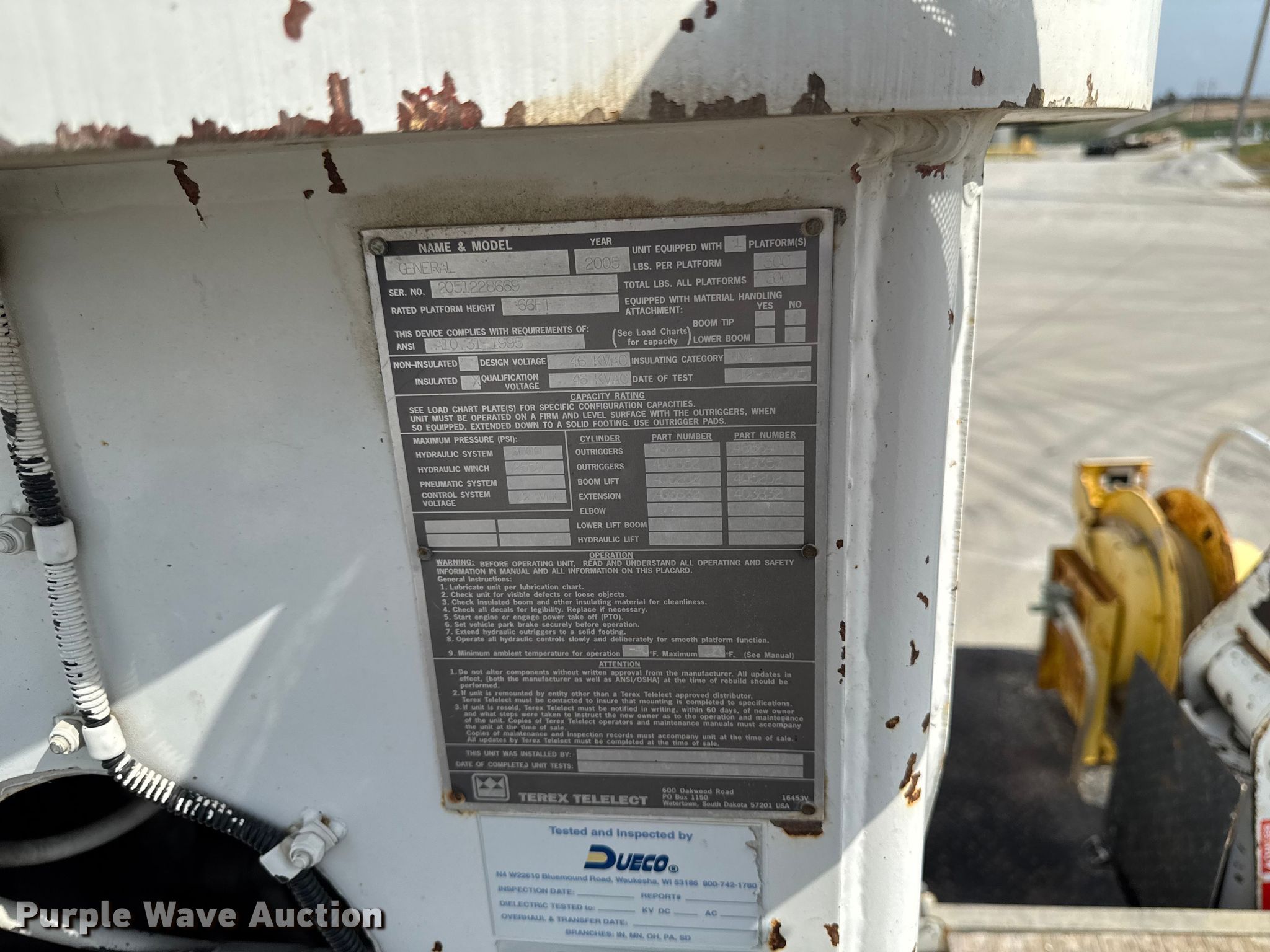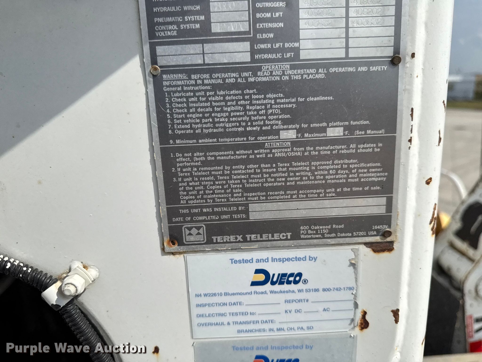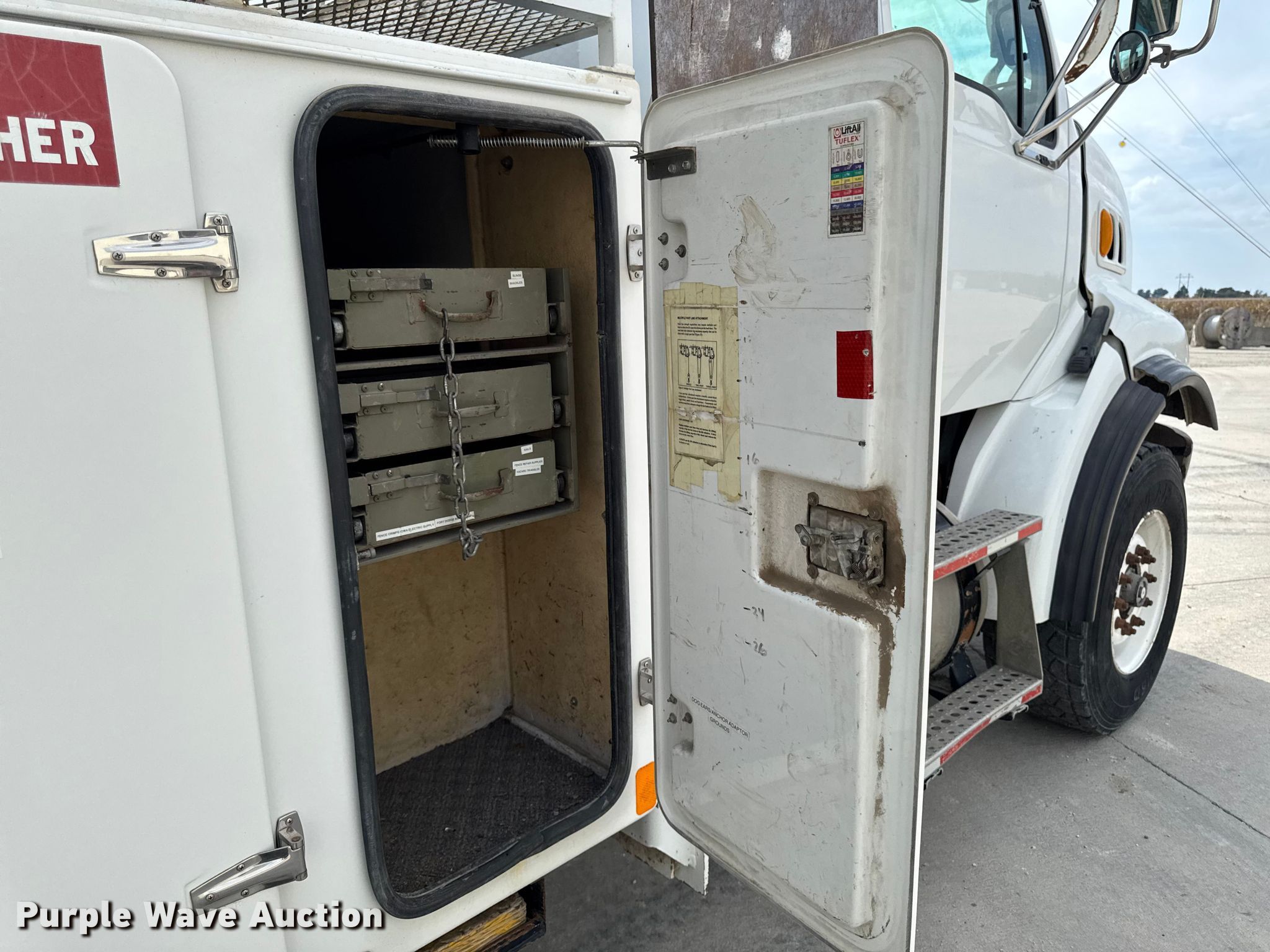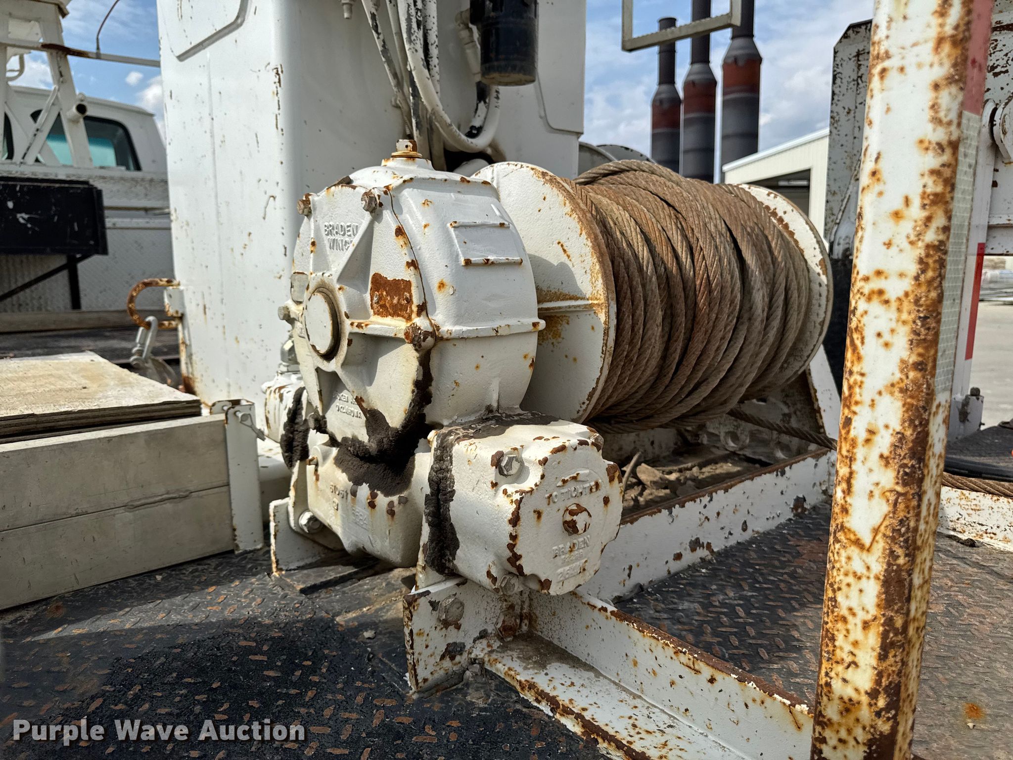 2006 Sterling L8500 digger derrick truck. Miles: 93,900 on odometer, Hours: 7,466 on meter, PTO hours: 3,329, VIN: 2FZHAWDA66AW67693. Engine Caterpillar C9, Serial: 9DG06474, Displacement: 8.8L, Cylinders: 6, Fuel type: Diesel, HP: 350. Transmission Allison, Automatic. Chassis Axles: Tandem, Differential lock: Full, Suspension: Air, Brakes: Air, PTO, GVWR: 58,740 lbs. Interior AC, Heat, Heated mirrors, Cruise control, Auxiliary controls, Brake controller. Features Bed Astoria, Length: 18', Width: 96", Boom 2005 Terex General, Serial: 2051228669, Boom length: 55', Maximum lift capacity: 40,000 lbs, Maximum lift height: 65', Boom type: Insulated, Telescopic, Boom controls Platform/ basket, Material handler, Pole guide, Auger. Tires Front: 385/65R22.5, Rear: 11R22.5. Iowa title. Title distribution may be delayed up to 14 days from verification of funds. Central Iowa Power Cooperative. Creston, IA 50801