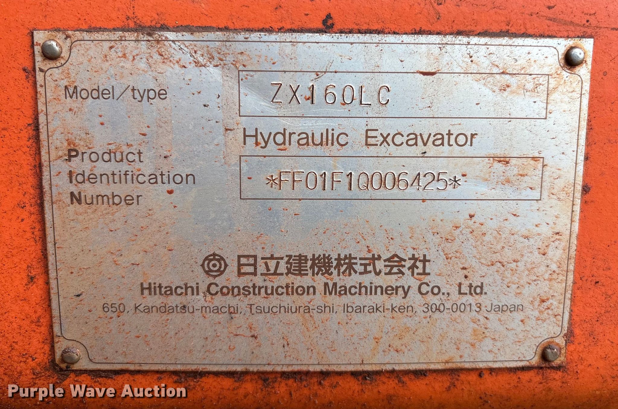Purple Wave is selling a used Hydraulic Excavator in Oklahoma. This item is a 2006 Hitachi Zaxis 160LC excavator with the following: Hours: 4,227 on meter, Serial: FF01F10006425