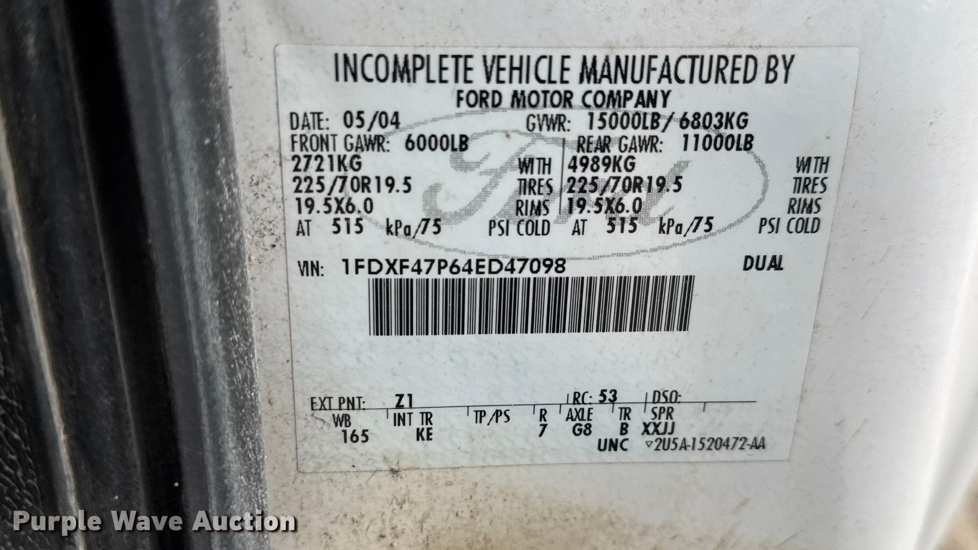 Purple Wave is selling a used Construction Dump Truck in Kansas. This item is a 2004 Ford F450 Super Duty dump truck with the following: Miles: 51,241 on odometer, VIN: 1FDXF47P64ED47098