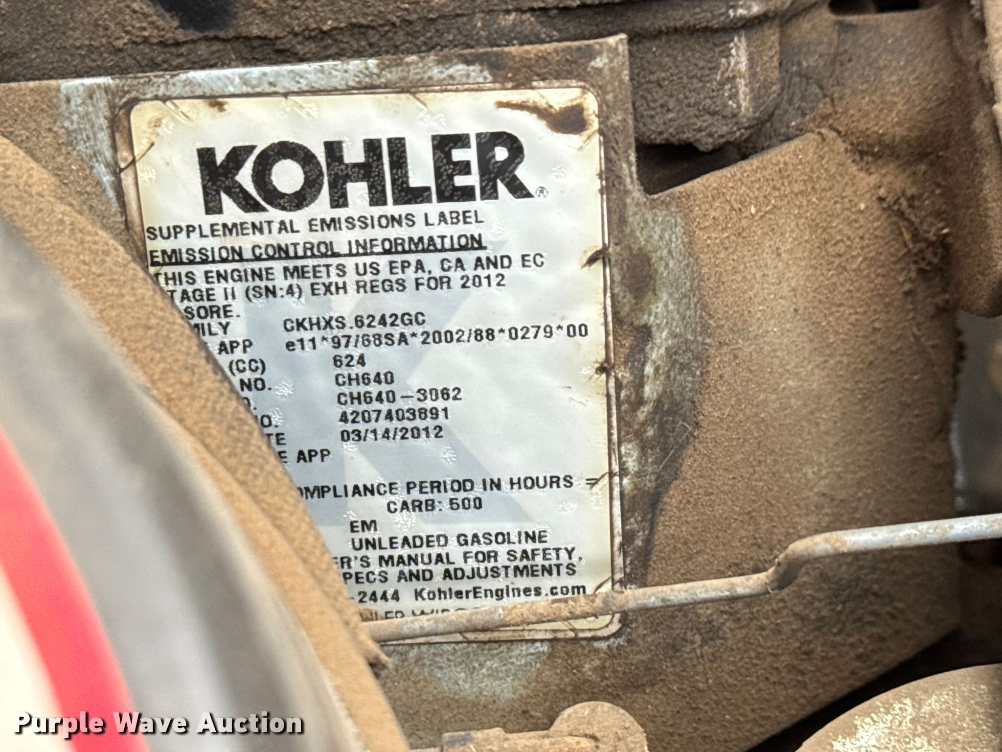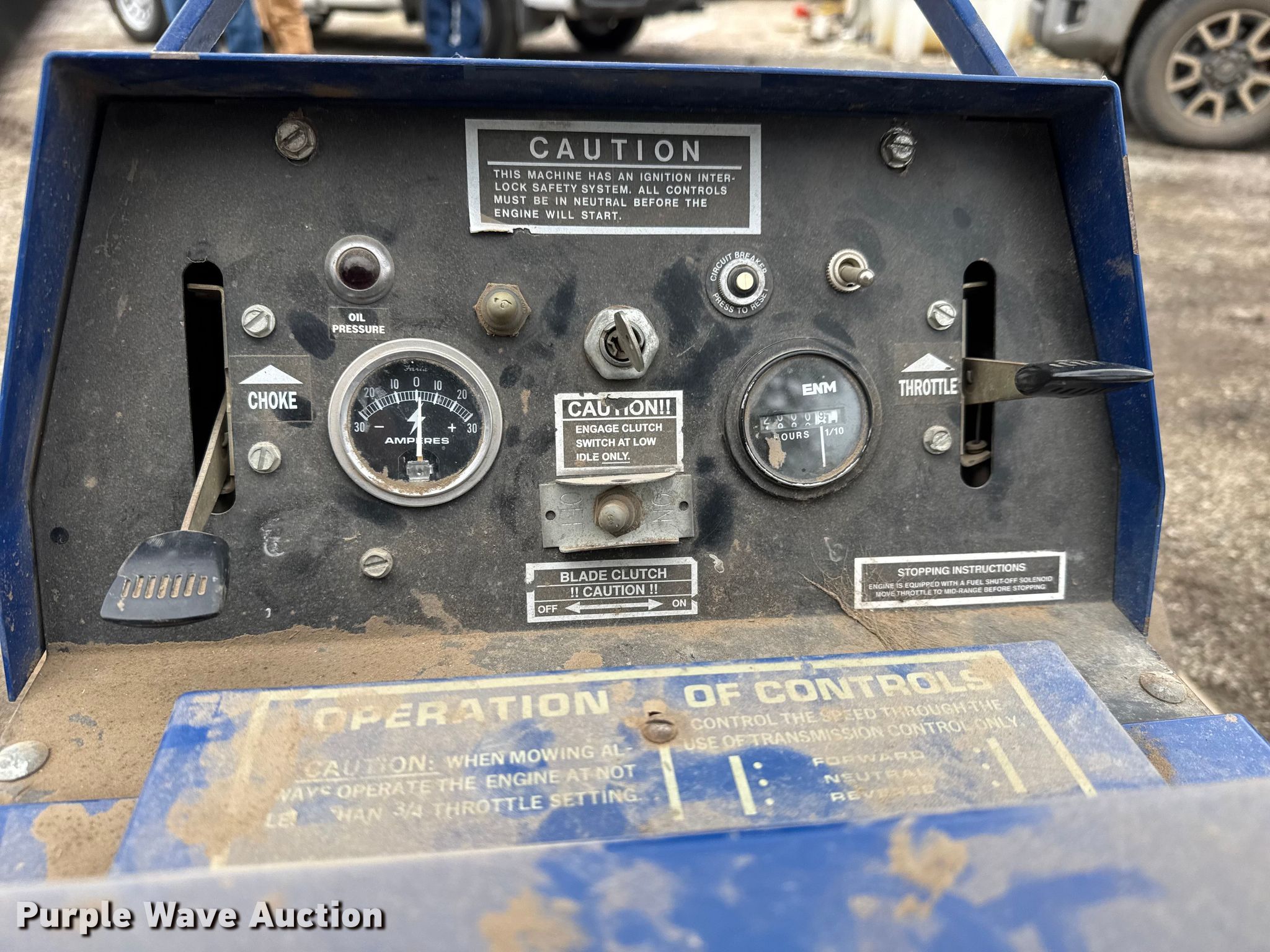 2014 Deines DD 20HT EP lawn mower. Hours: 2,001 on meter, Cutting width: 60", Serial: AM1511. Engine Kohler CH640, Displacement: 624 cc, Cylinders: 2, Fuel type: Gas. Transmission Hydrostatic. Features Counter weights, Rear drawbar, Hydraulic front deck lift. Tires Front: 20x10.00-10, Rear: 15x6.00-6. Notes Jump start required during on-site data collection, Unknown operating condition of hour meter. Lyons, KS 67554